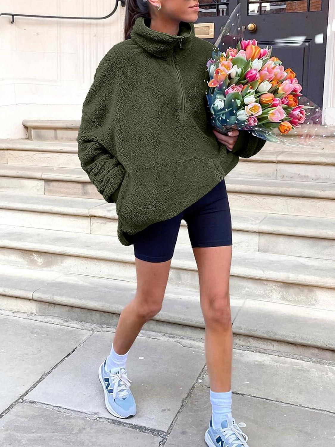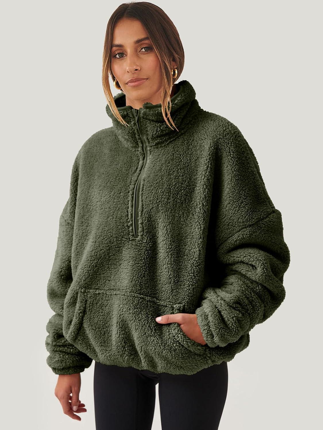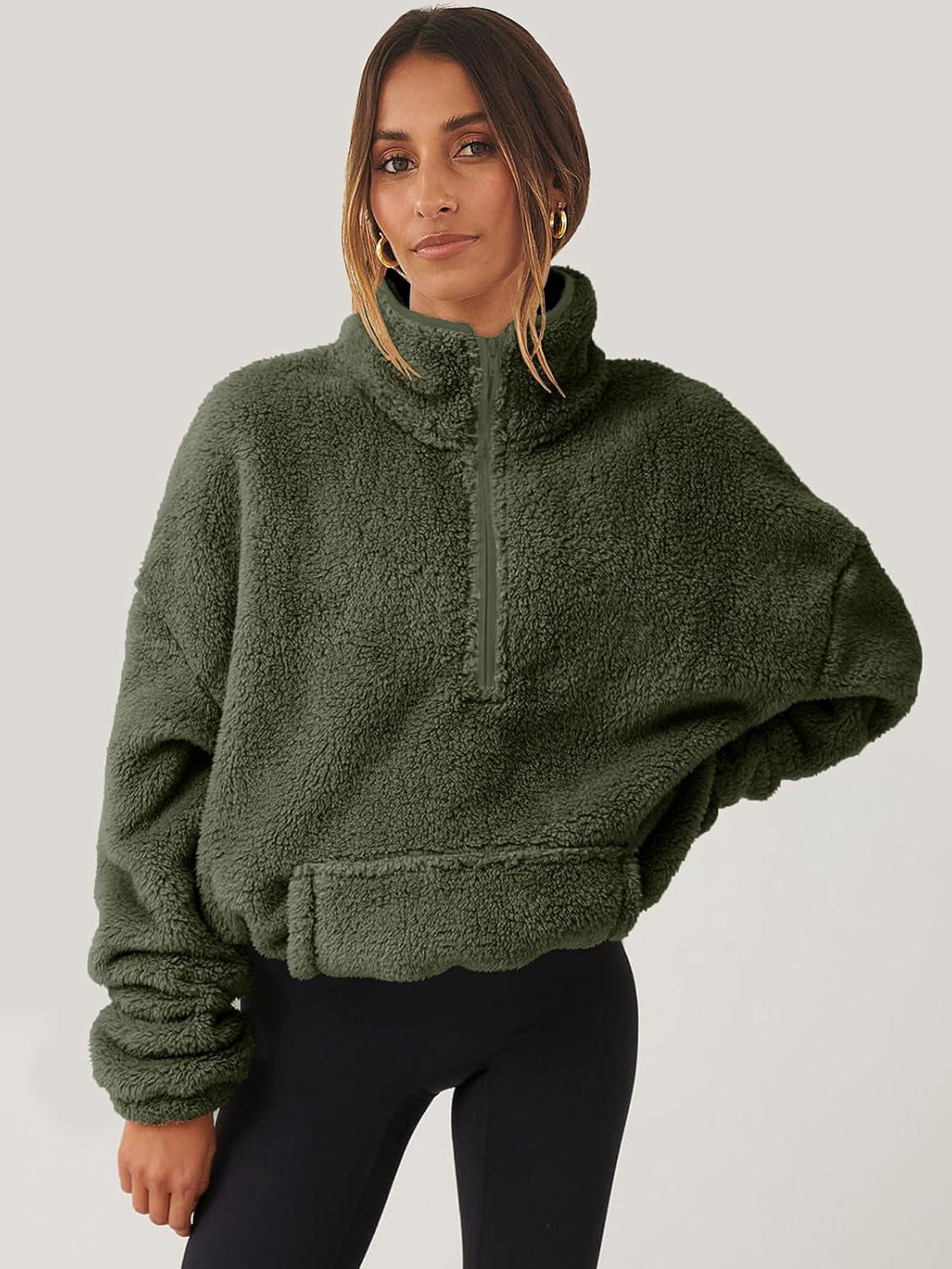 ANRABESS Sweatshirt for Women Zip Up Hoodies Cropped Pullover Fleece Hooded Sherpa Sweaters Tops 2025 Fall Winter Clothes(Army Green)
