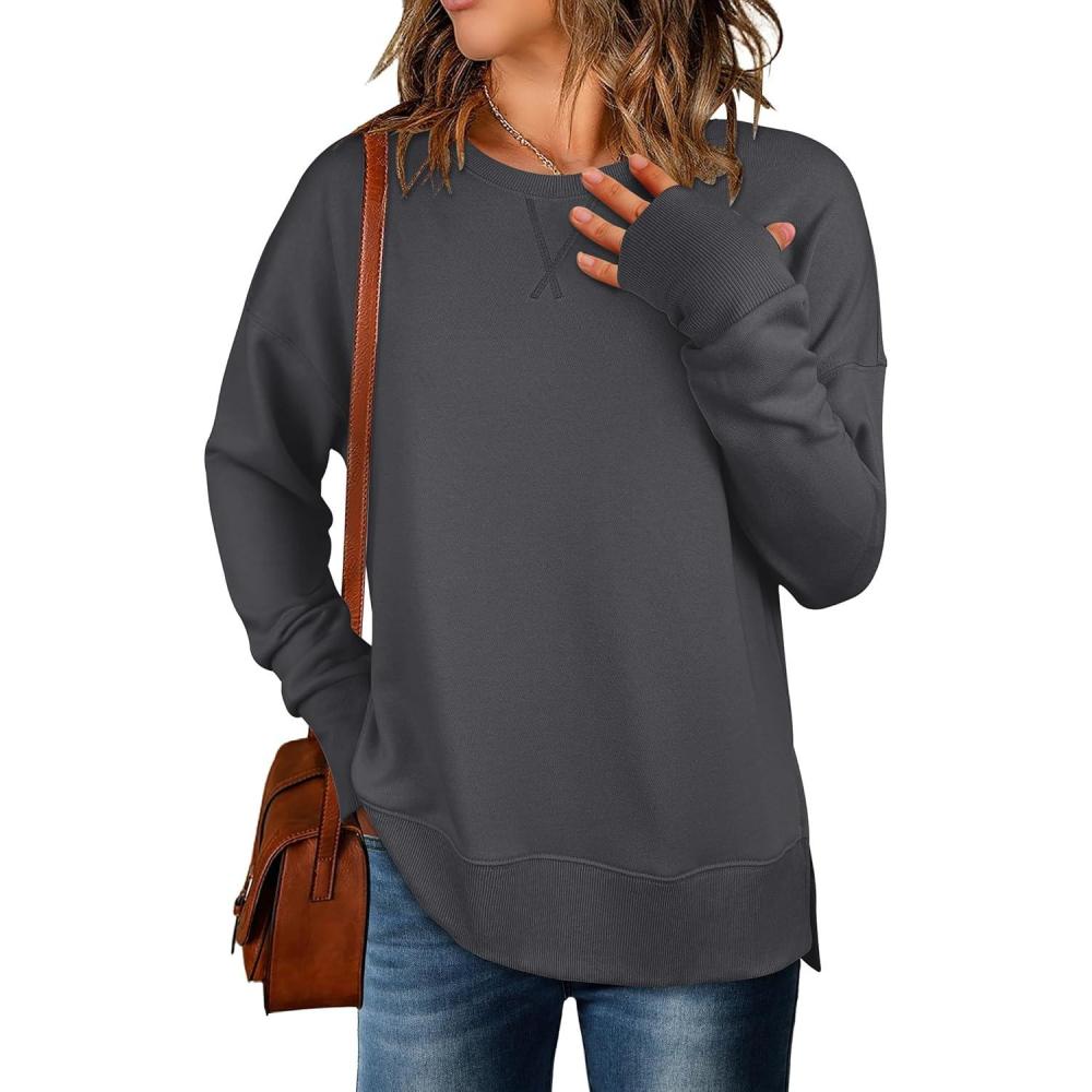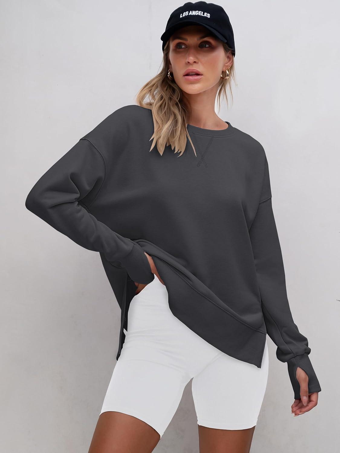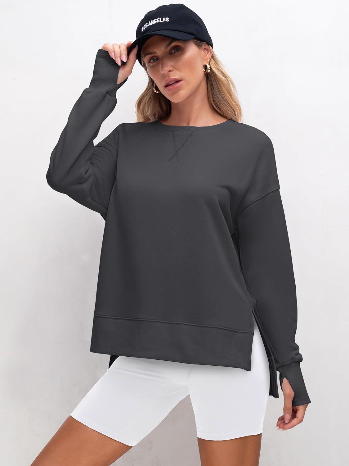 ANRABESS Sweatshirts for Women 2025 Fall Long Sleeve Shirts Oversized Crewneck Lightweight Side Split Casual Pullover Tops(Deep Gray)