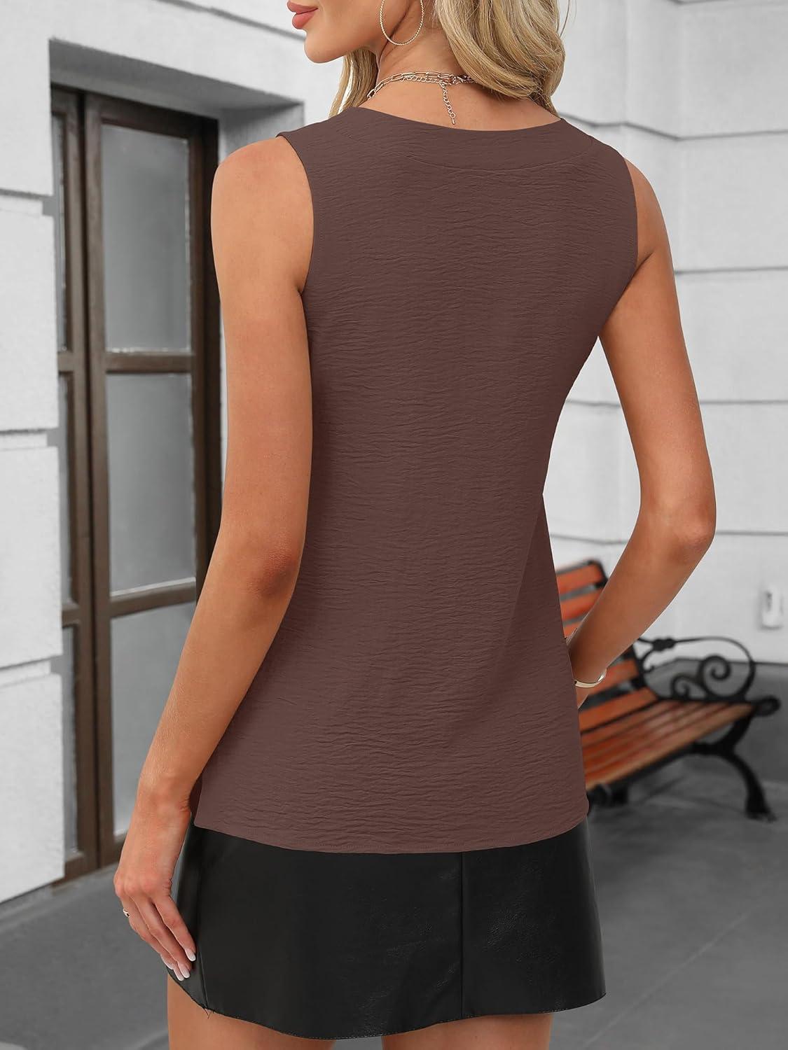 ANRABESS Tank Top for Women Dressy Casual Business Work Blouses Sleeveless V Neck Textured Tops 2025 Spring Summer Outfits(Brown)