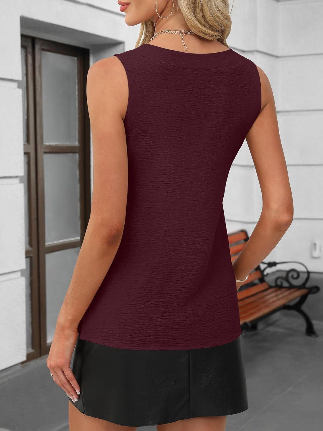 ANRABESS Tank Top for Women Dressy Casual Business Work Blouses Sleeveless V Neck Textured Tops 2025 Spring Summer Outfits(Burgundy)