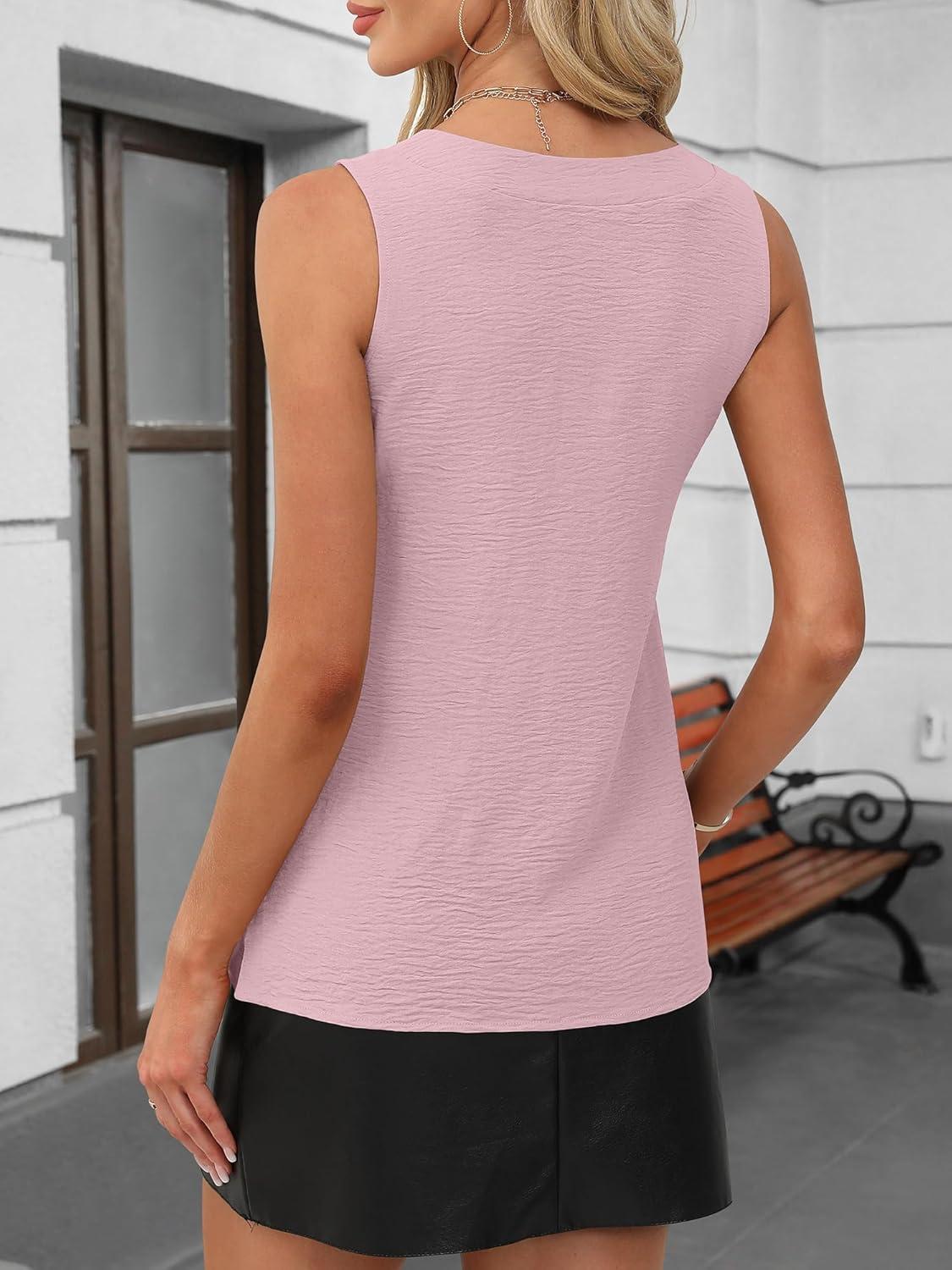 ANRABESS Tank Top for Women Dressy Casual Business Work Blouses Sleeveless V Neck Textured Tops 2025 Spring Summer Outfits(Light Pink)