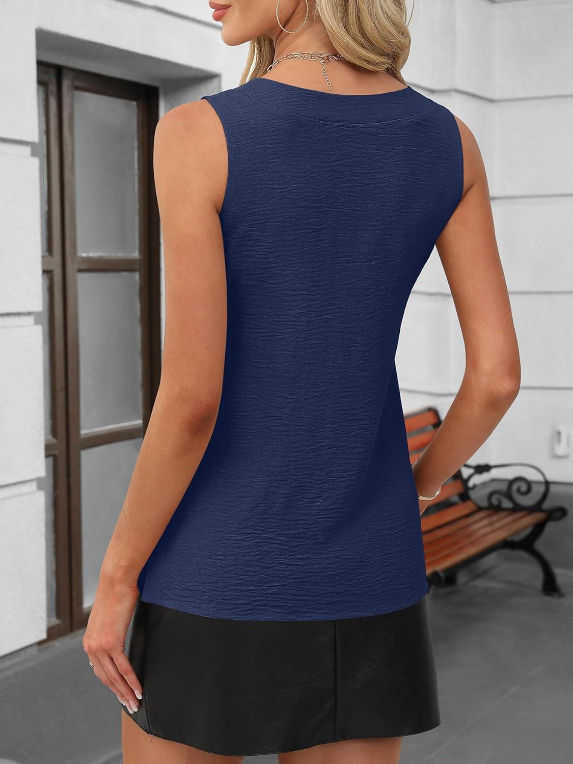 ANRABESS Tank Top for Women Dressy Casual Business Work Blouses Sleeveless V Neck Textured Tops 2025 Spring Summer Outfits(Navy Blue)