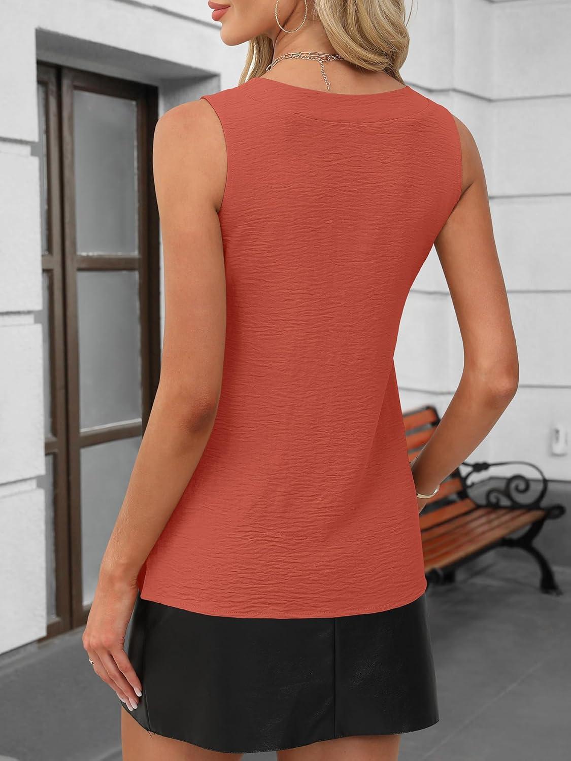 ANRABESS Tank Top for Women Dressy Casual Business Work Blouses Sleeveless V Neck Textured Tops 2025 Spring Summer Outfits(Orange)