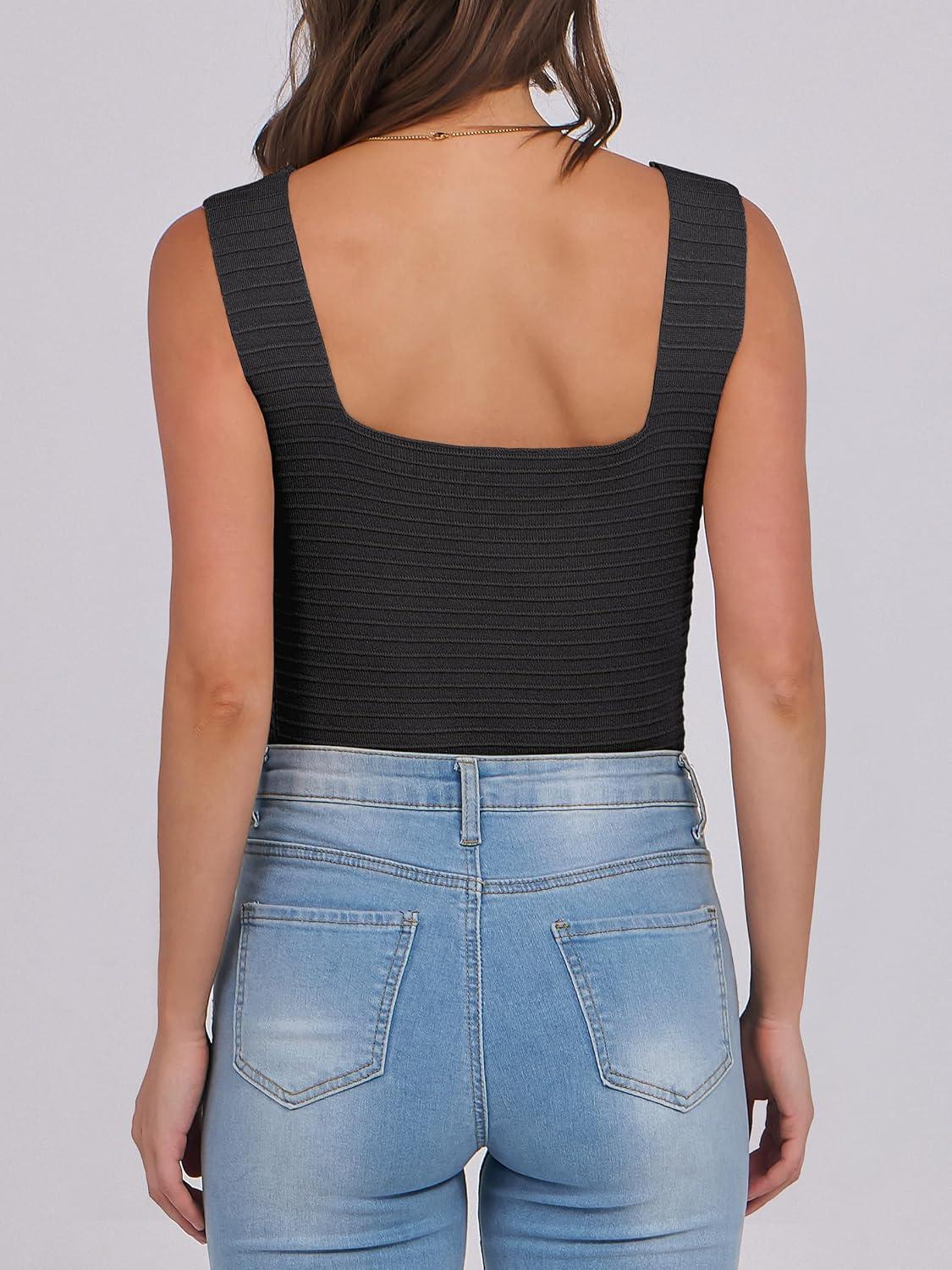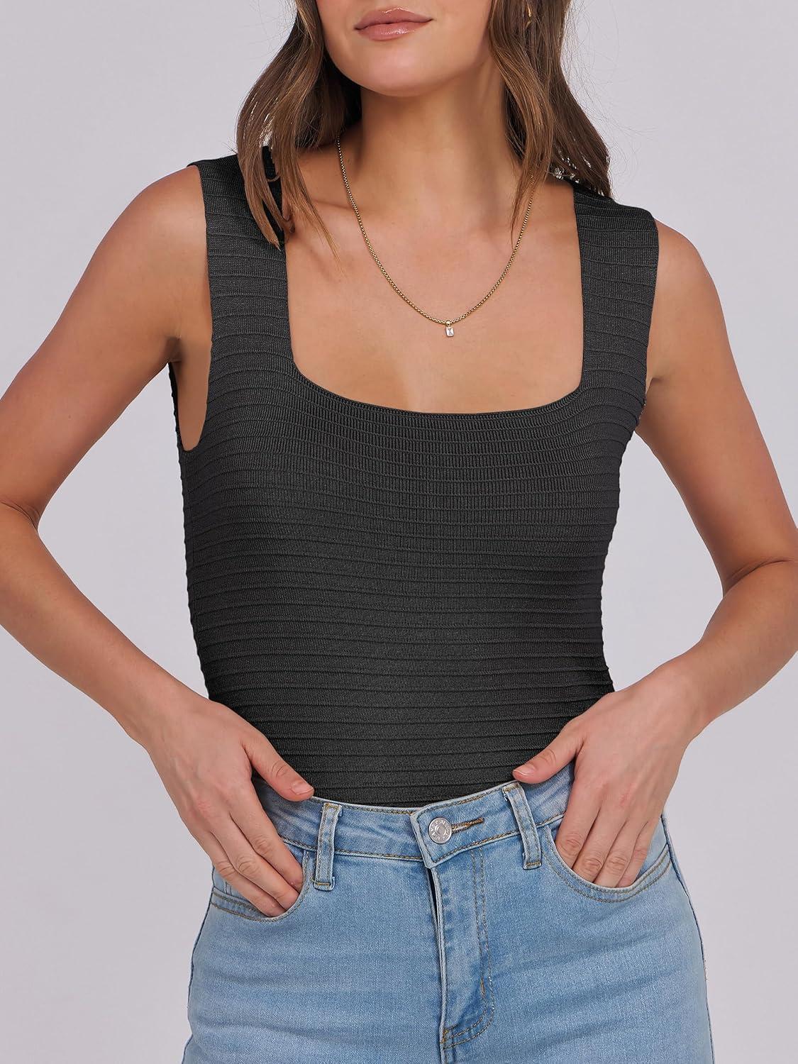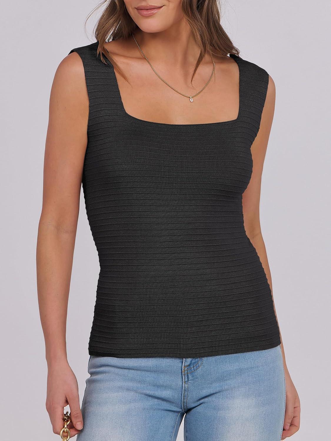 ANRABESS Tank Tops for Women 2025 Summer Square Neck Rib Knit Sleeveless Basic Slim Fit Shirts Casual Top Trendy Outfits(Black)