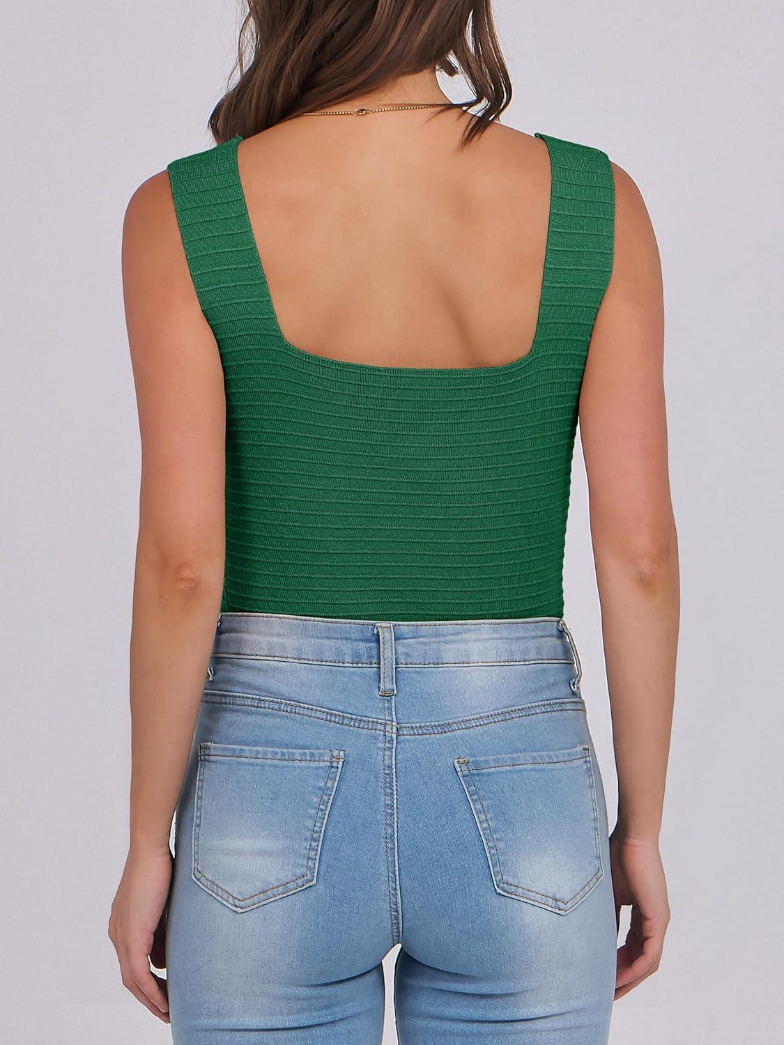 ANRABESS Tank Tops for Women 2025 Summer Square Neck Rib Knit Sleeveless Basic Slim Fit Shirts Casual Top Trendy Outfits(Green)