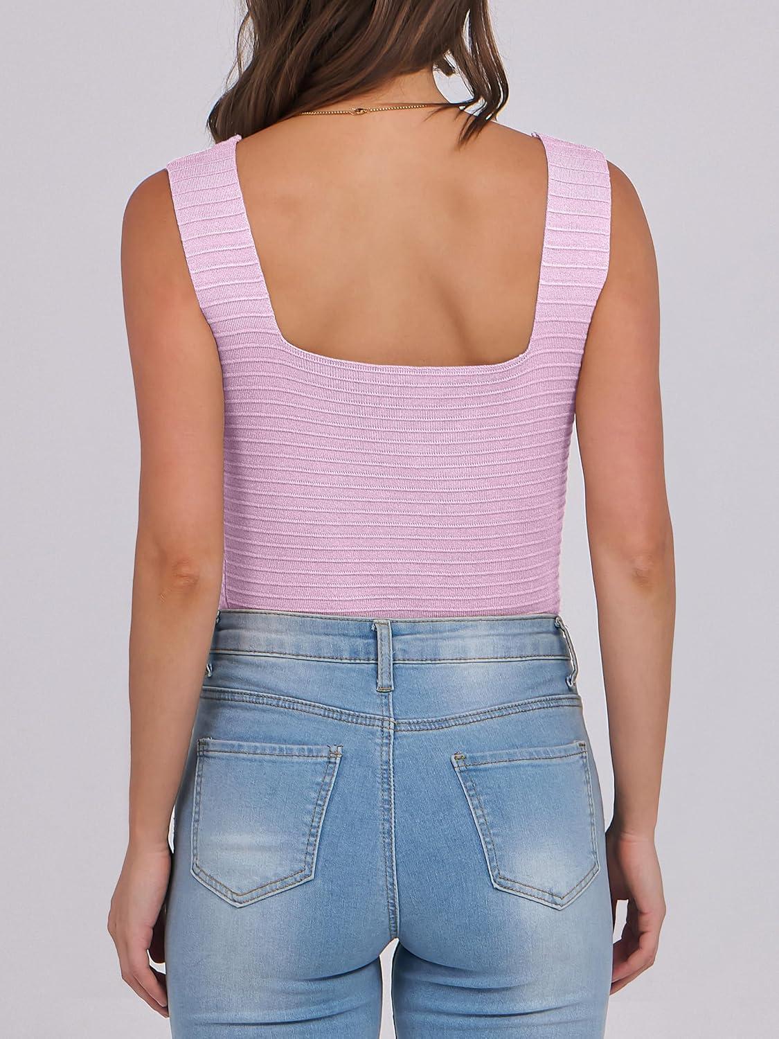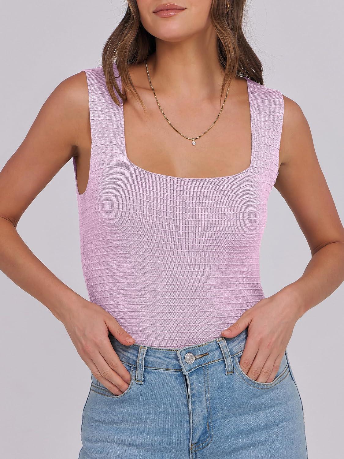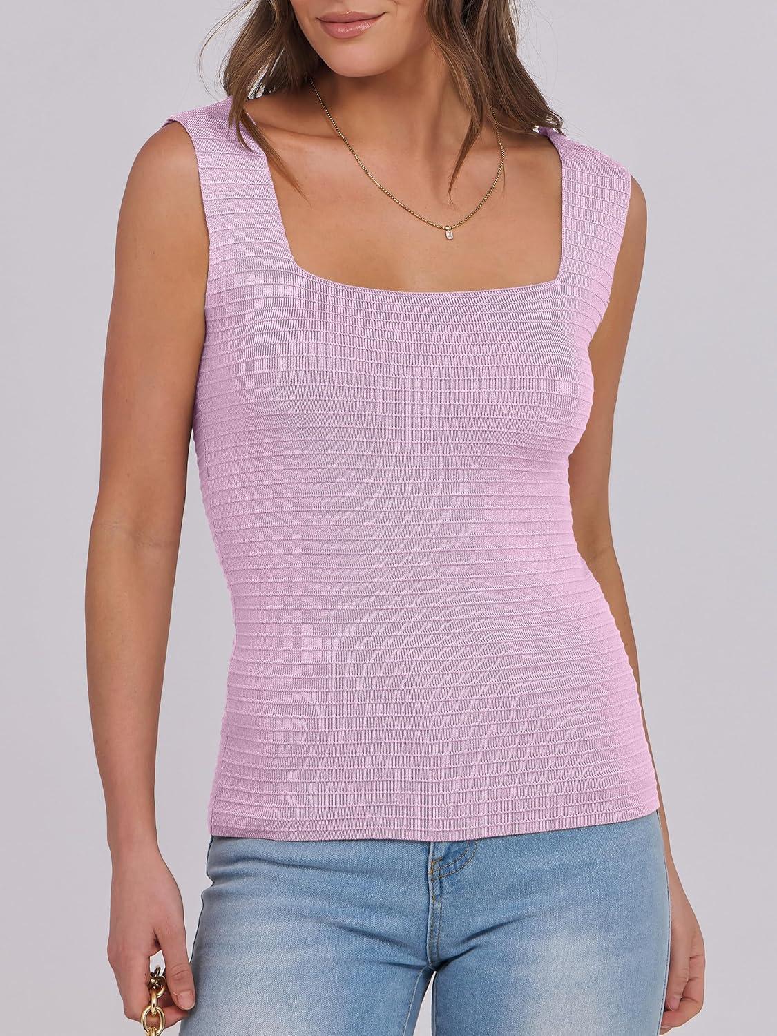 ANRABESS Tank Tops for Women 2025 Summer Square Neck Rib Knit Sleeveless Basic Slim Fit Shirts Casual Top Trendy Outfits(Light Pink)