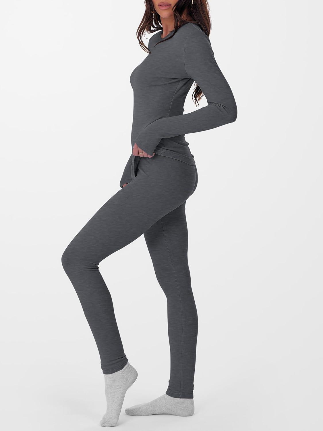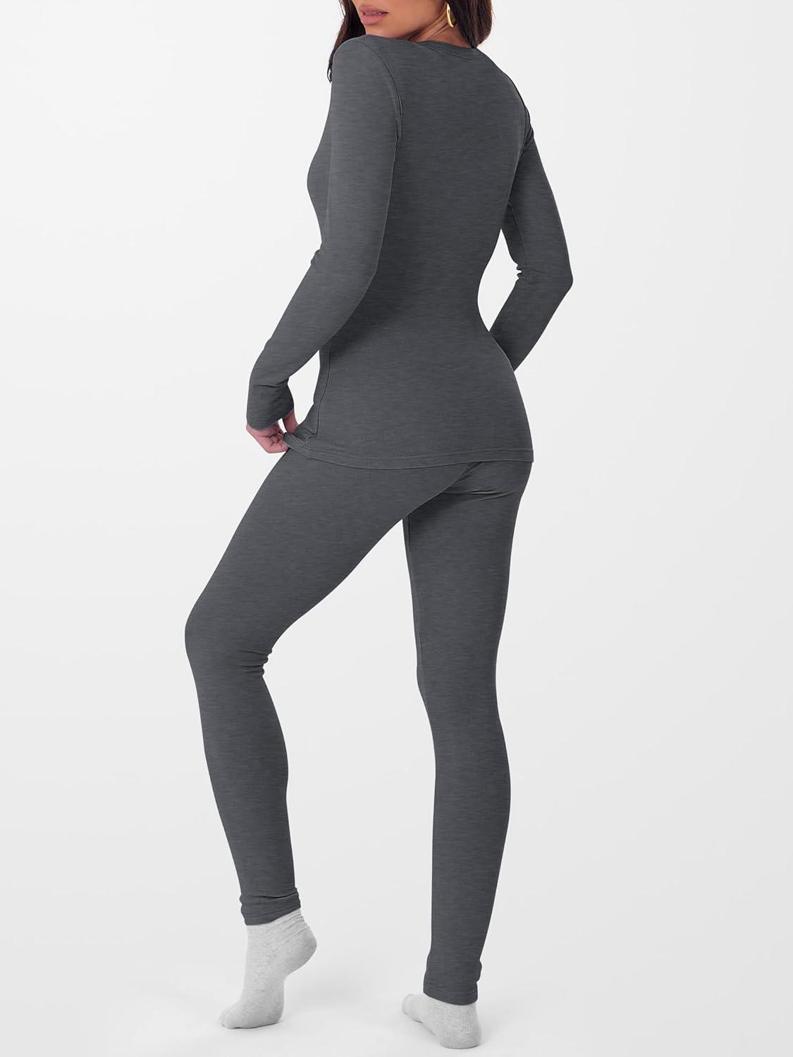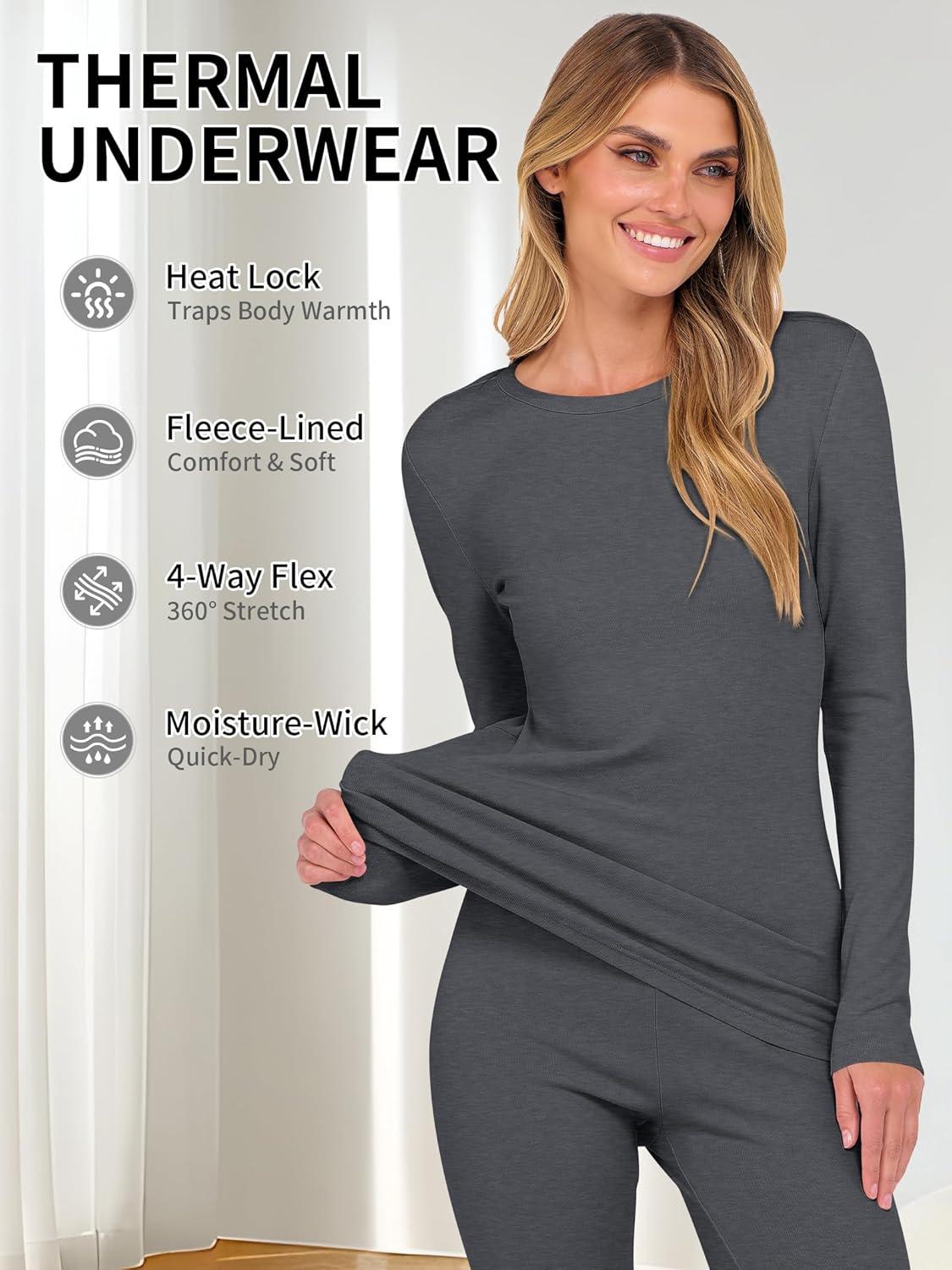 ANRABESS Thermal Underwear for Women Long Johns Fleece Lined Base Layer Pajama Set Cold Weather Top Bottom Winter Clothing(Deep Gray)