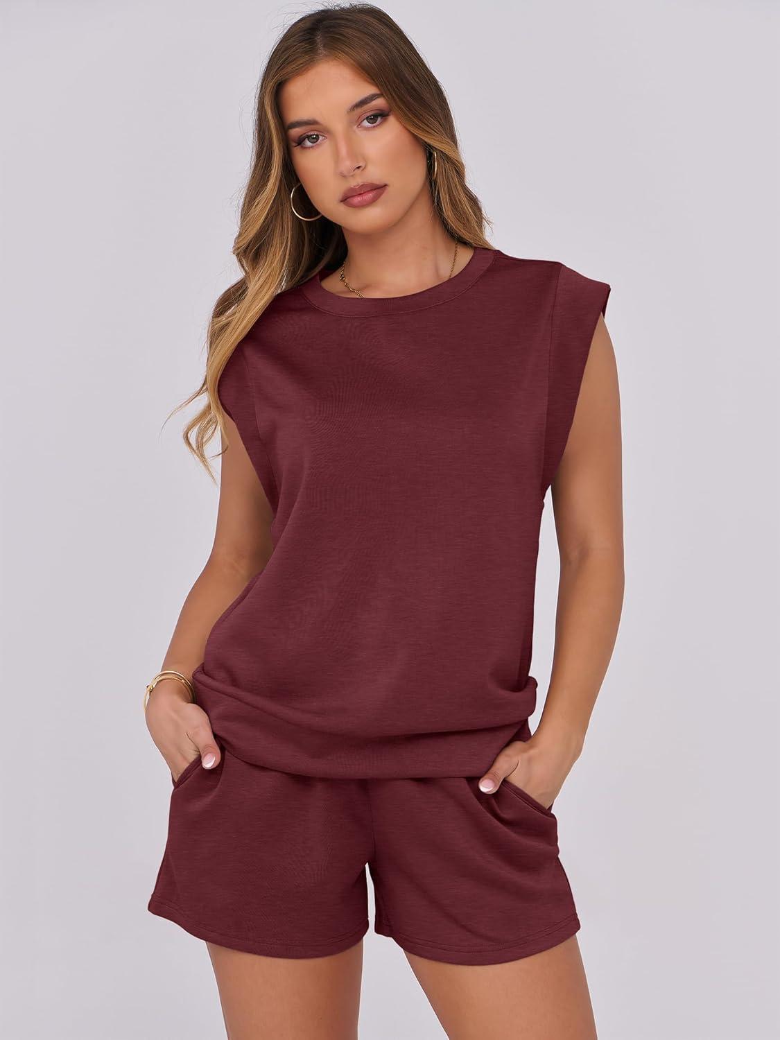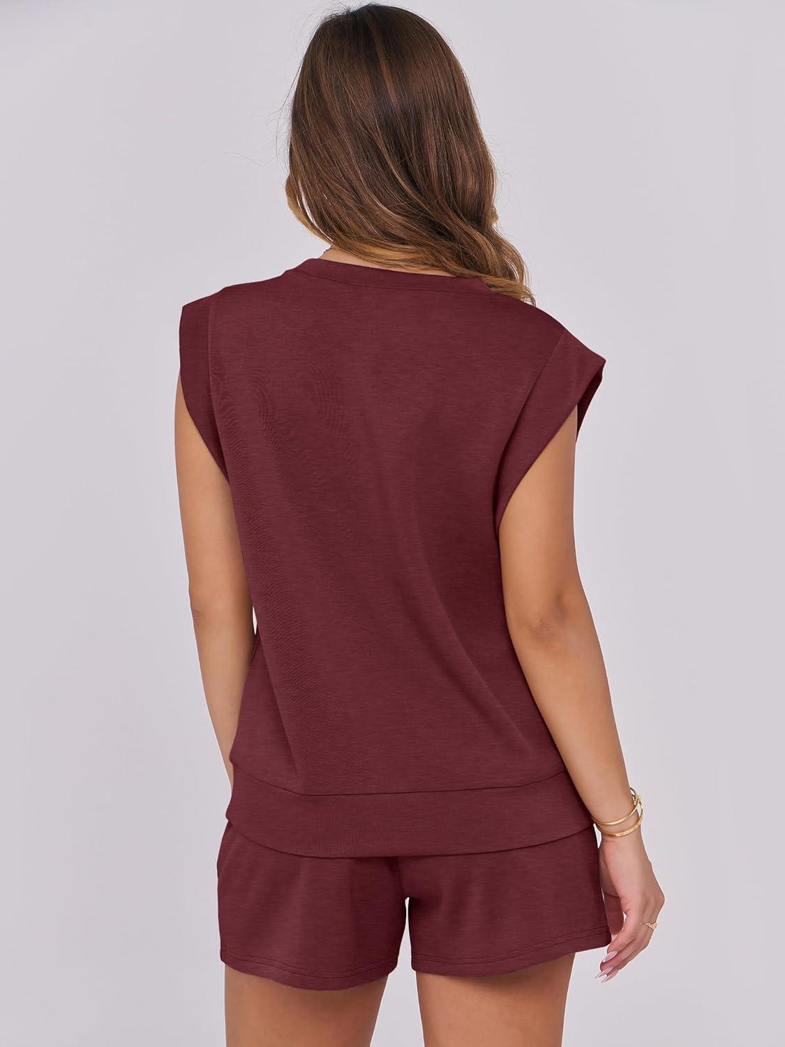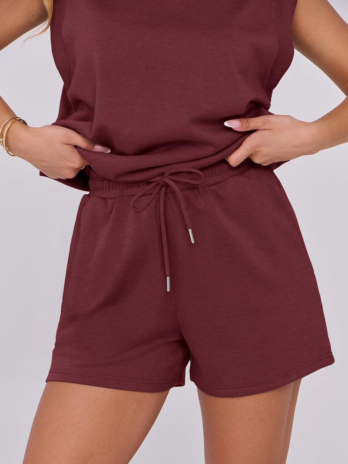 ANRABESS Two Piece Sets for Women 2025 Summer Short Lounge Set Casual Beach Vacation Outfits Spring Sweatsuits Tracksuit(Burgundy)