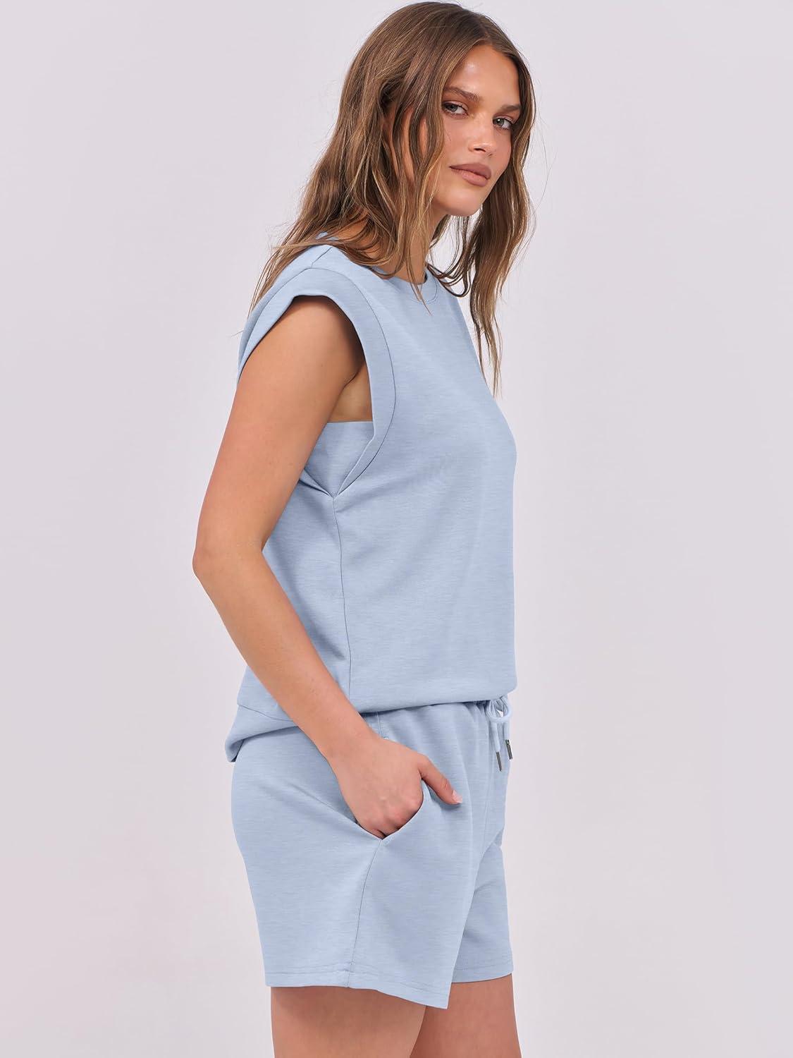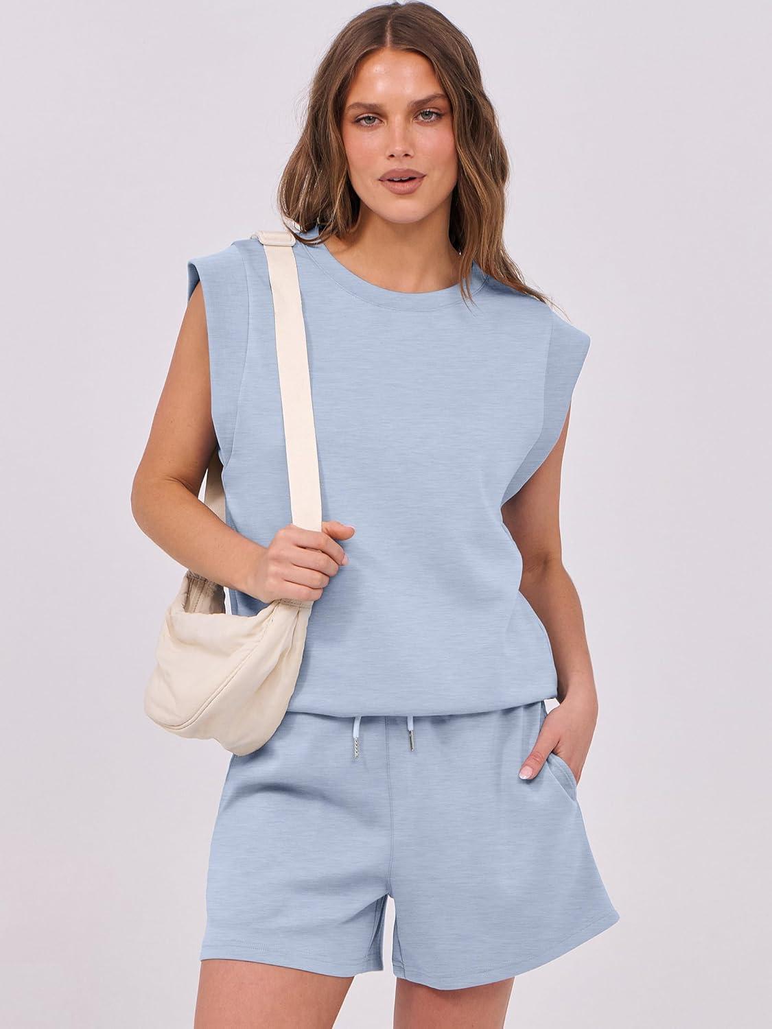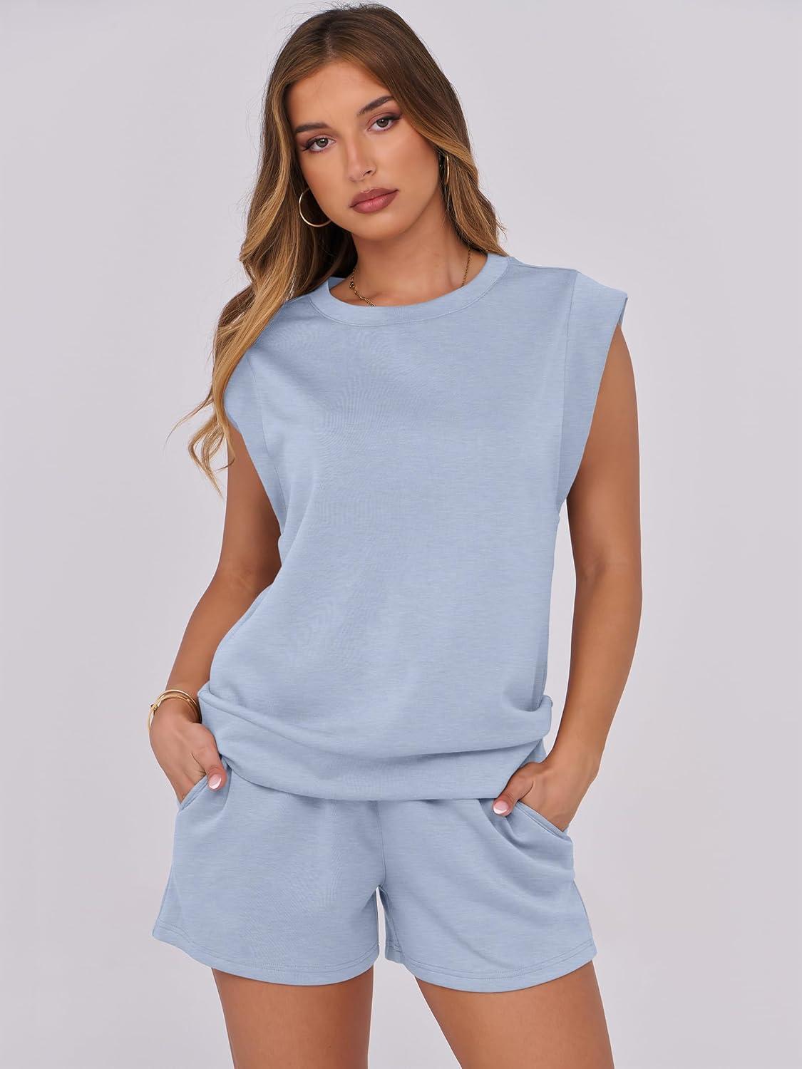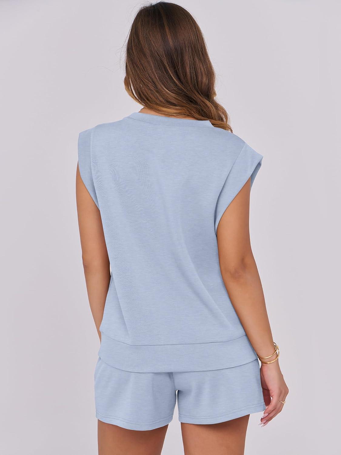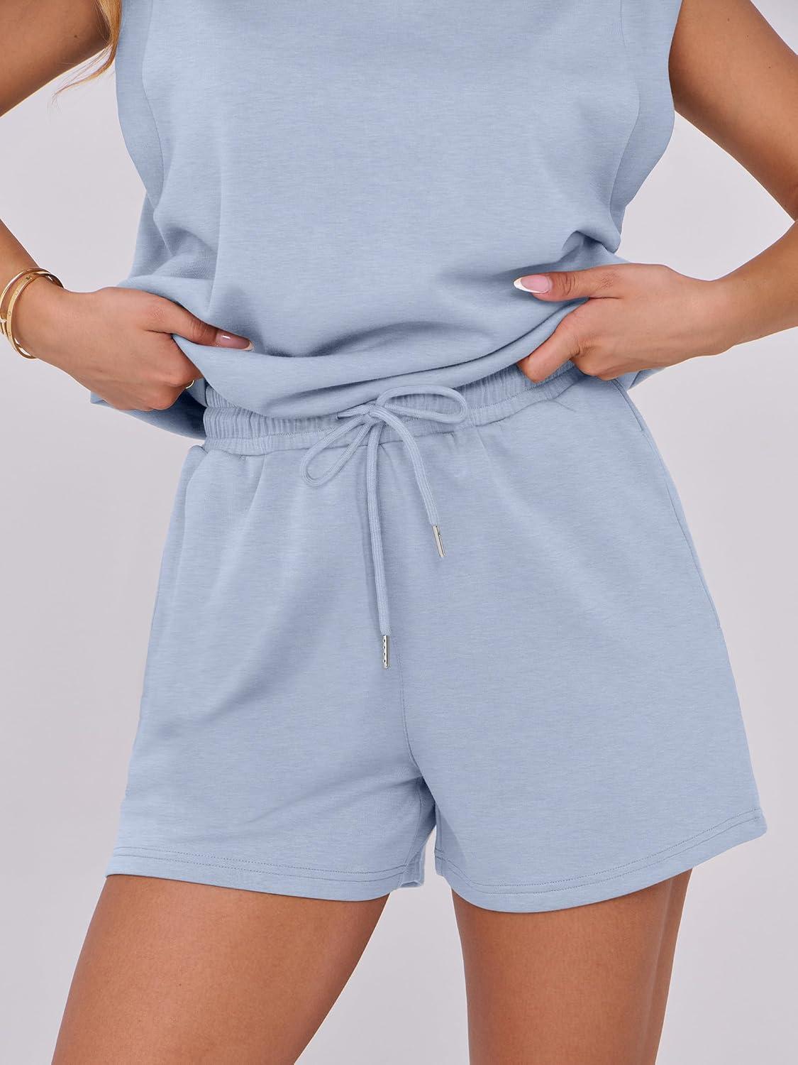 ANRABESS Two Piece Sets for Women 2025 Summer Short Lounge Set Casual Beach Vacation Outfits Spring Sweatsuits Tracksuit(Light Blue)