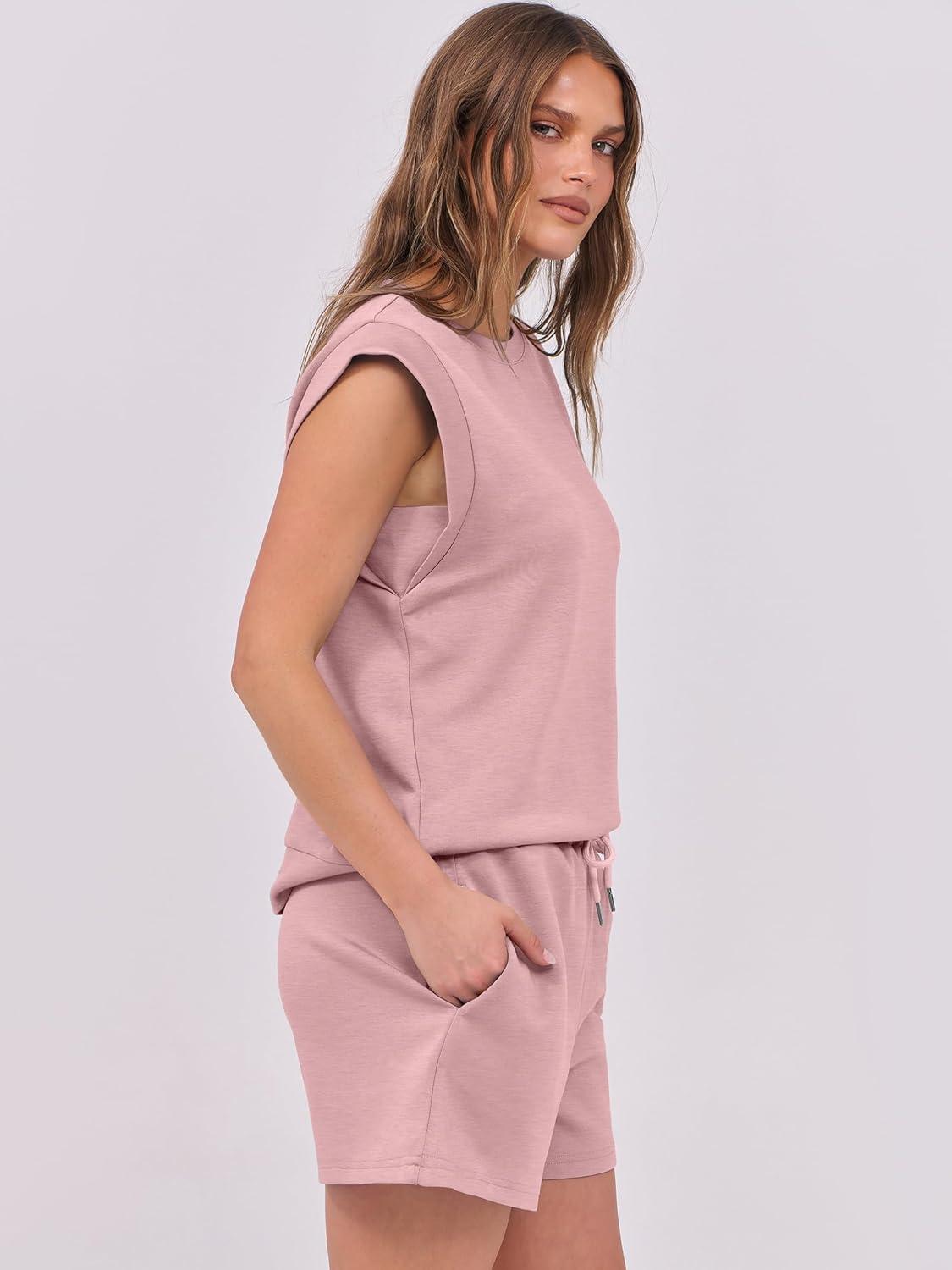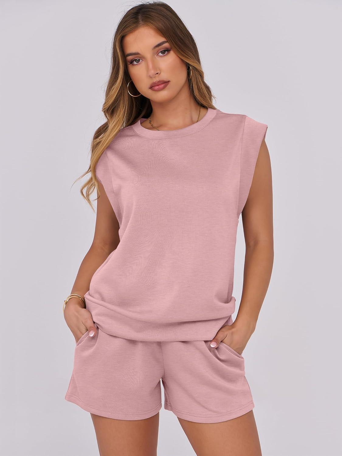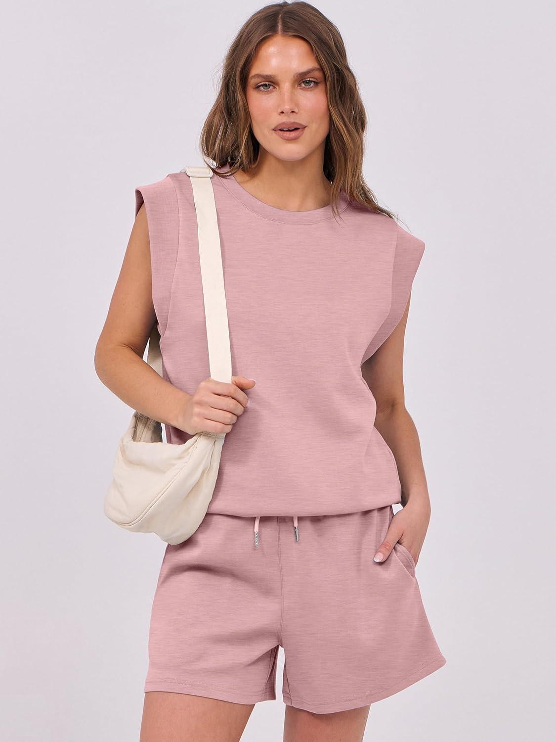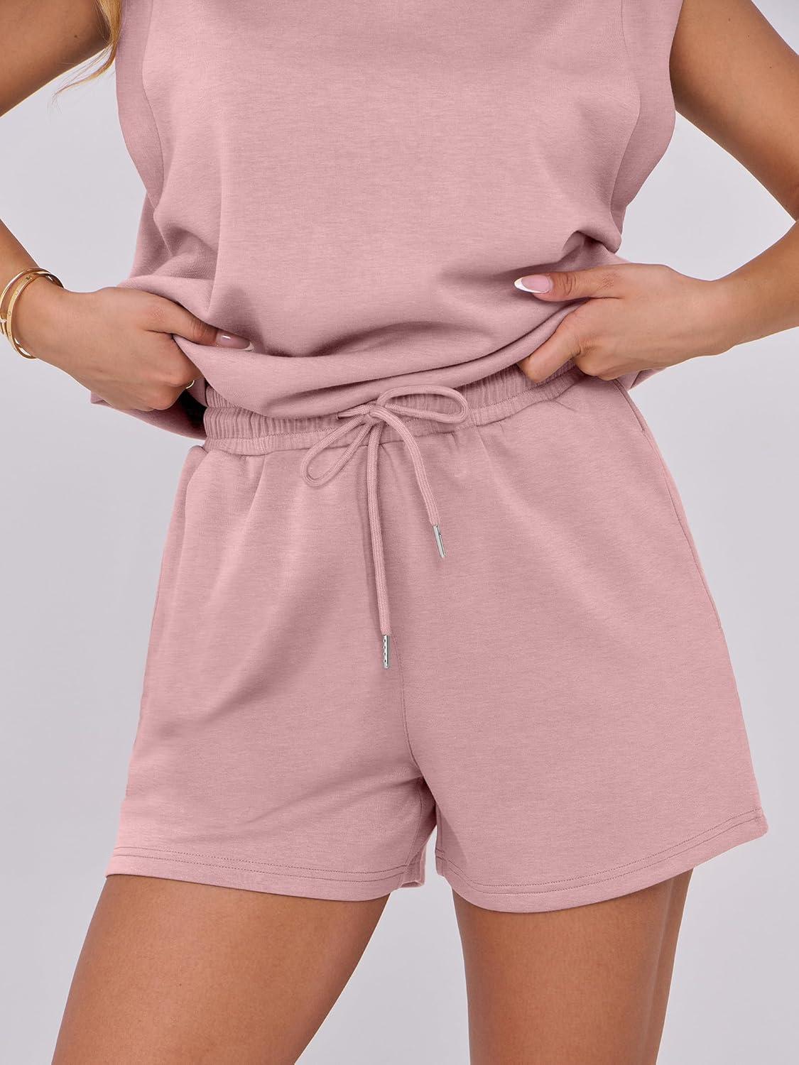 ANRABESS Two Piece Sets for Women 2025 Summer Short Lounge Set Casual Beach Vacation Outfits Spring Sweatsuits Tracksuit(Light Pink)