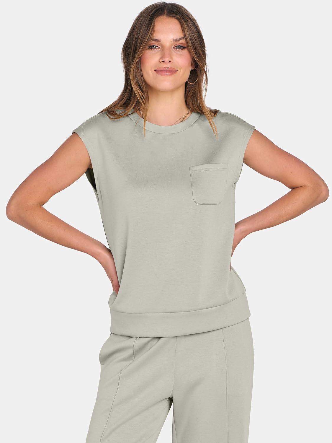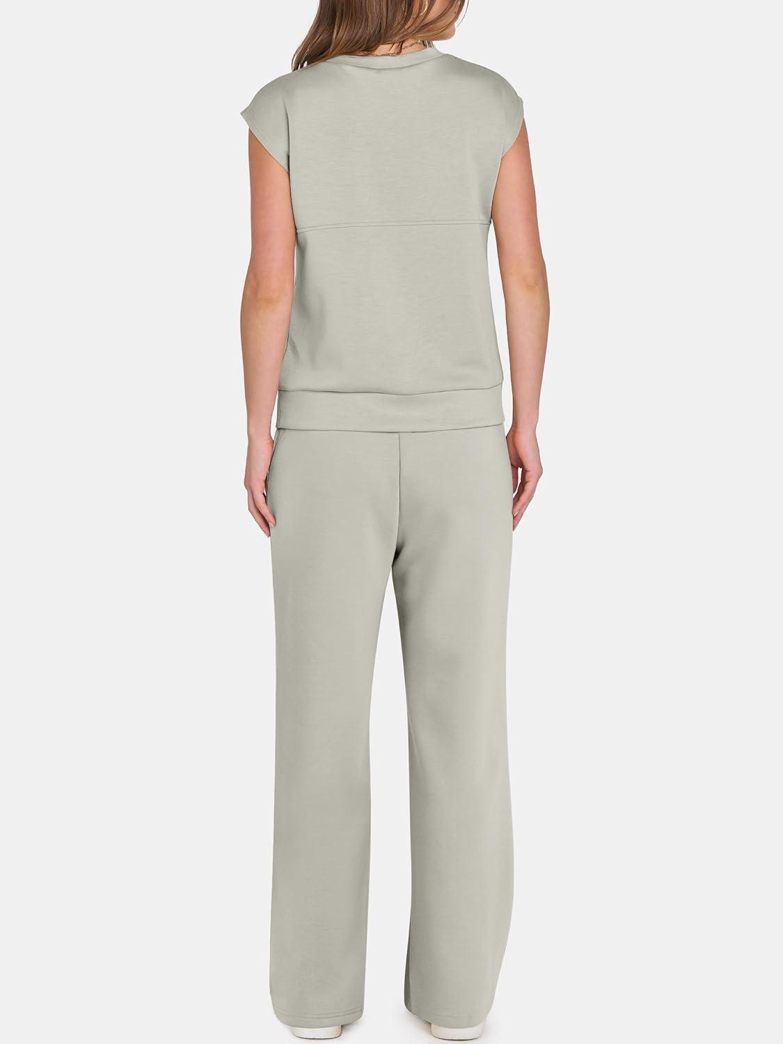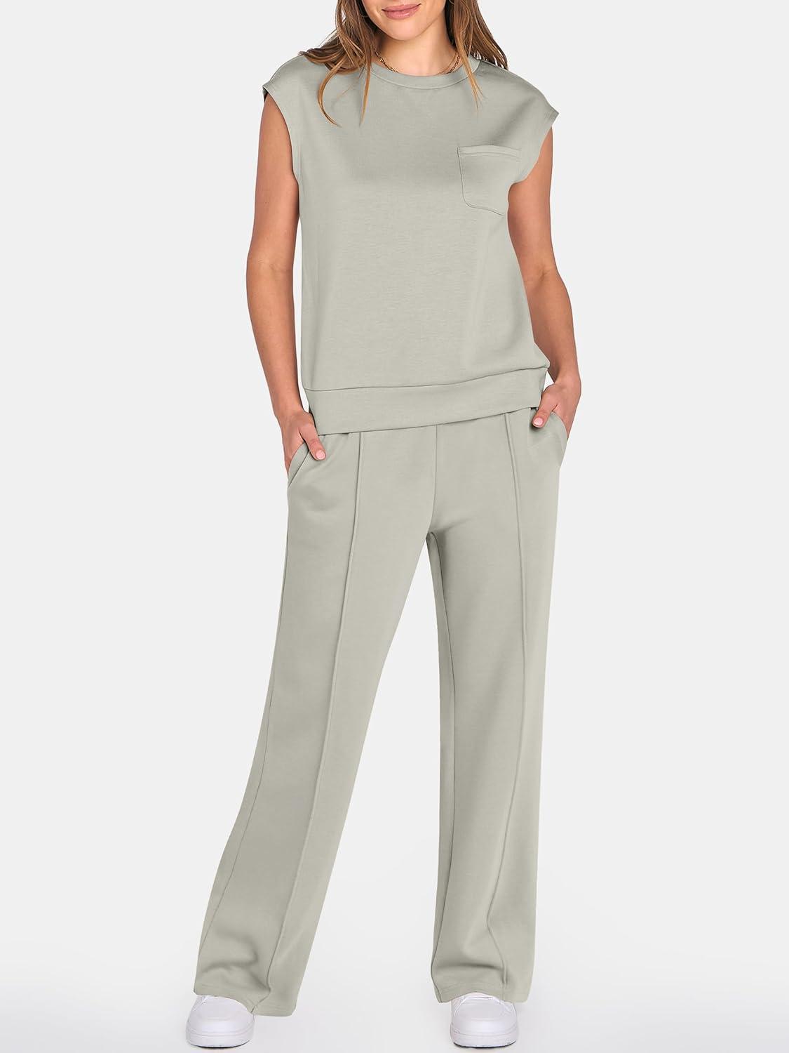 ANRABESS Women's Summer 2 Piece Outfits Casual Sleeveless Sweatsuits Matching Wide Leg Tracksuits Lounge Sets Fashion Clothes