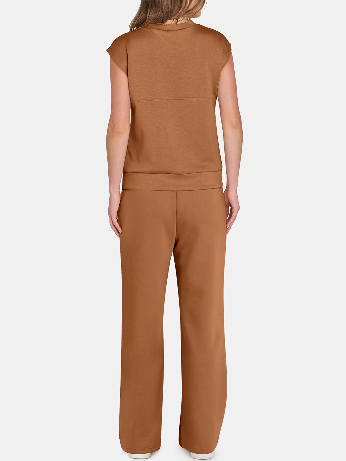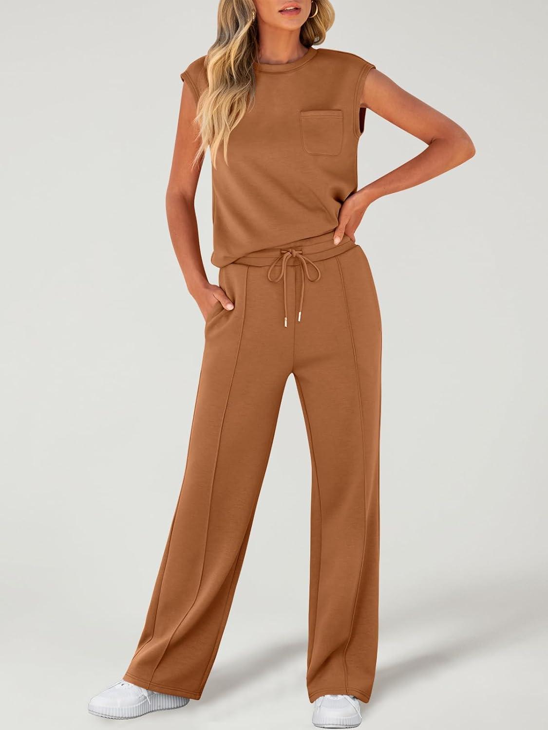 ANRABESS Two Piece Sets for Women Summer Sleeveless Sweatsuits Wide Leg Casual Lounge Set Matching Vacation Travel Outfits(Rust)