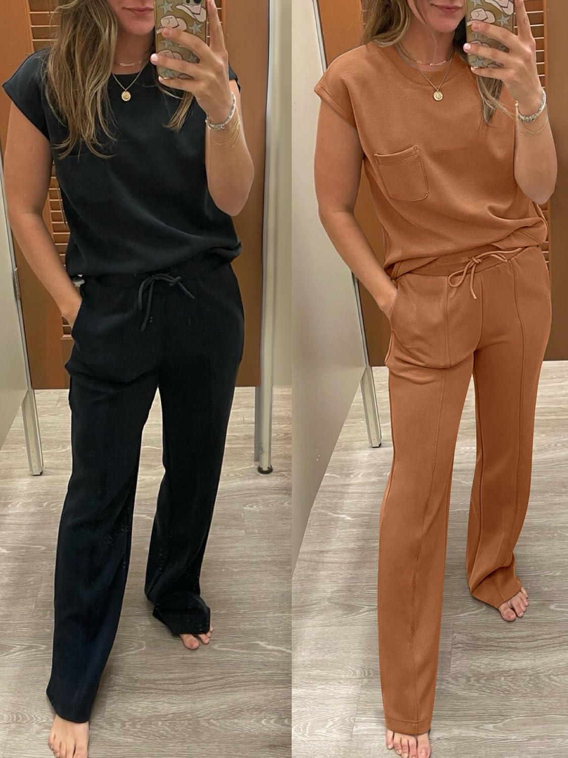 ANRABESS Women's Summer 2 Piece Outfits Casual Sleeveless Sweatsuits Matching Wide Leg Tracksuits Lounge Sets Fashion Clothes