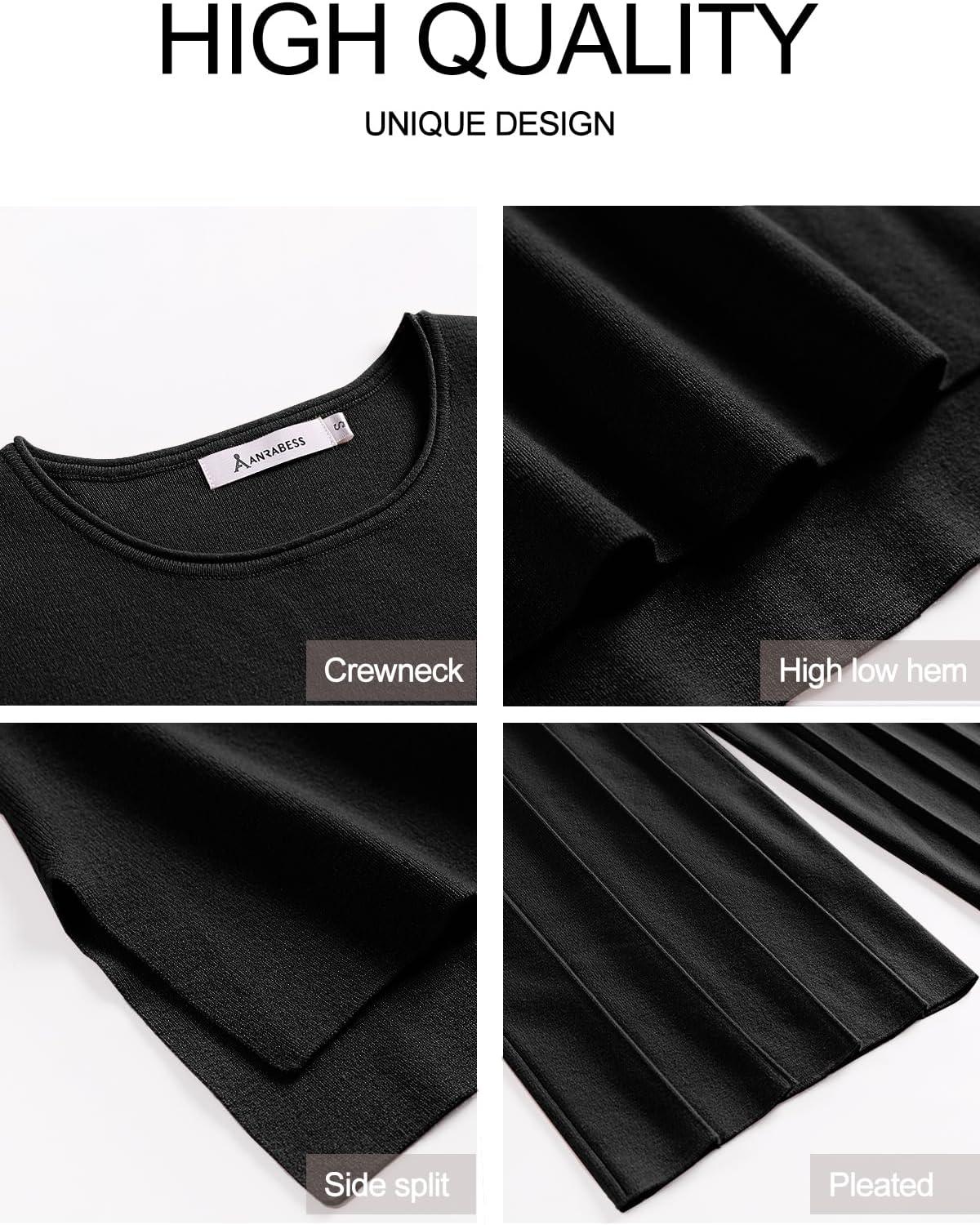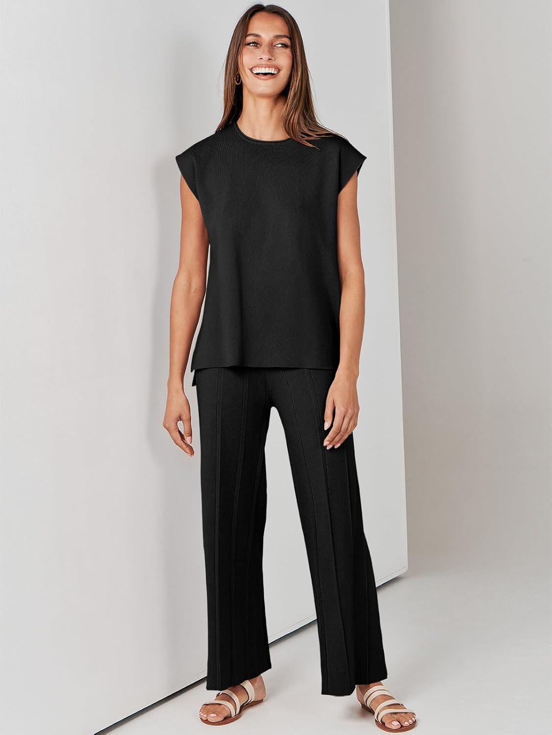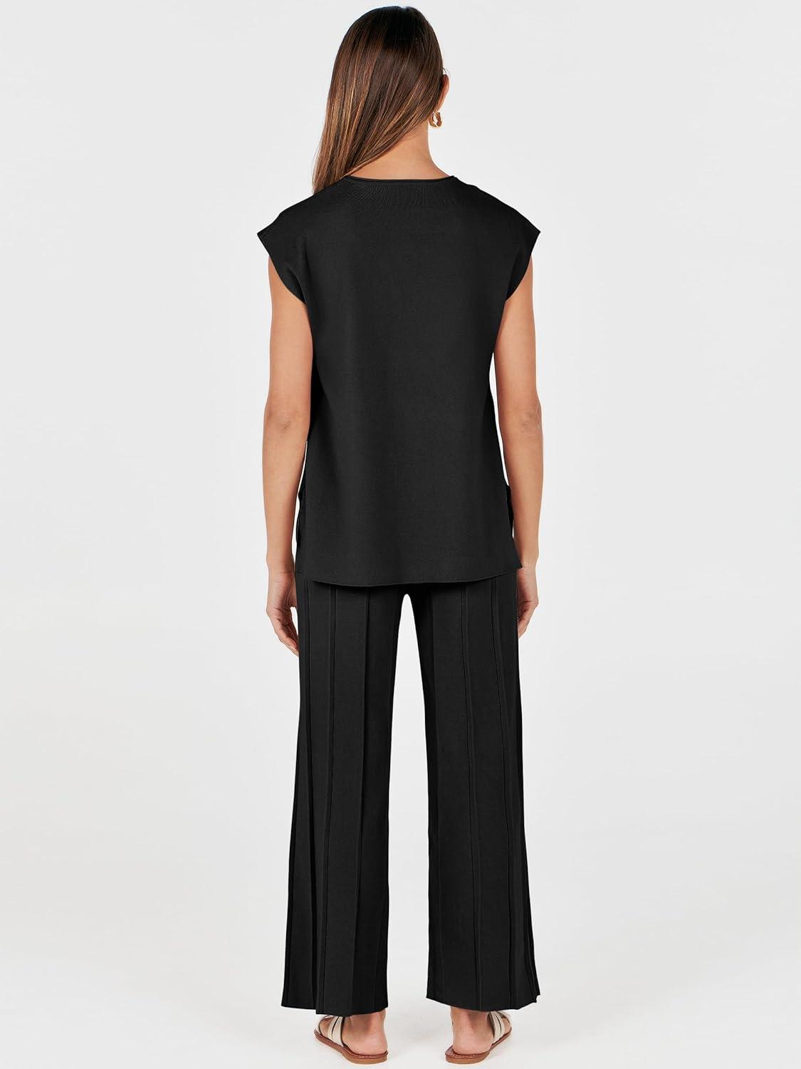 ANRABESS Women 2 Piece Lounge Sets Summer Casual Knit Sweater Vest Pant Set Beach Vacation Airport Clothes 2025 Fall Outfits(Black)