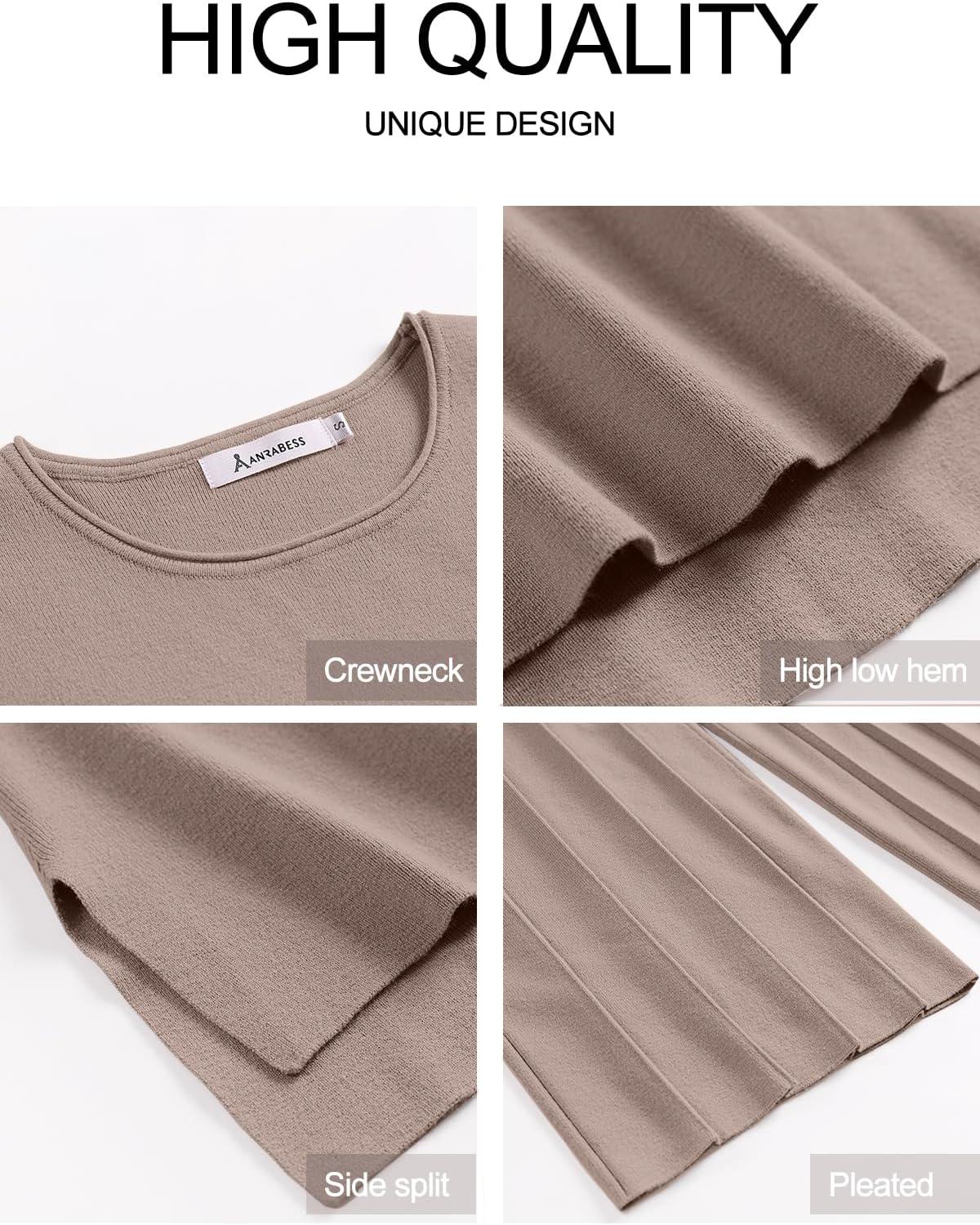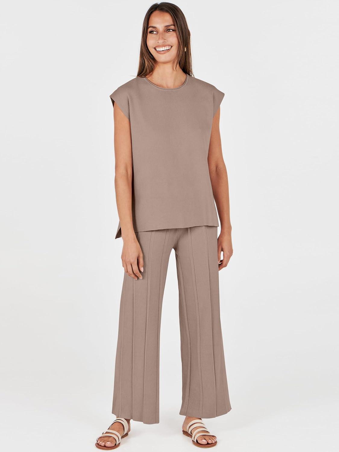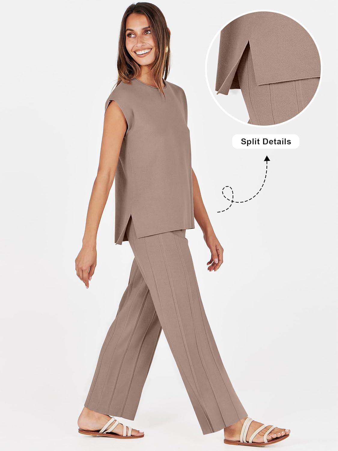 ANRABESS Women 2 Piece Lounge Sets Summer Casual Knit Sweater Vest Pant Set Beach Vacation Airport Clothes 2025 Fall Outfits(Brown)