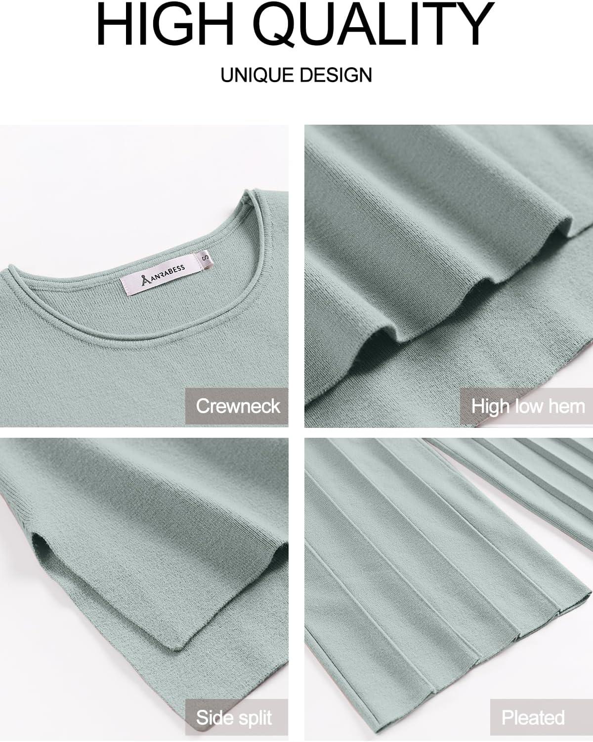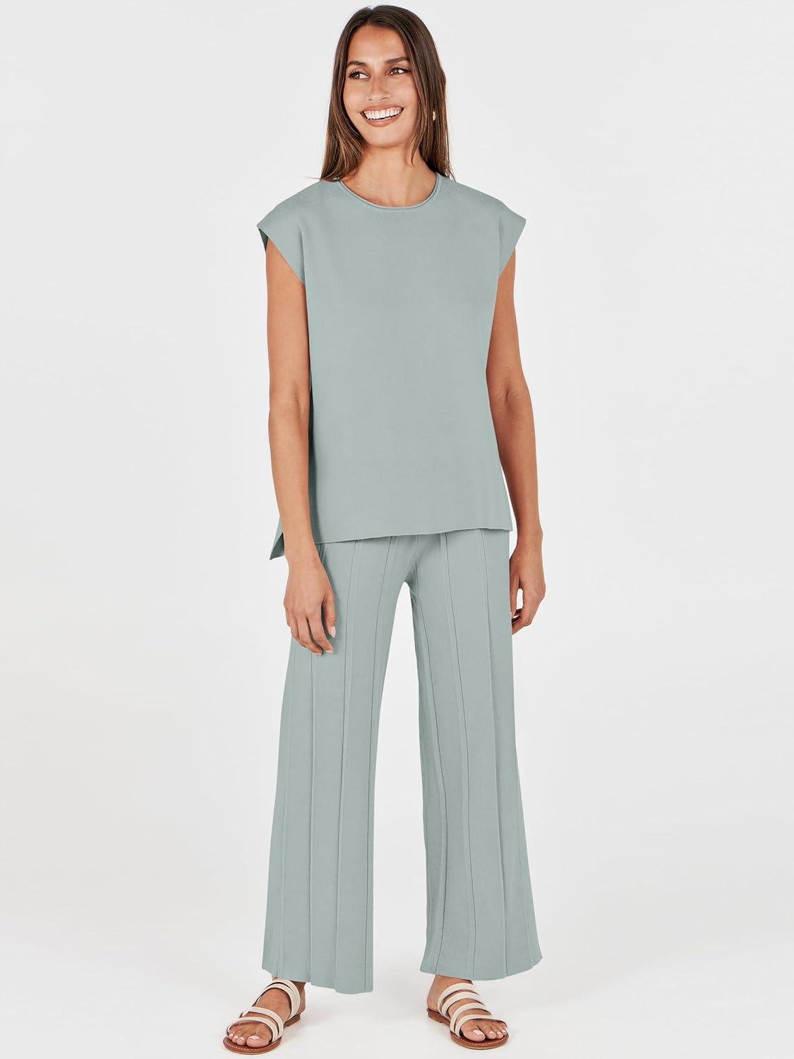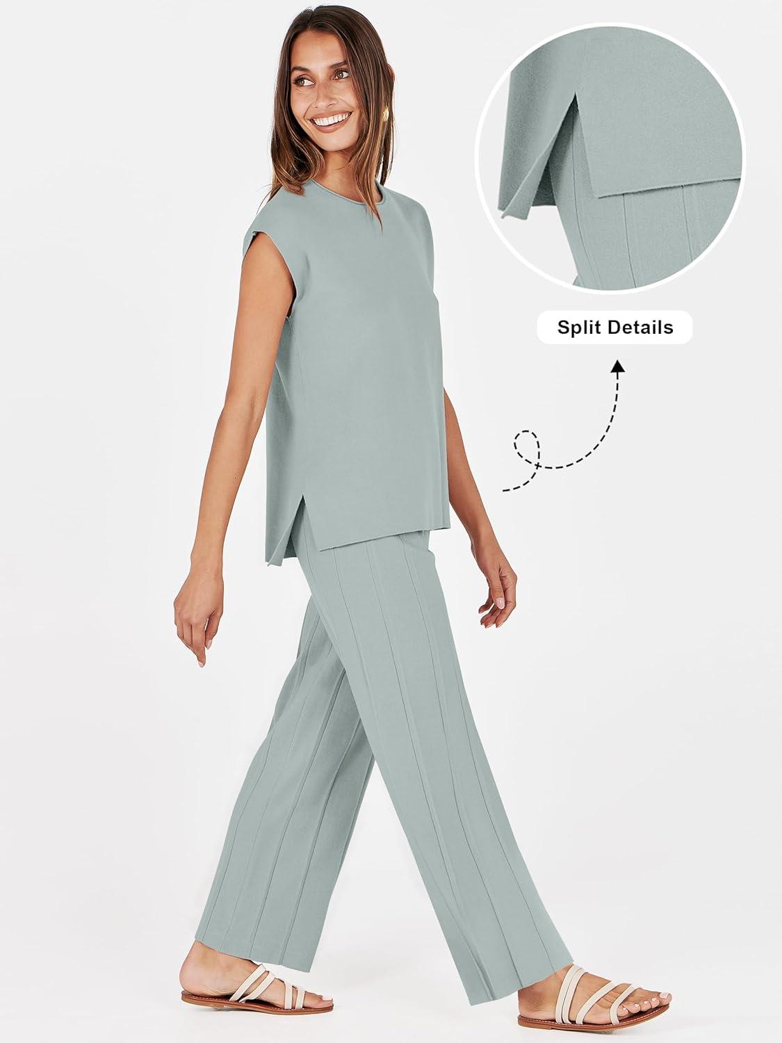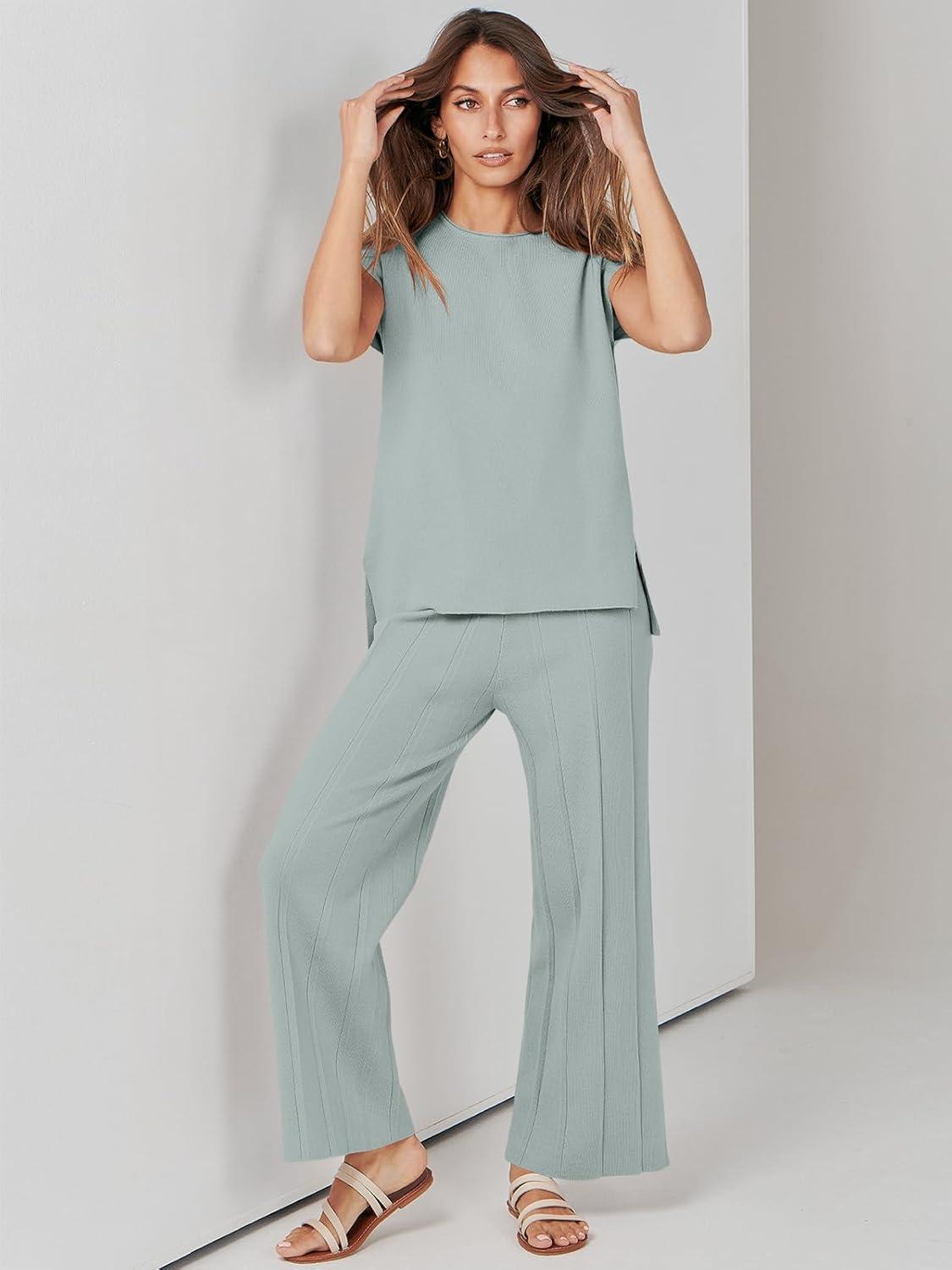 ANRABESS Women 2 Piece Lounge Sets Summer Casual Knit Sweater Vest Pant Set Beach Vacation Airport Clothes 2025 Fall Outfits(Grey Green)
