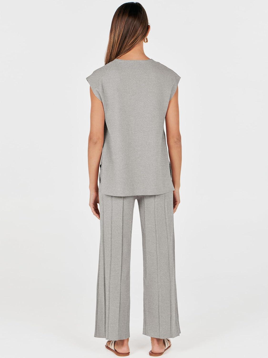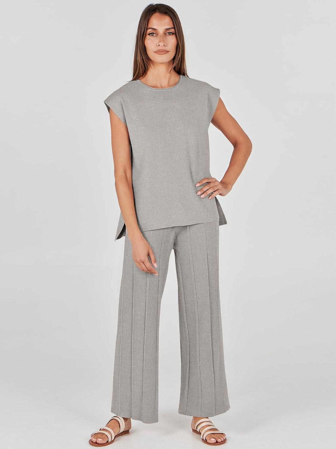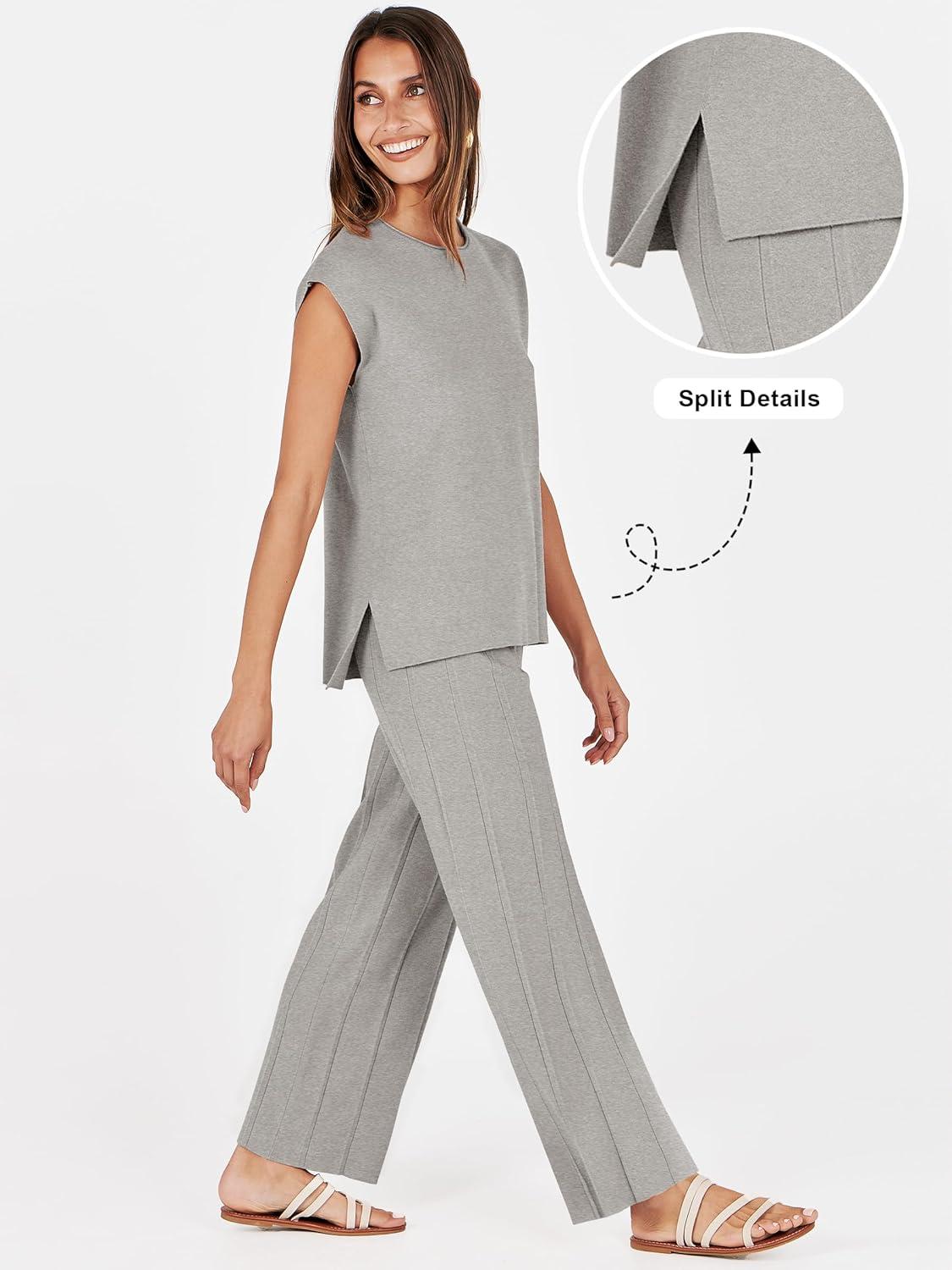 ANRABESS Women 2 Piece Lounge Sets Summer Casual Knit Sweater Vest Pant Set Beach Vacation Airport Clothes 2025 Fall Outfits(Grey)
