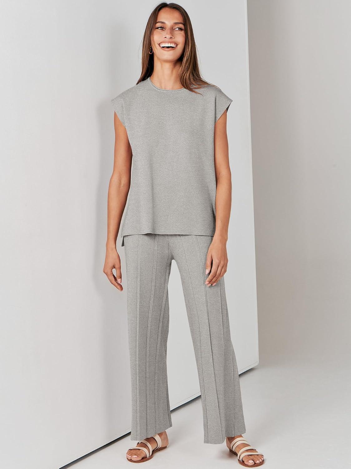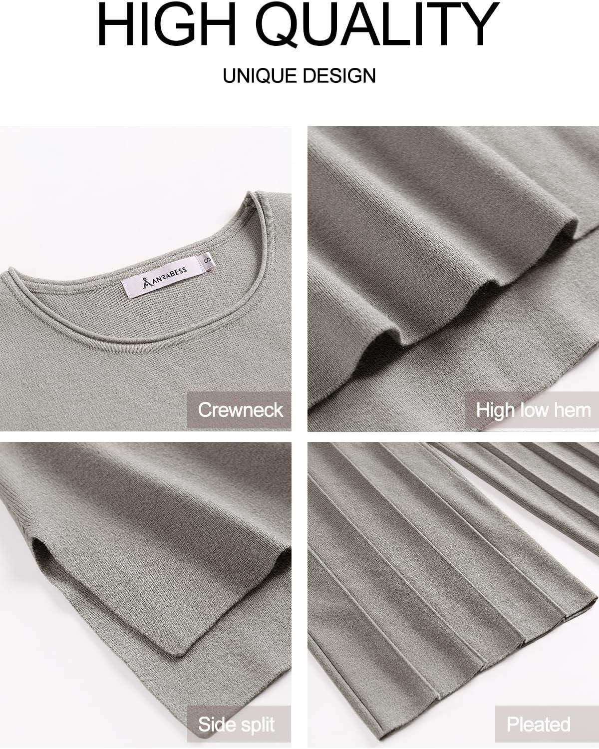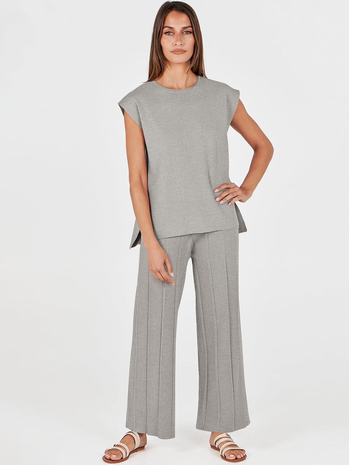 ANRABESS Women 2 Piece Lounge Sets Summer Casual Knit Sweater Vest Pant Set Beach Vacation Airport Clothes 2025 Fall Outfits(Grey)