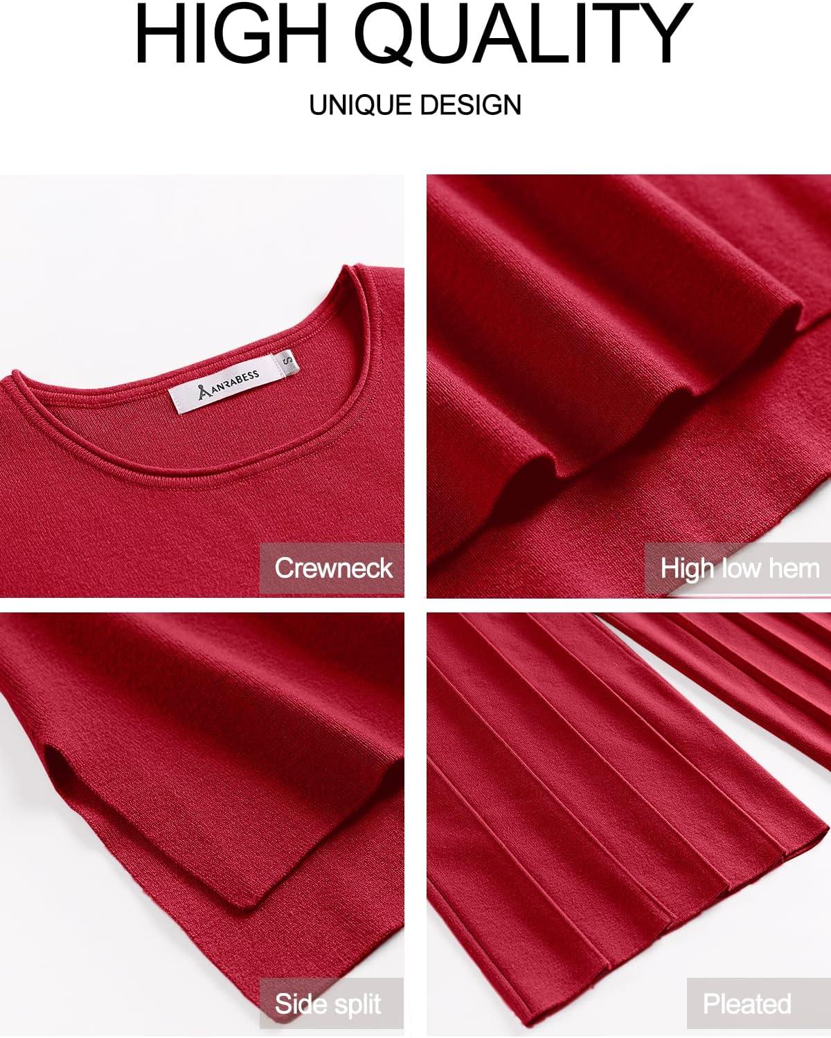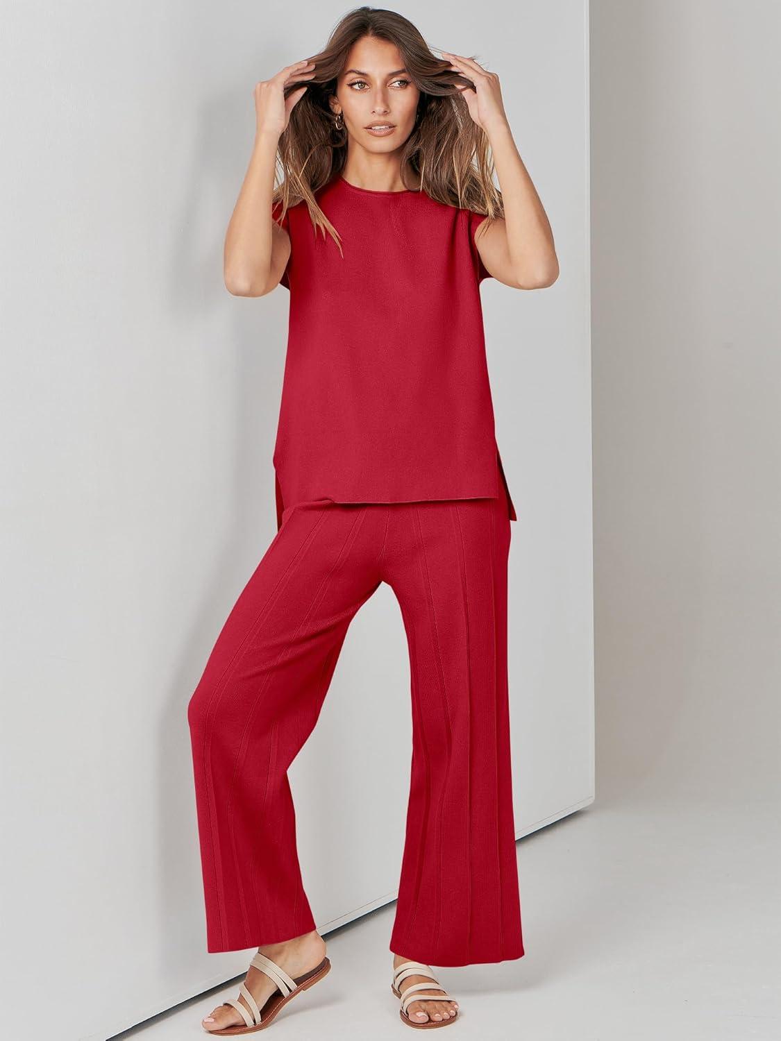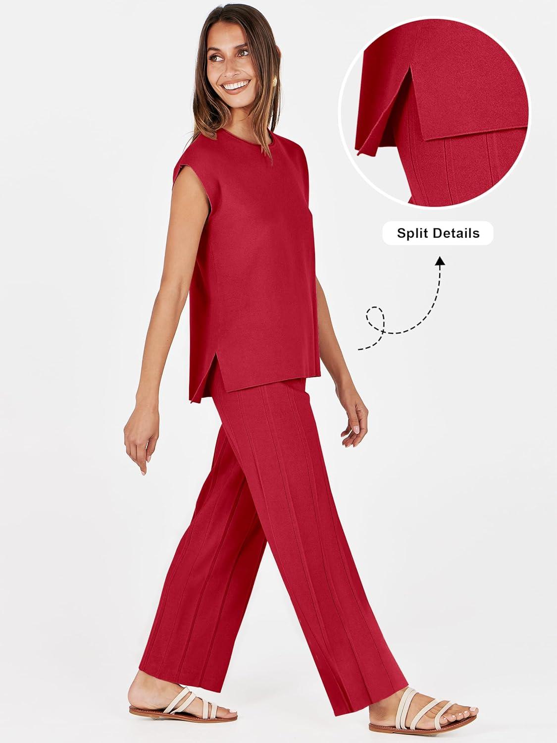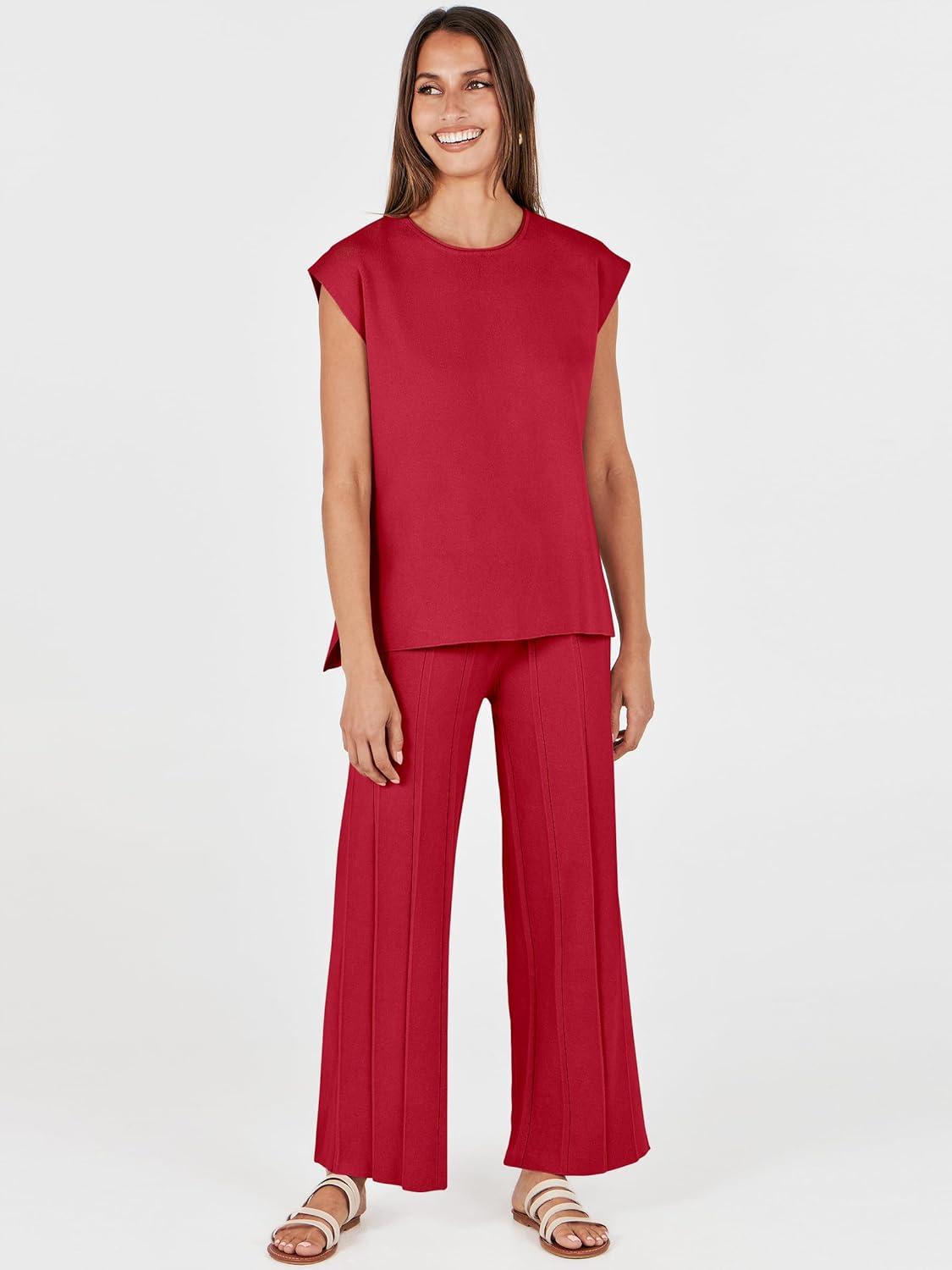 ANRABESS Women 2 Piece Lounge Sets Summer Casual Knit Sweater Vest Pant Set Beach Vacation Airport Clothes 2025 Fall Outfits(Red)