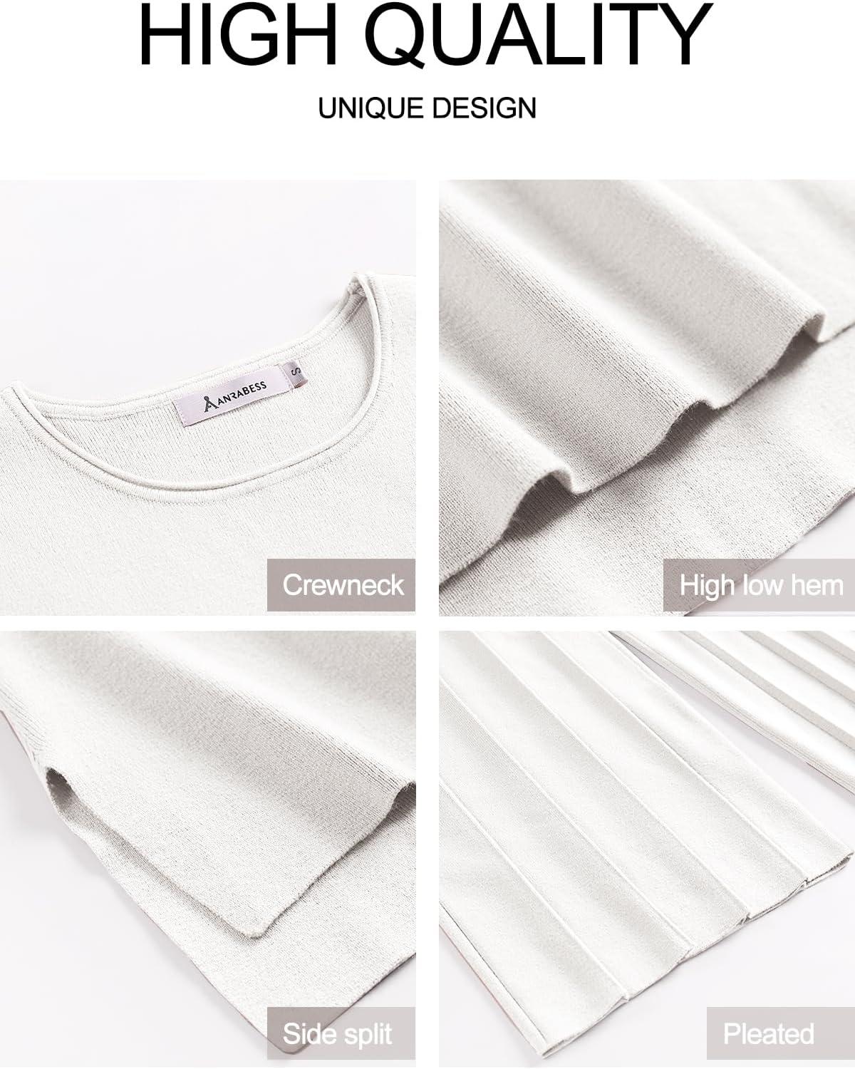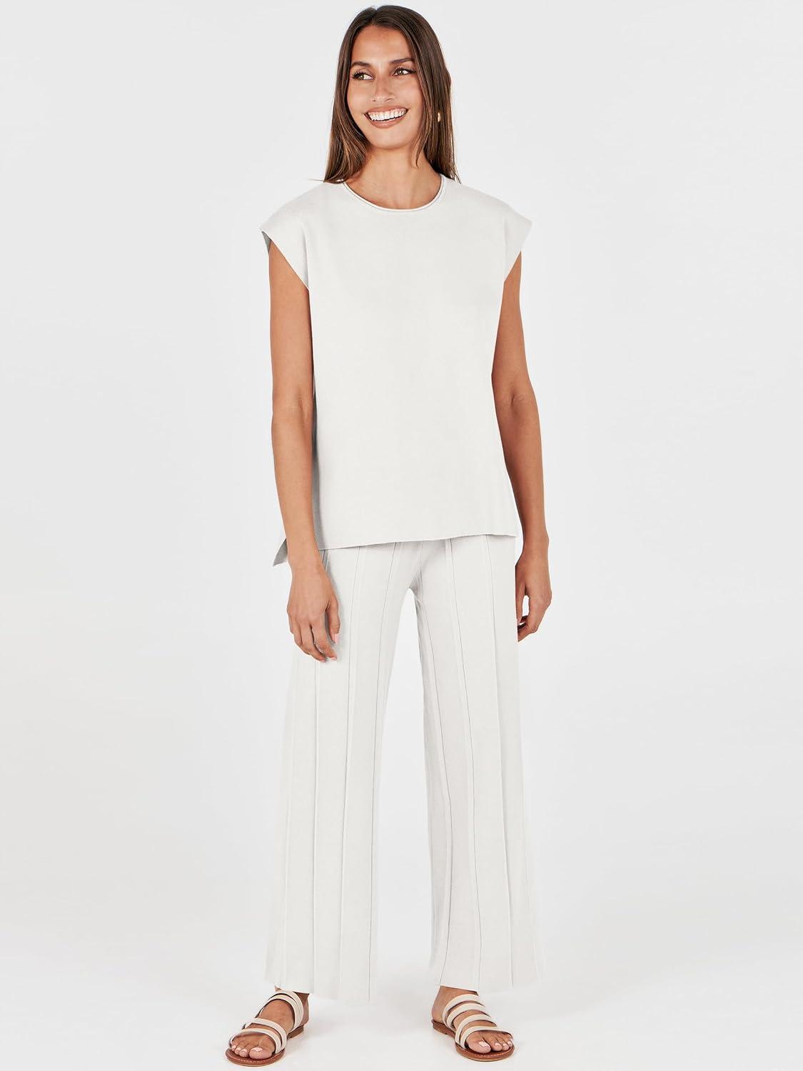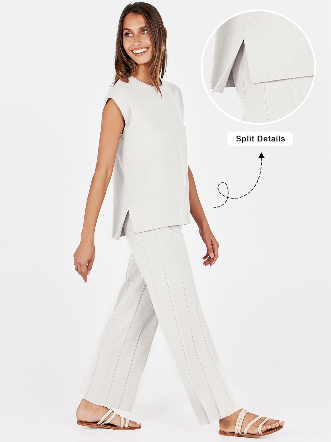 ANRABESS Women 2 Piece Lounge Sets Summer Casual Knit Sweater Vest Pant Set Beach Vacation Airport Clothes 2025 Fall Outfits(White)