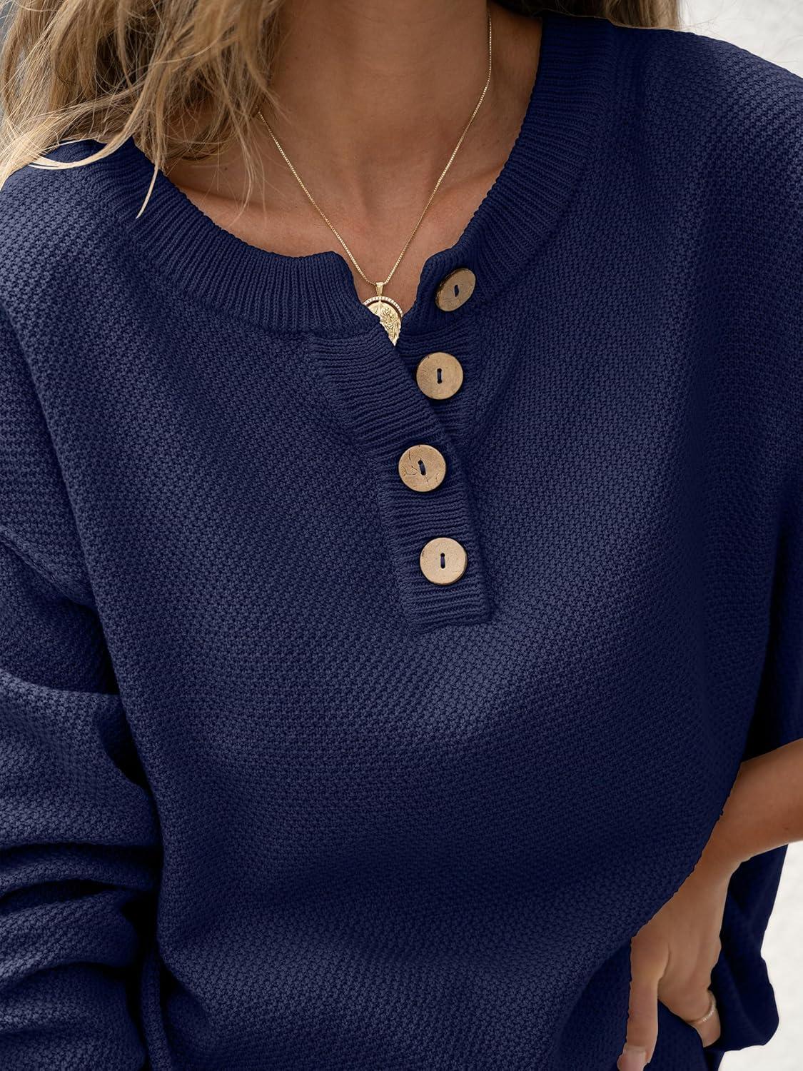 ANRABESS Women 2 Piece Outfits Oversized Loose Waffle Knit Sweater Set 2025 Fall Trendy Matching Lounge Sets Cozy Clothes(Navy Blue)