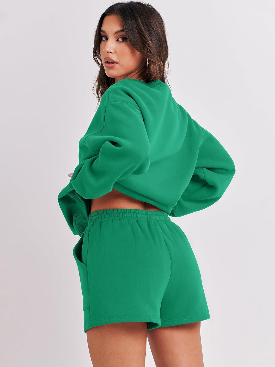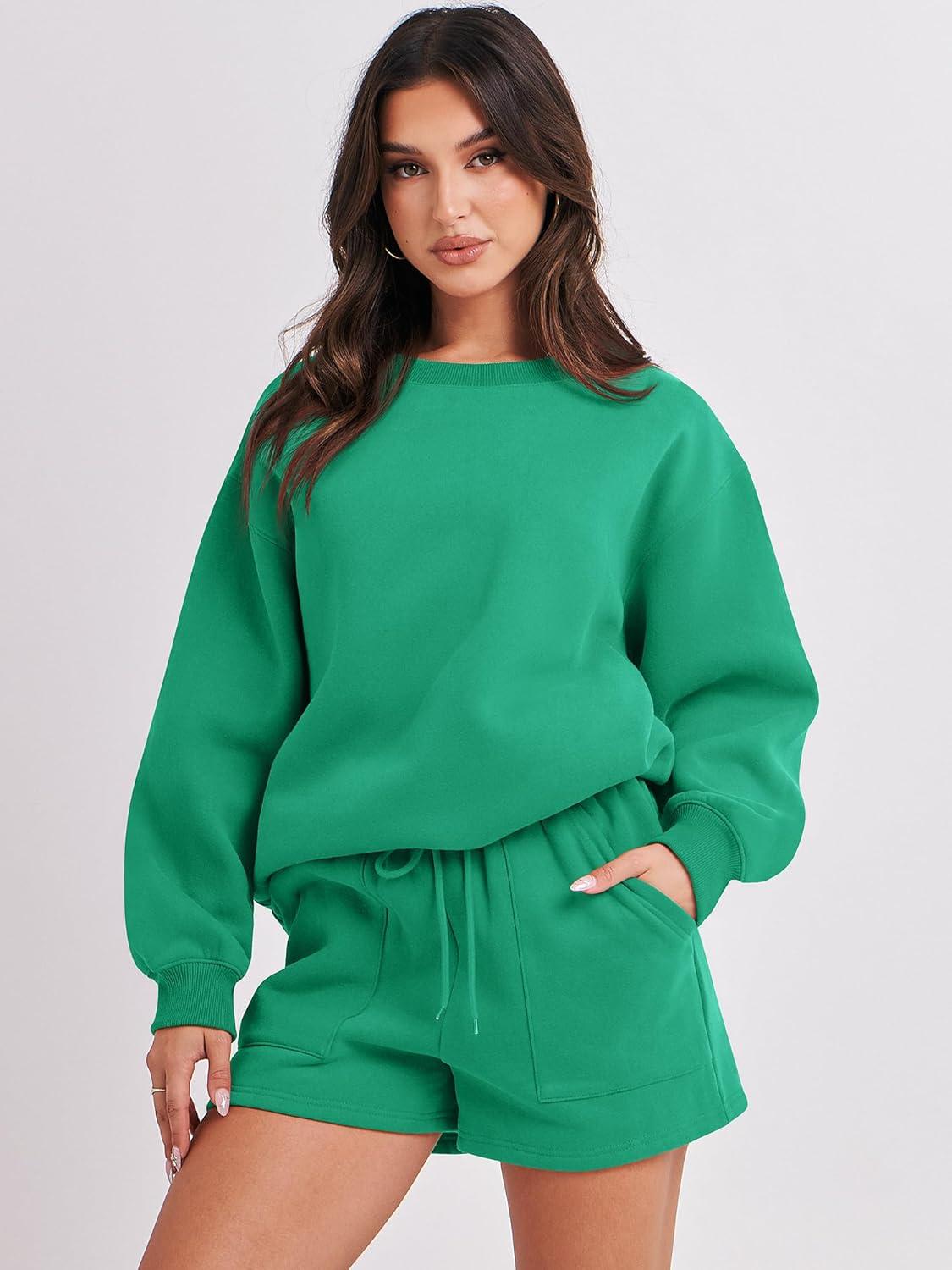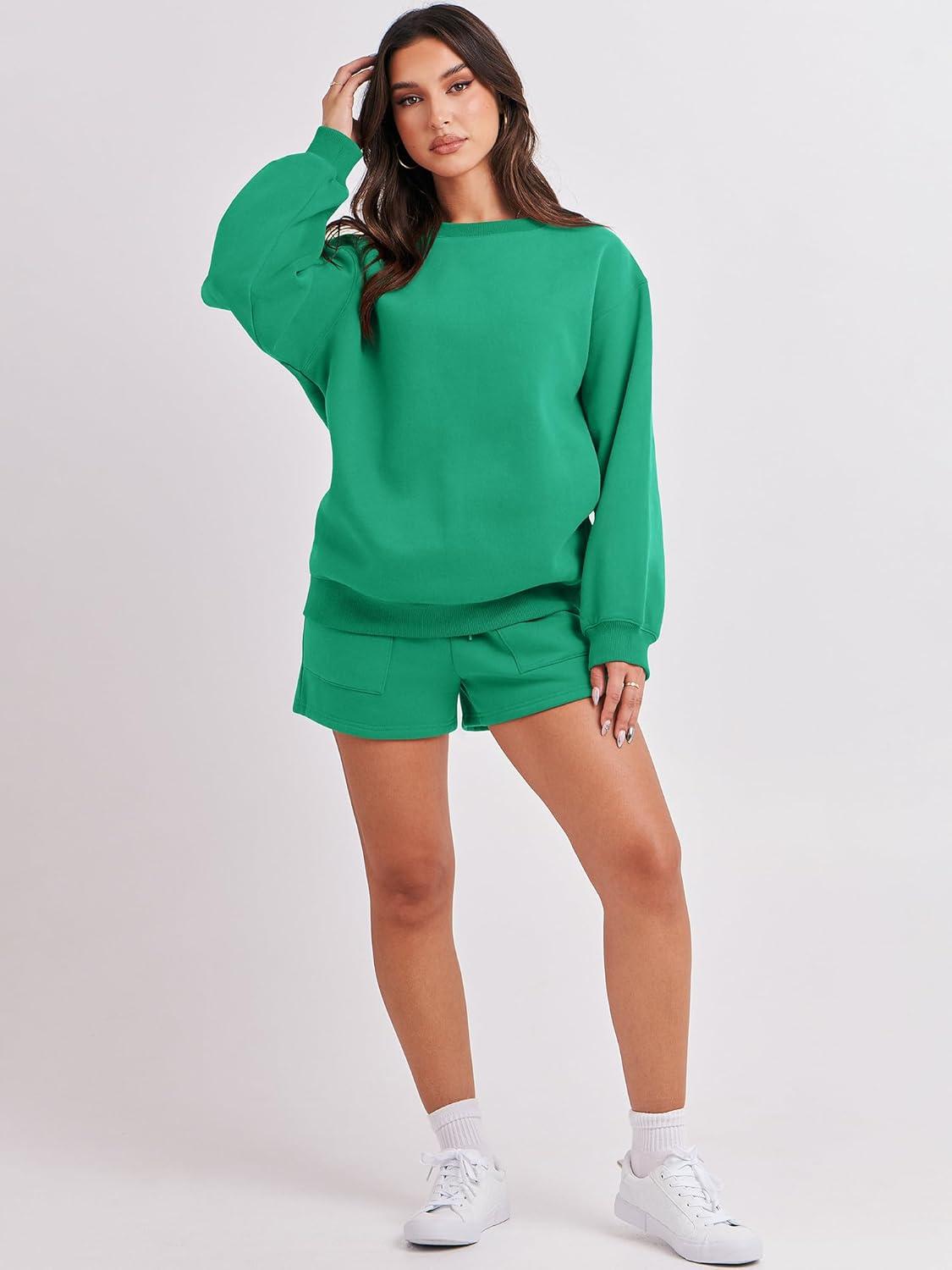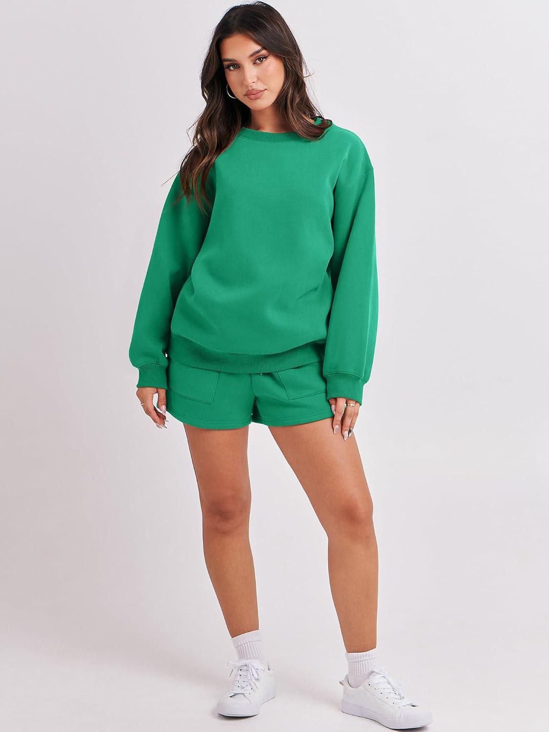 ANRABESS Women 2 Piece Outfits Sweat Shorts Sets 2025 Oversized Casual Lounge Matching Set Sweatsuit Tracksuit Fall Clothes(Green)