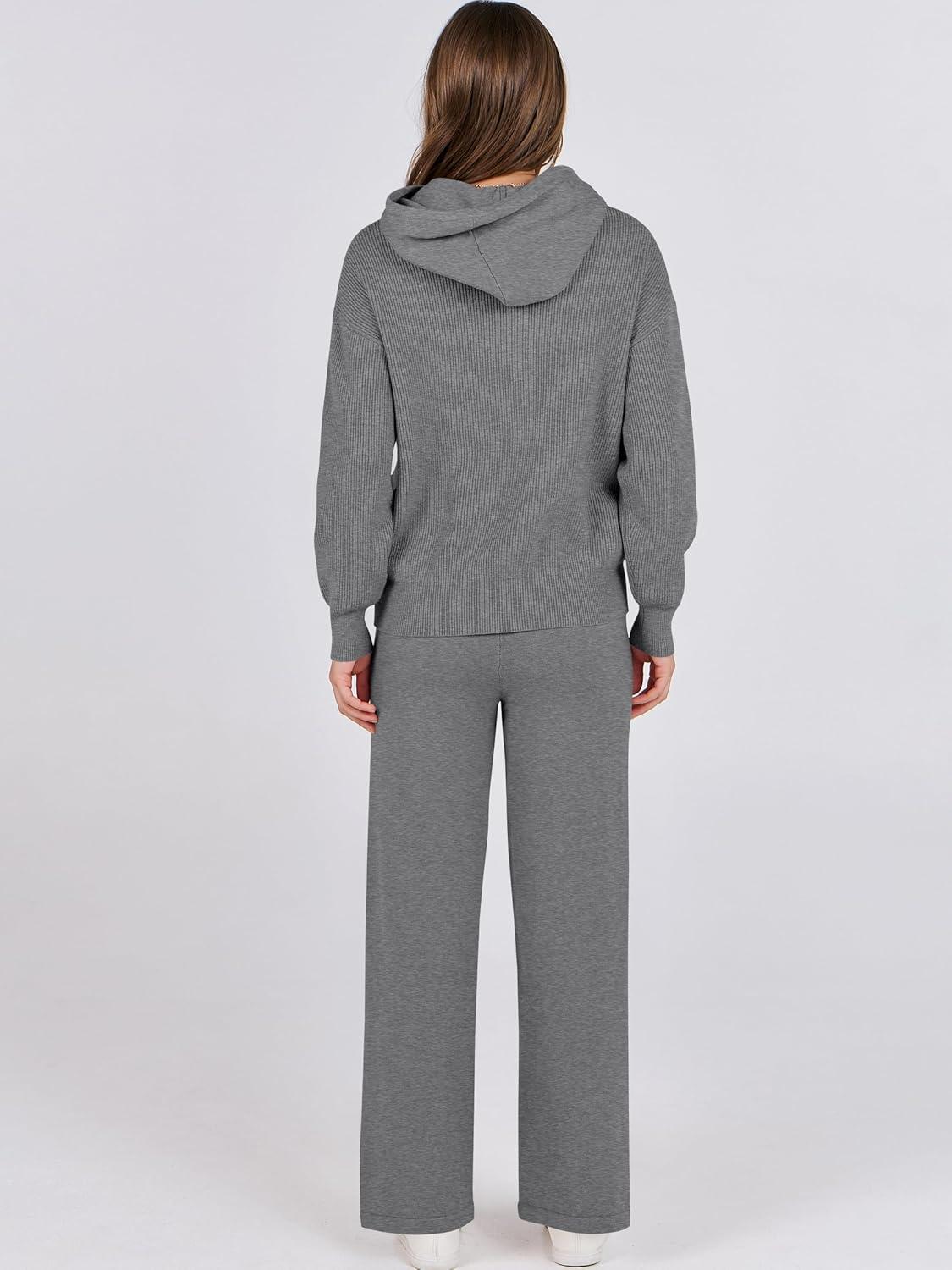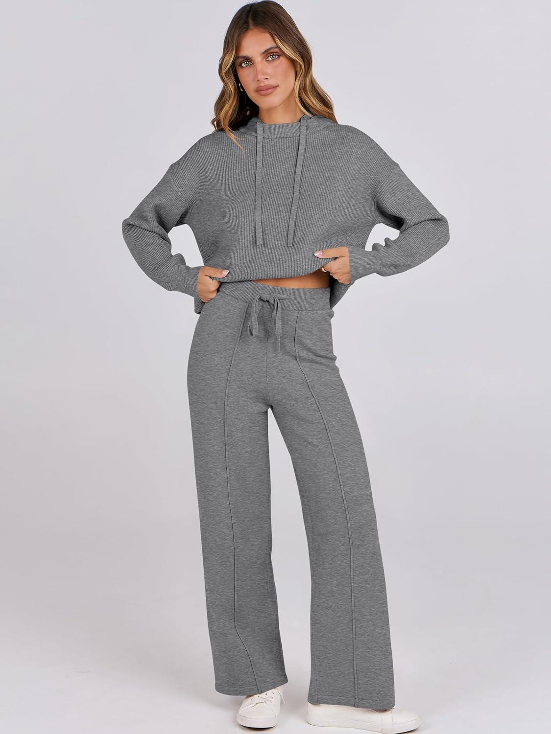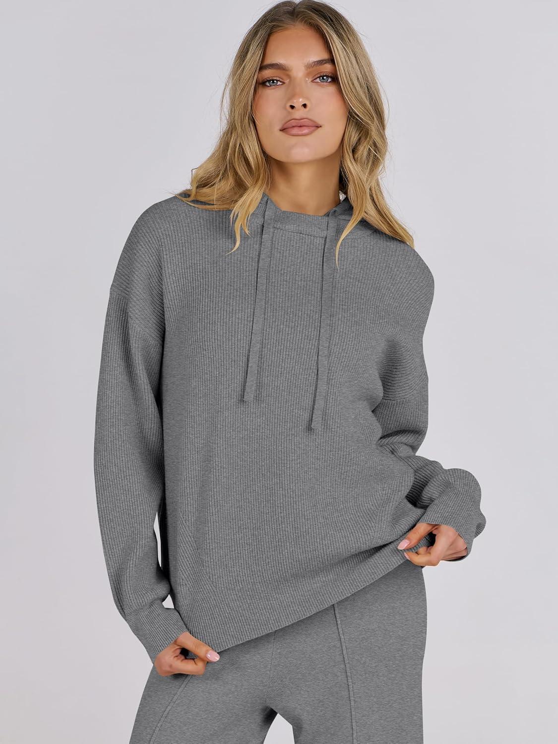 ANRABESS Women 2 Piece Outfits Sweater Sets Loose Long Sleeve Hoodies Knit Pullover Wide Leg Pants 2025 Fall Lounge Sweatsuit(Dark Gray)