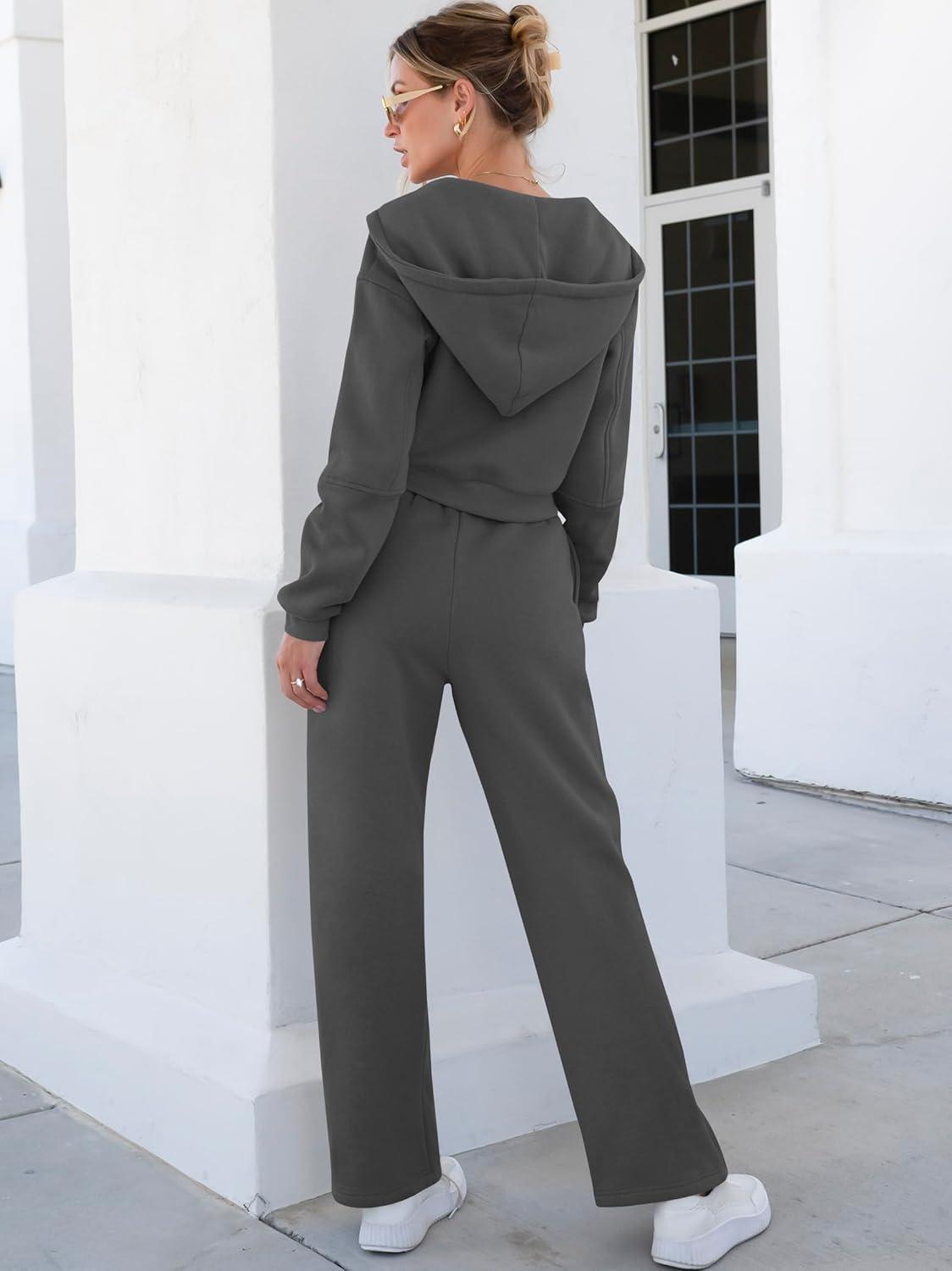 ANRABESS Women 2 Piece Outfits Sweatsuit Zip Up Crop Hoodies SweatPants Lounge Matching Sweat Set 2024 Winter Trendy Clothes(Dark Grey)