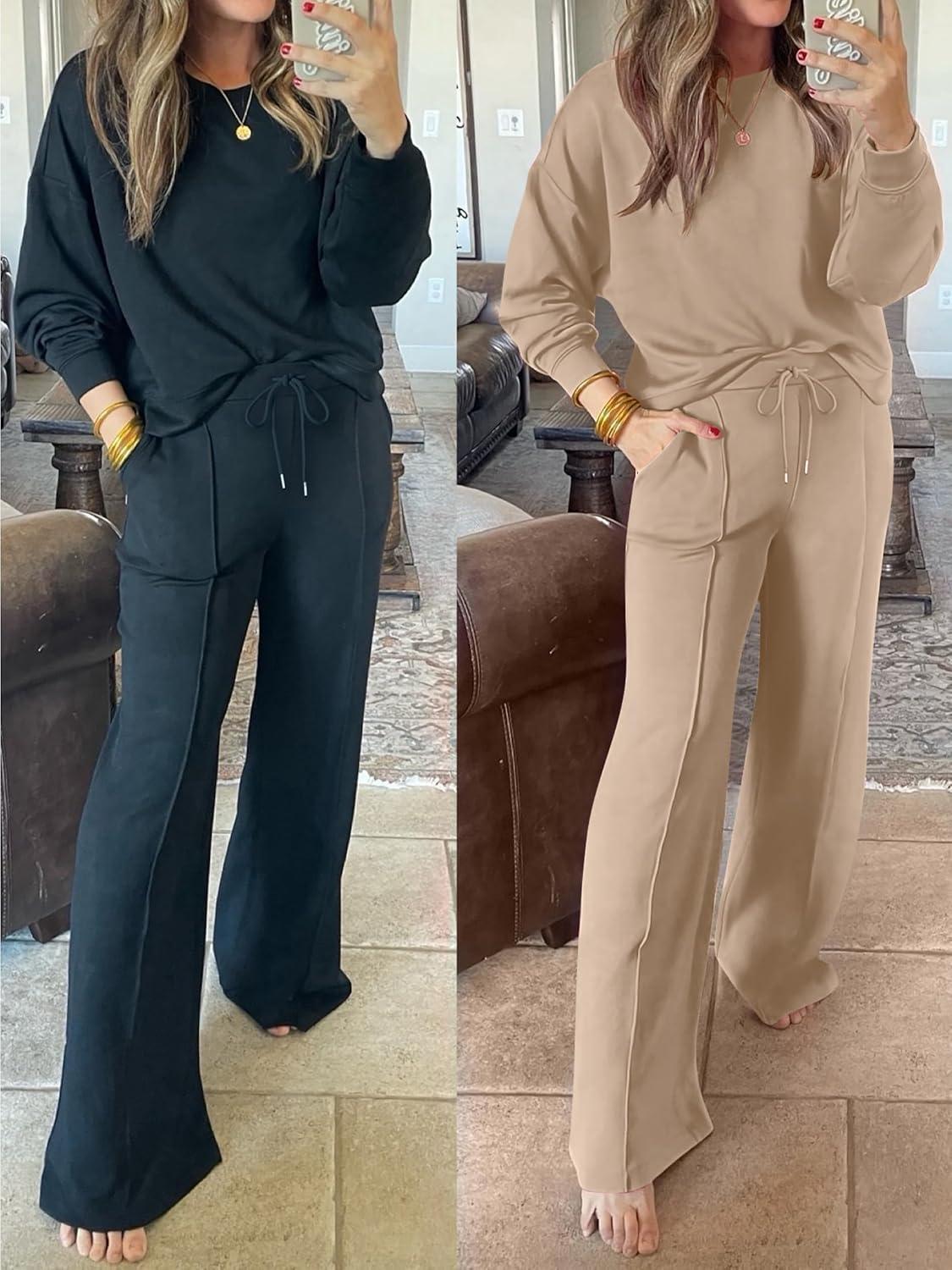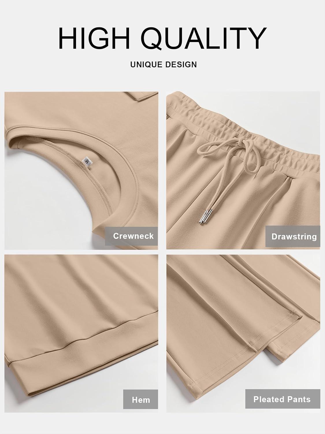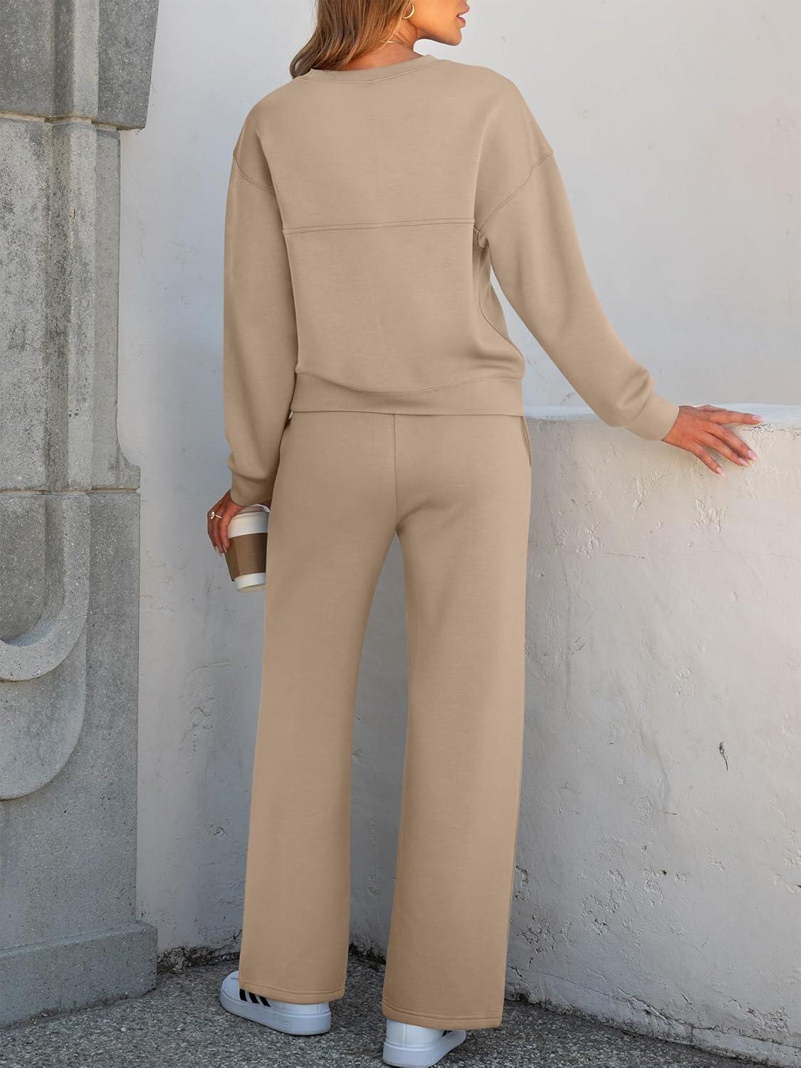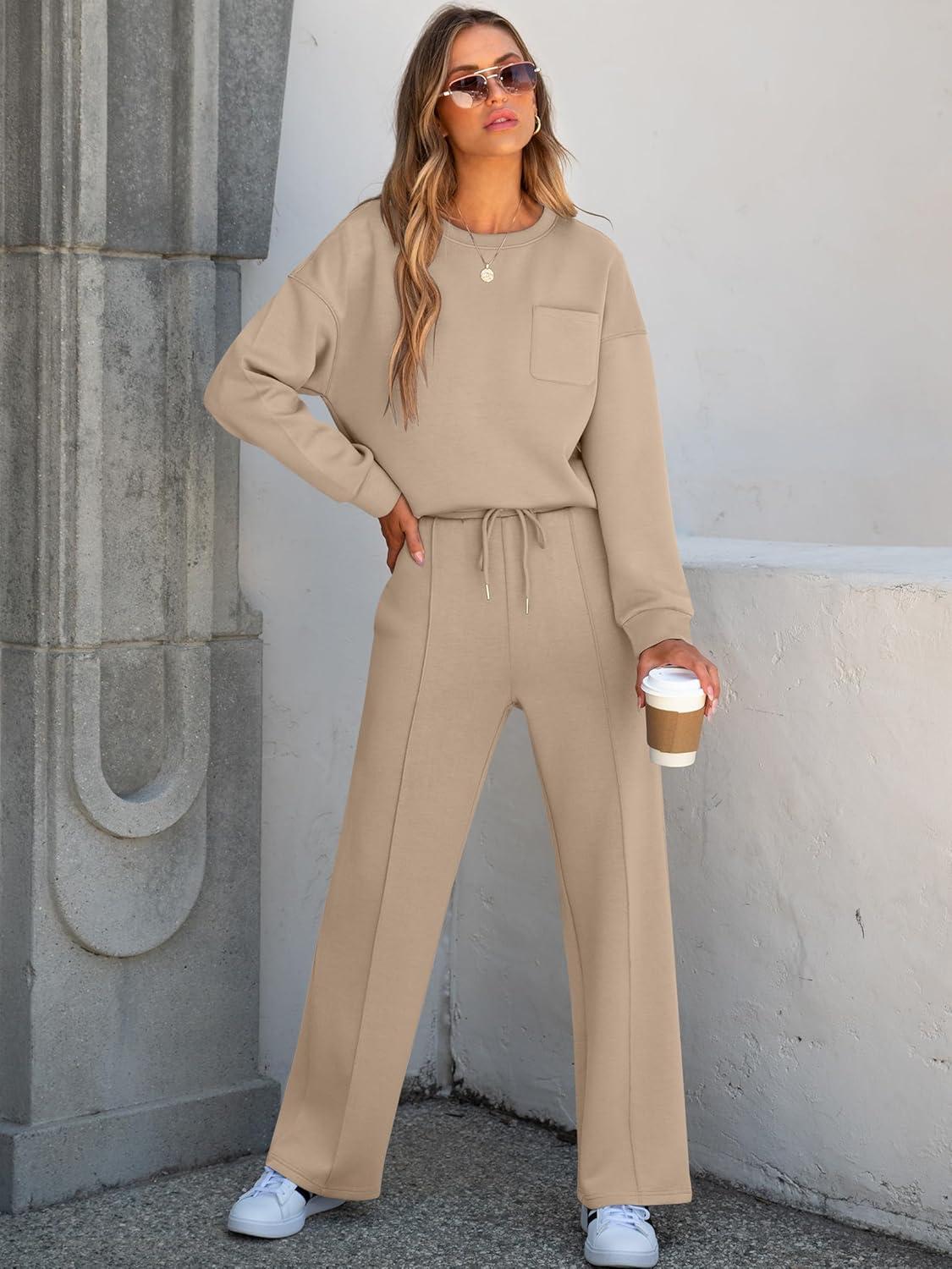 ANRABESS Women 2 Piece Set Long Sleeve Sweatsuit Sweatpants Tracksuit Sweat Casual Matching 2025 Travel Fall Trendy Outfits(Khaki)