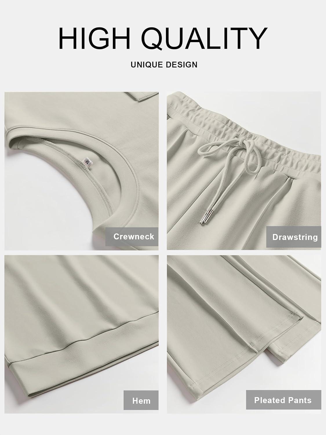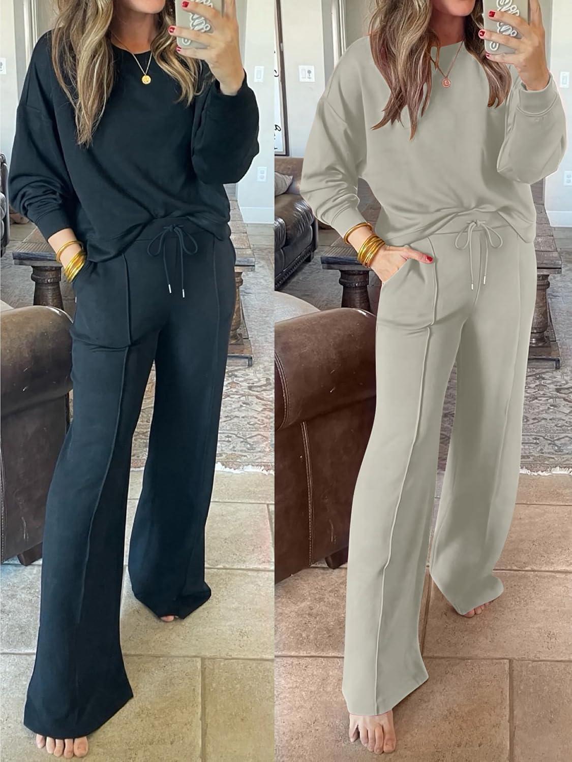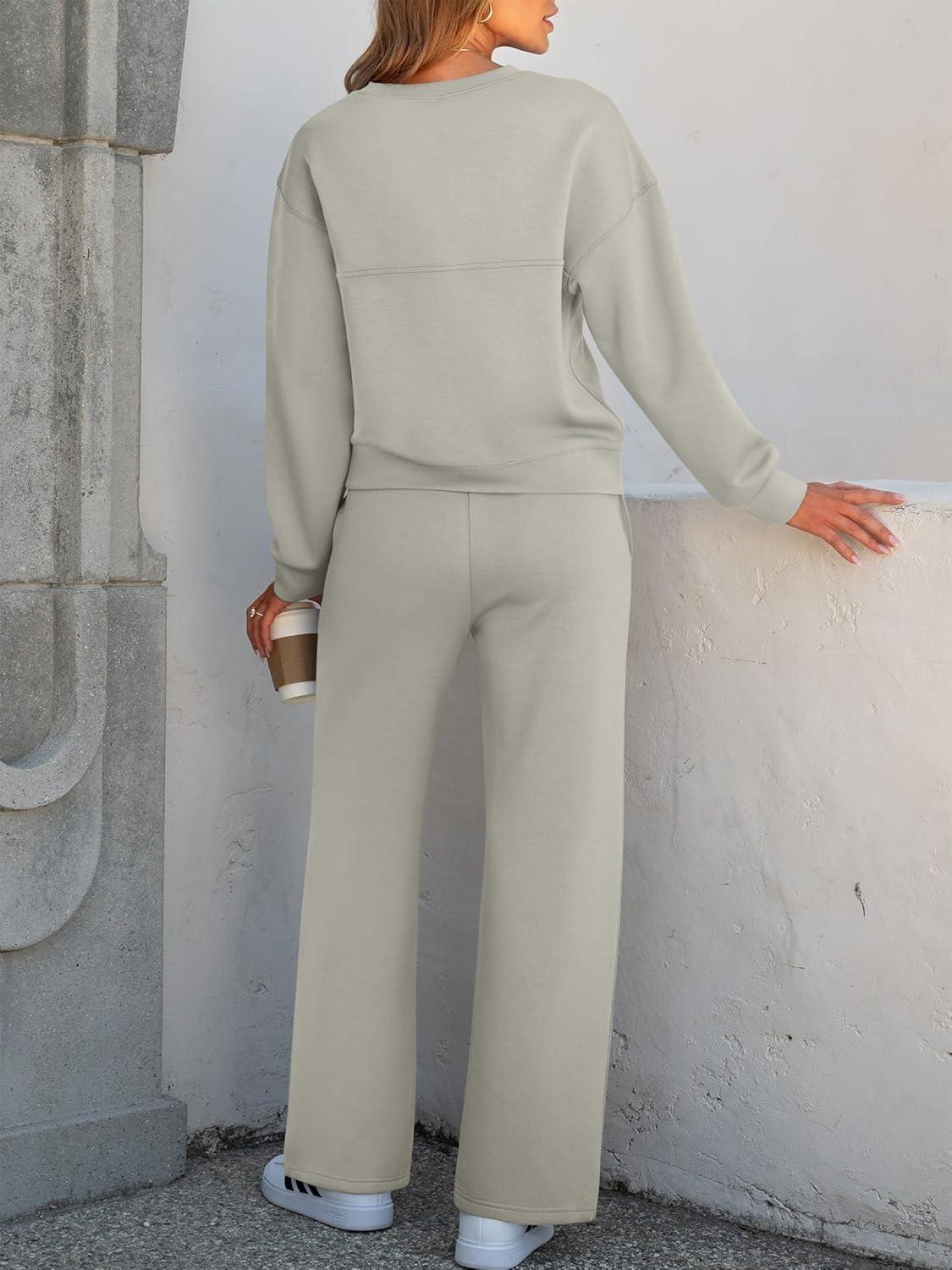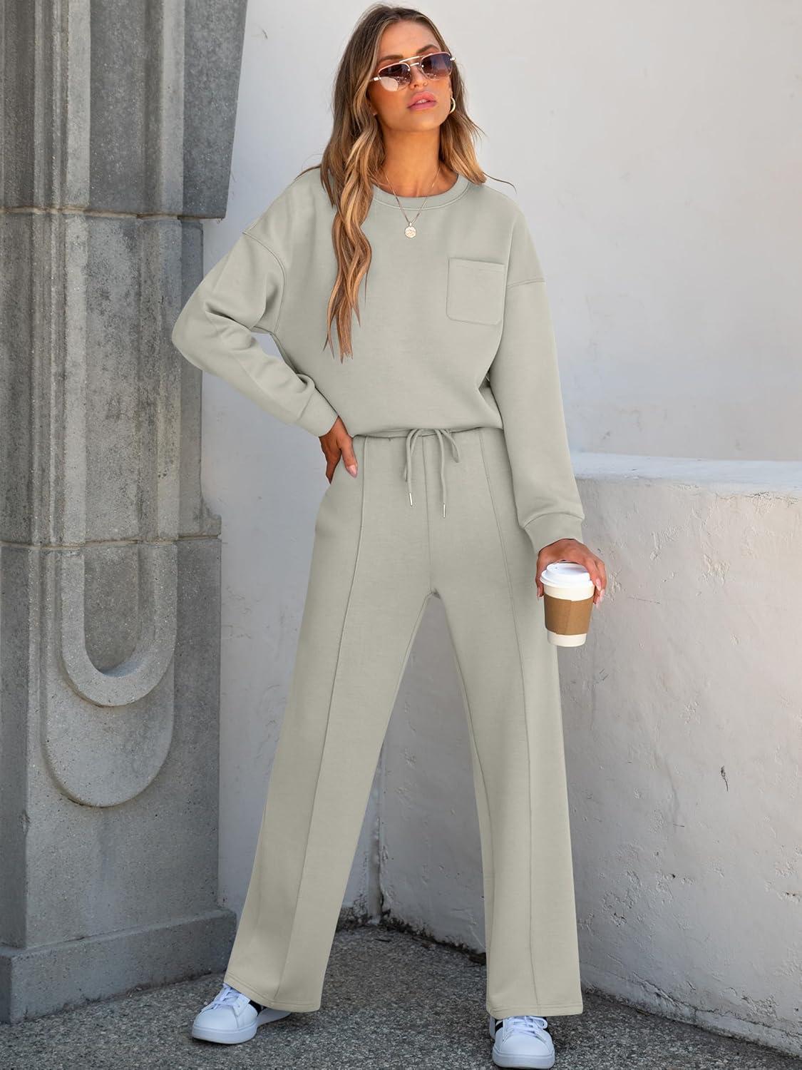 ANRABESS Women 2 Piece Set Long Sleeve Sweatsuit Sweatpants Tracksuit Sweat Casual Matching 2025 Travel Fall Trendy Outfits(Light Khaki)