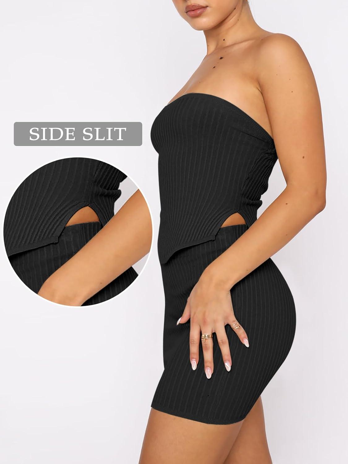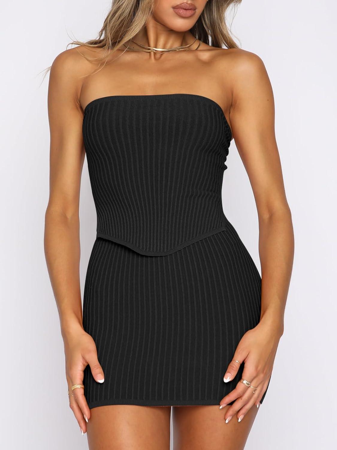 ANRABESS Women 2 Piece Skirt Sets Summer Strapless Crop Top Matching Bodycon Sexy Going Out Mini Club Dress Outfit Clothes(Black)