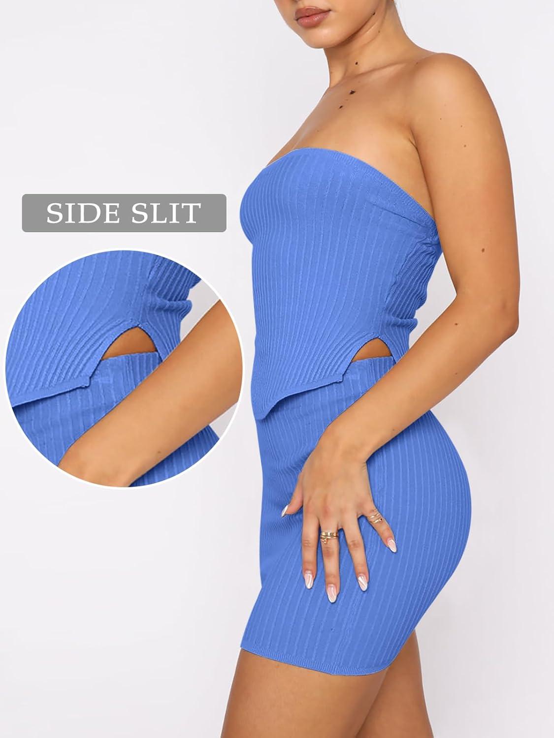 ANRABESS Women 2 Piece Skirt Sets Summer Strapless Crop Top Matching Bodycon Sexy Going Out Mini Club Dress Outfit Clothes(Blue)