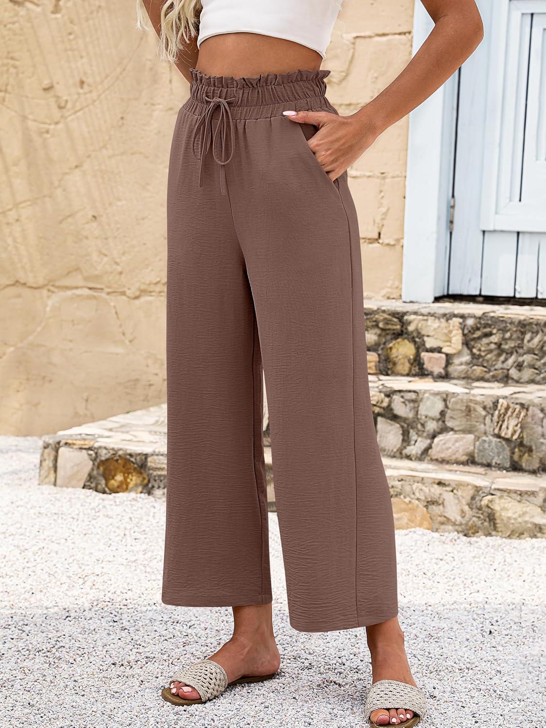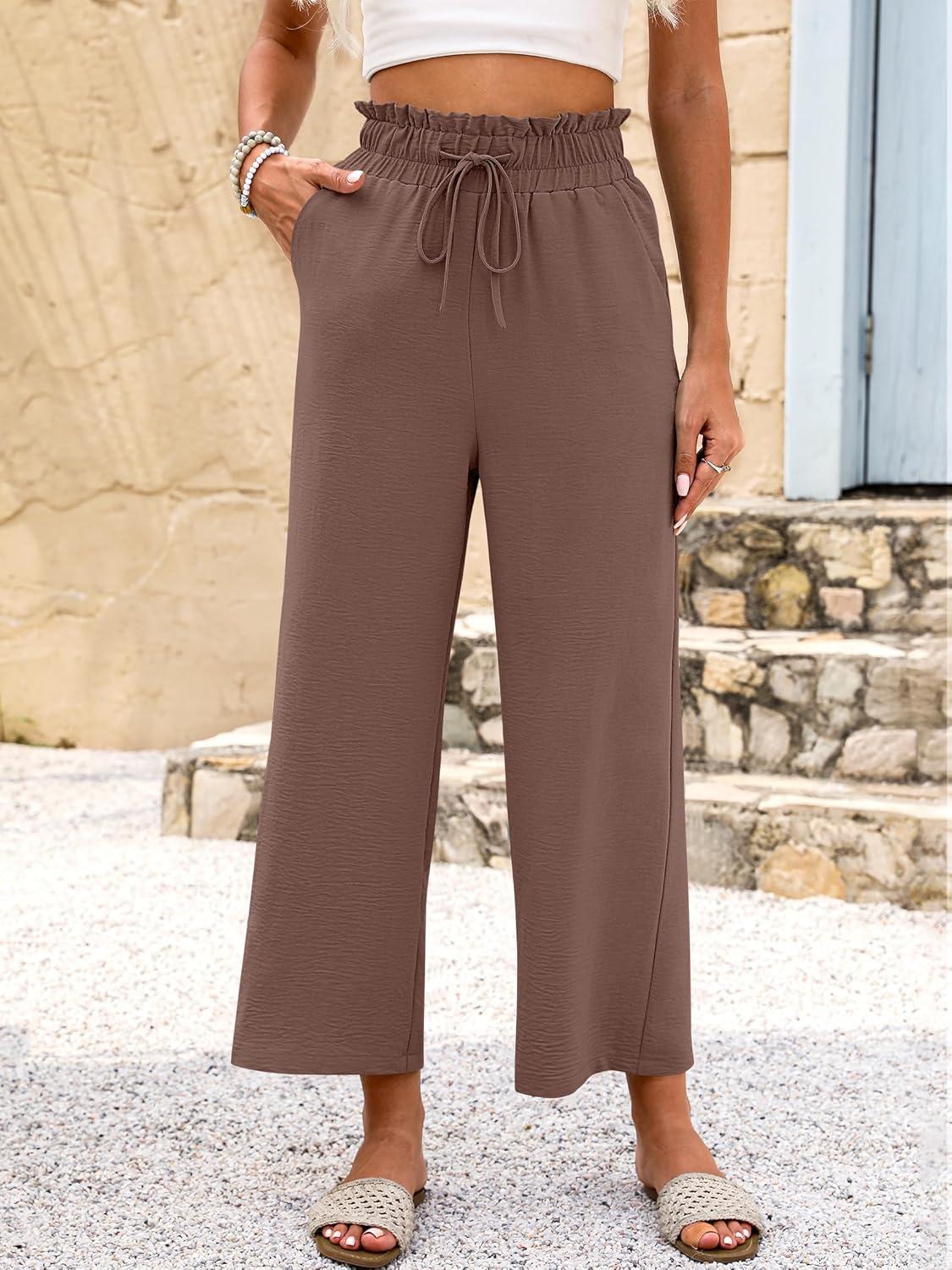 ANRABESS Women 2025 Summer Casual Flowy Loose High Waist Boho Wide Leg Cropped Palazzo Lounge Beach Vacation Pants Trousers(Coffee)