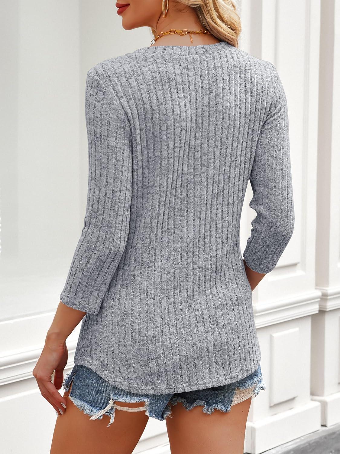 ANRABESS Women 3/4 Sleeve Length Shirts 2025 Fall Lightweight Sweaters Loose Fit Ribbed Knit Casual Soft Layering Tops(Grey)