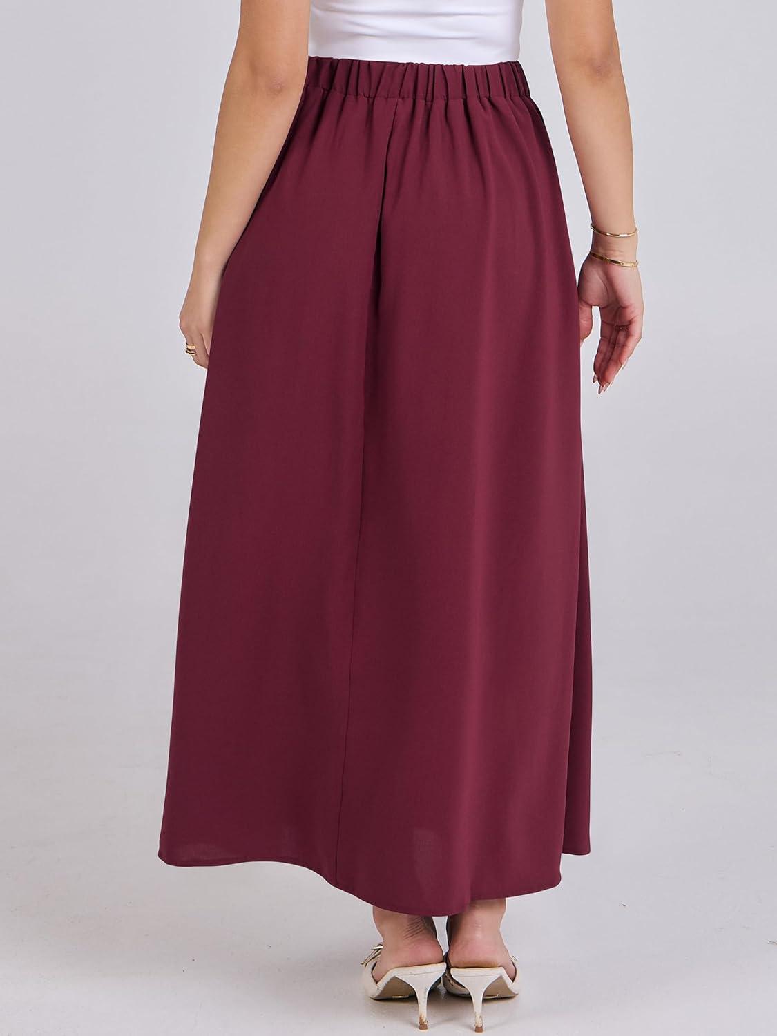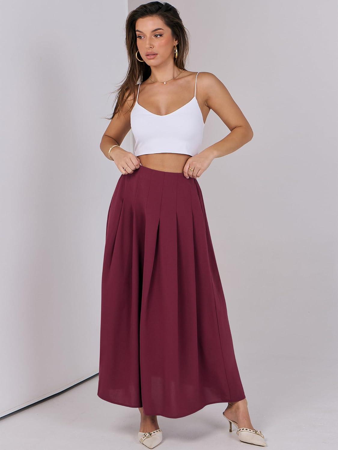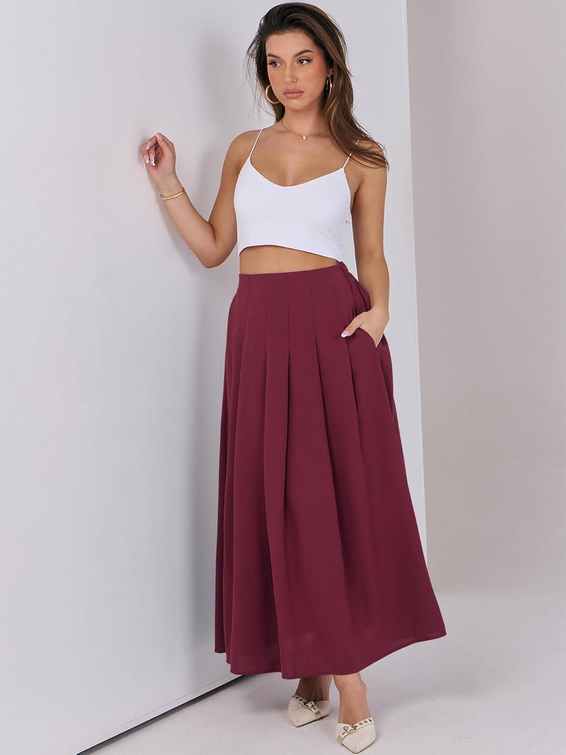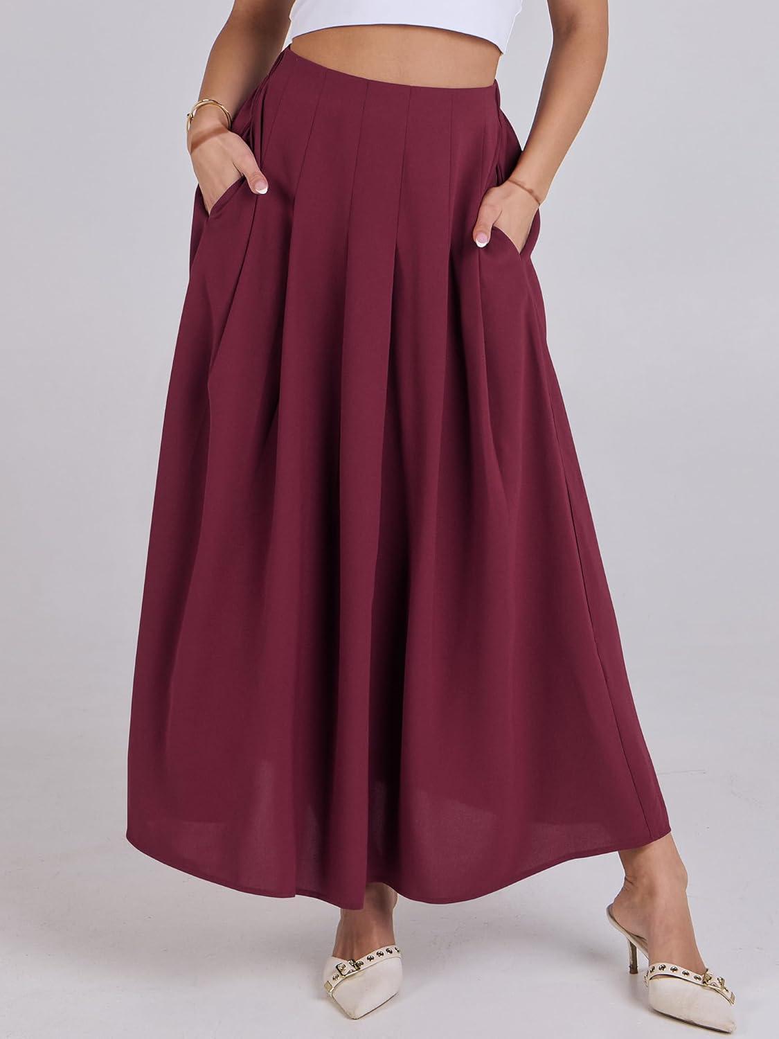 ANRABESS Women A-Line Pleated High Waist Maxi Skirt Full Ankle Length Flowy Swing Elegant Dressy Casual Work Long Skirts(Red)