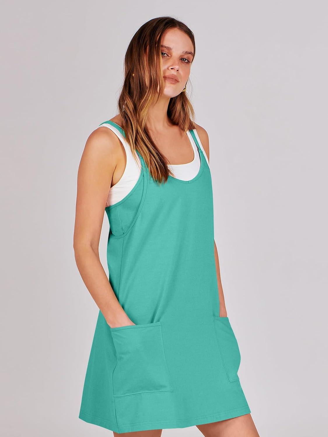 ANRABESS Women Athletic Dress Summer Tennis Workout Active Sports Mini Romper Dress Built in Shorts Travel Vacation Clothes(Cyan)