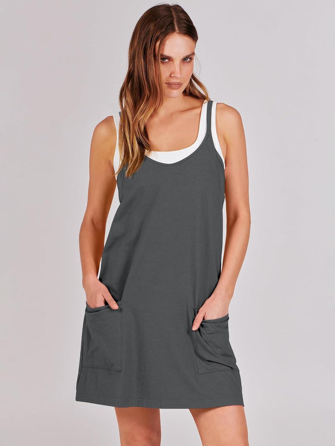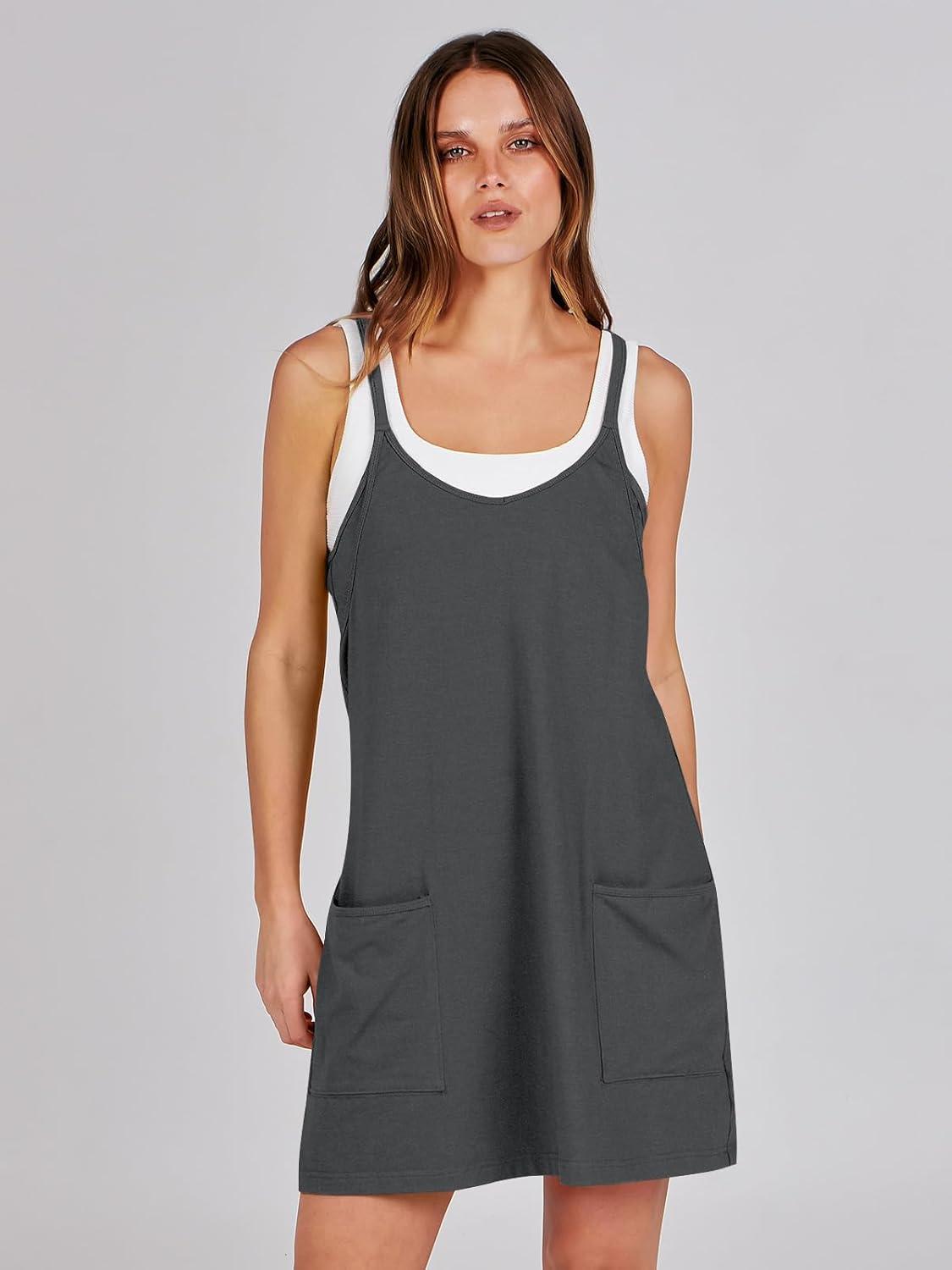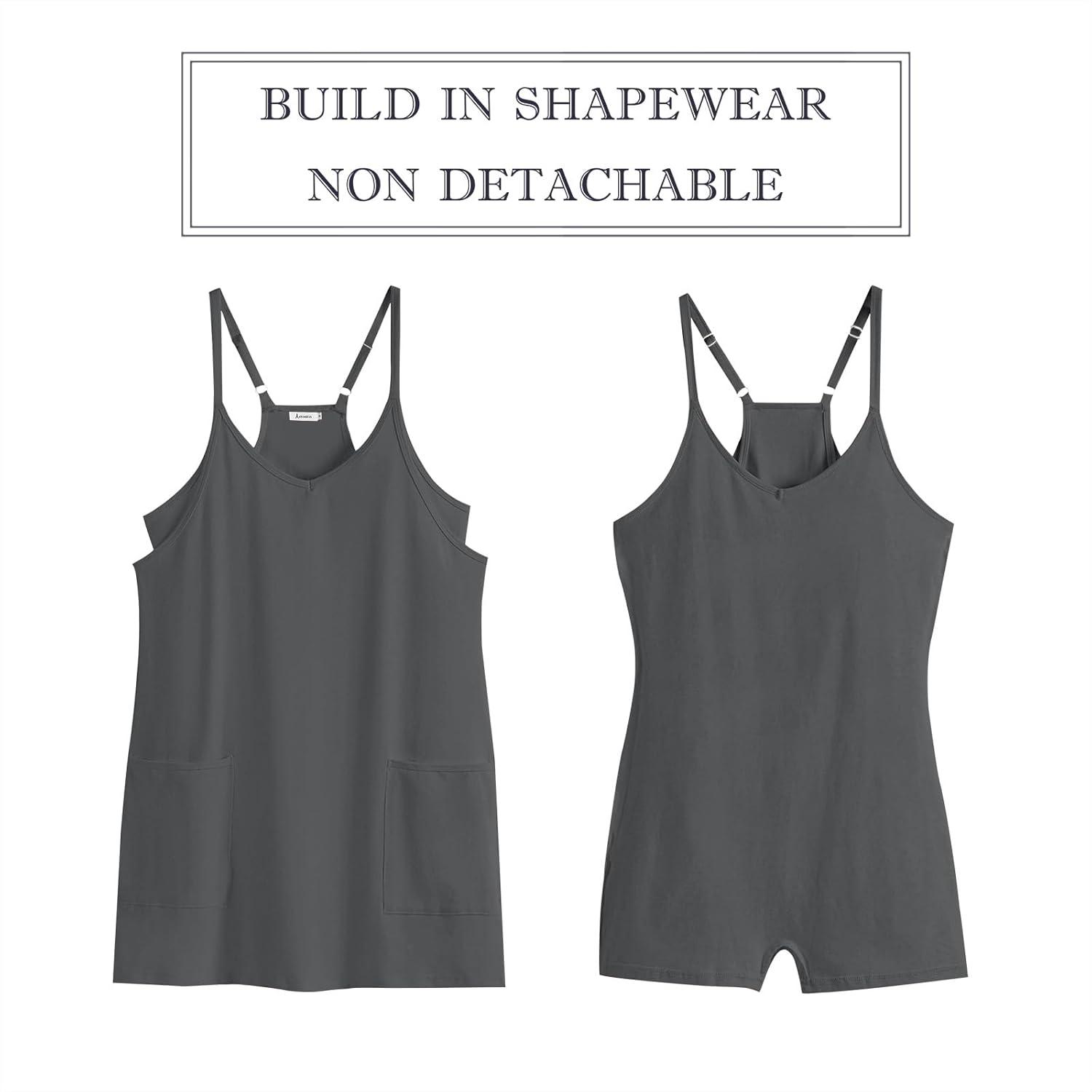 ANRABESS Women Athletic Dress Summer Tennis Workout Active Sports Mini Romper Dress Built in Shorts Travel Vacation Clothes(Gray)