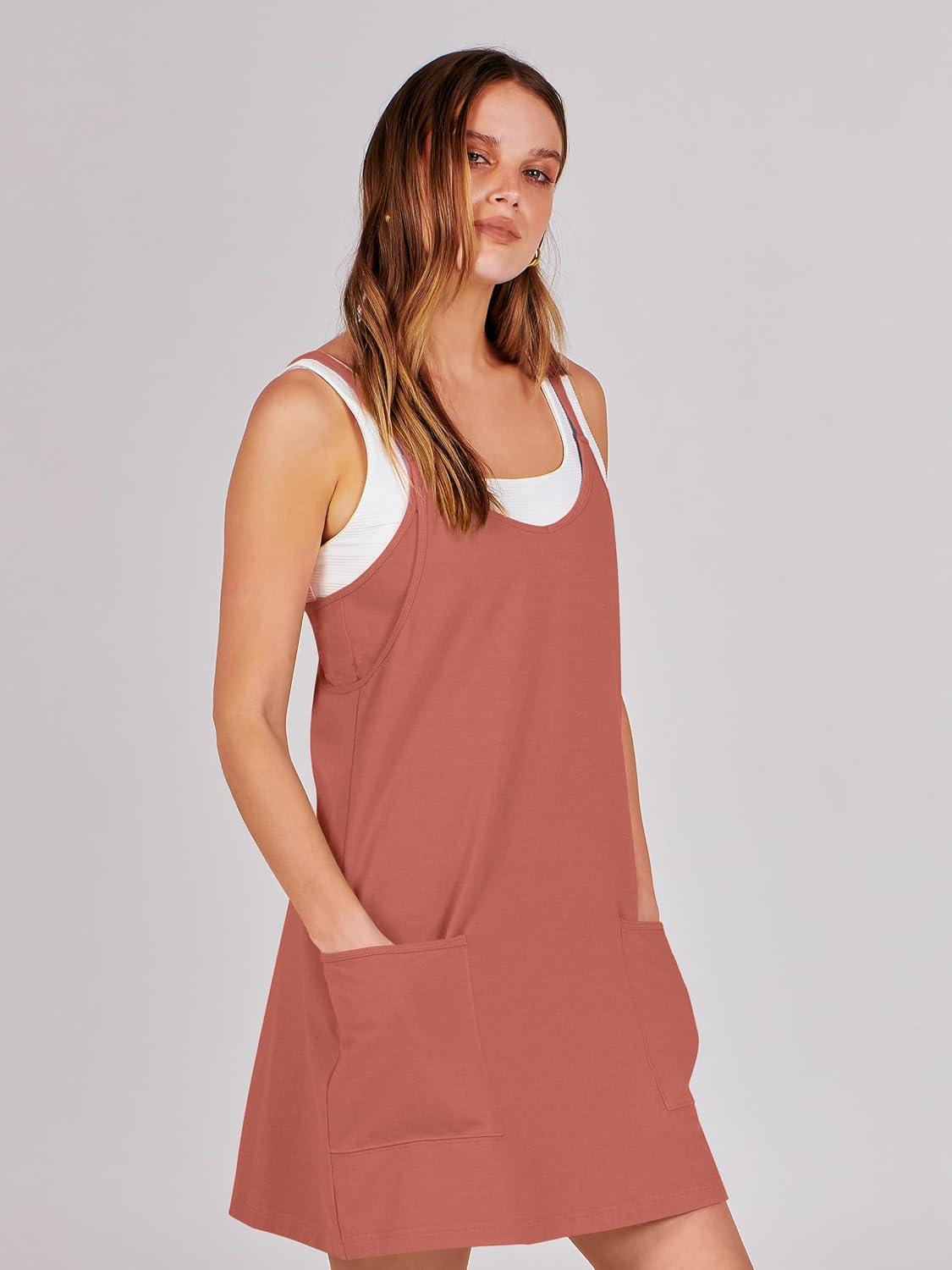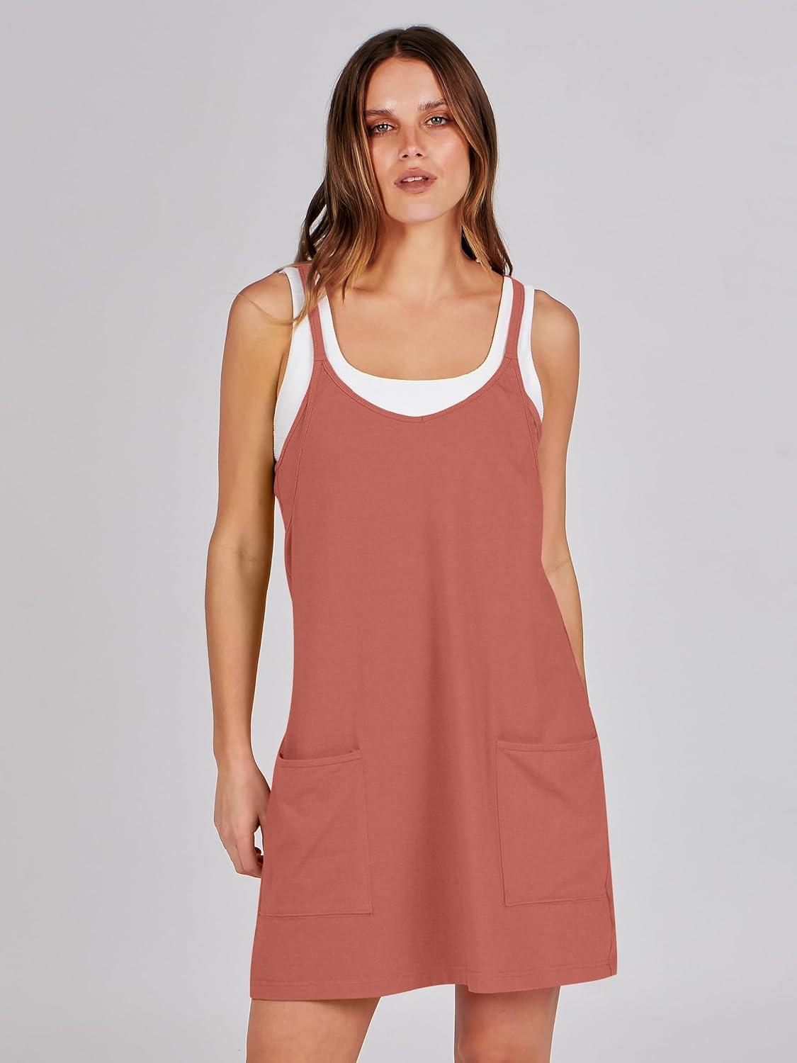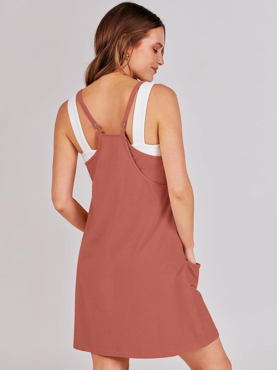 ANRABESS Women Athletic Dress Summer Tennis Workout Active Sports Mini Romper Dress Built in Shorts Travel Vacation Clothes(Rust)