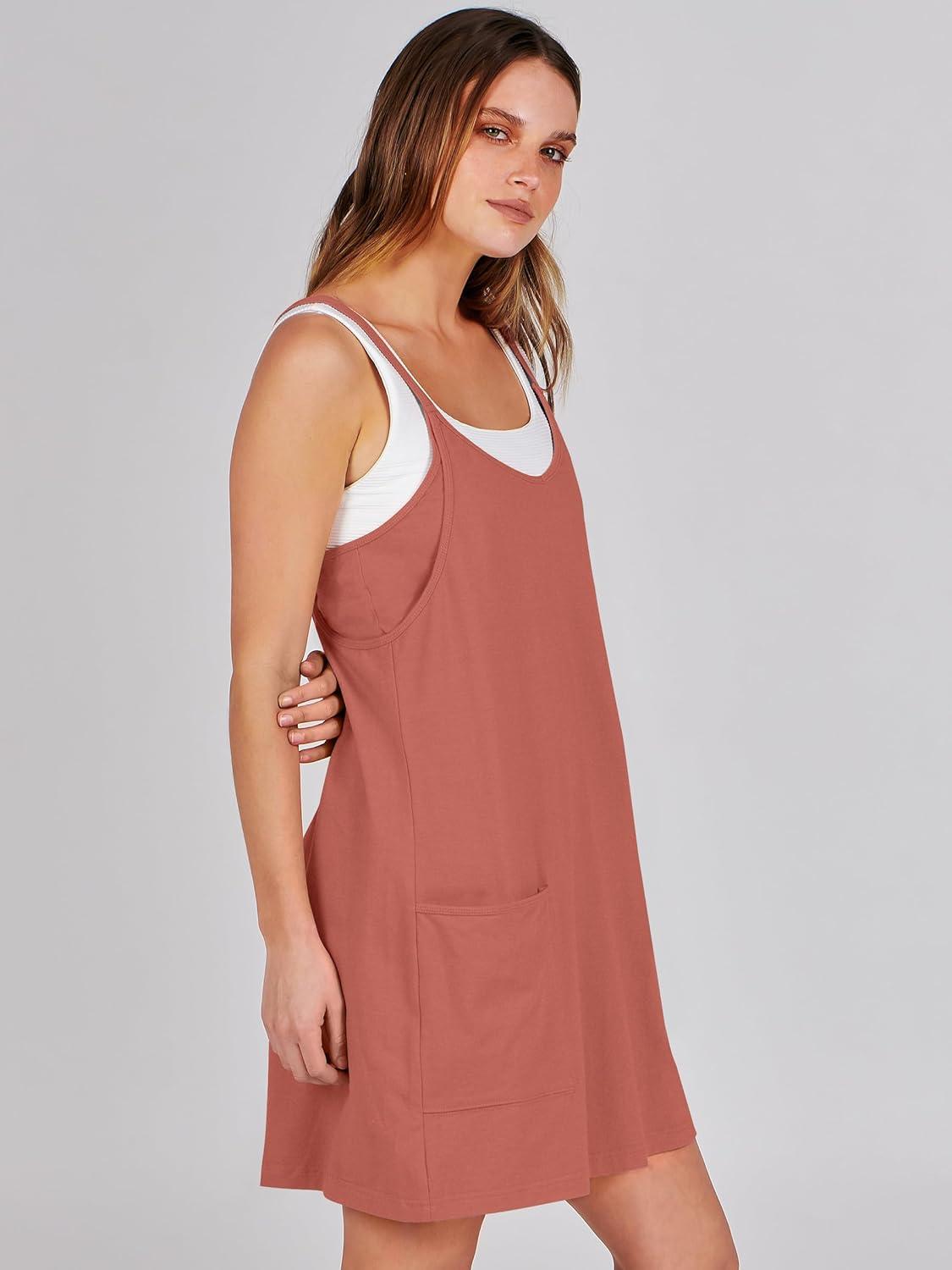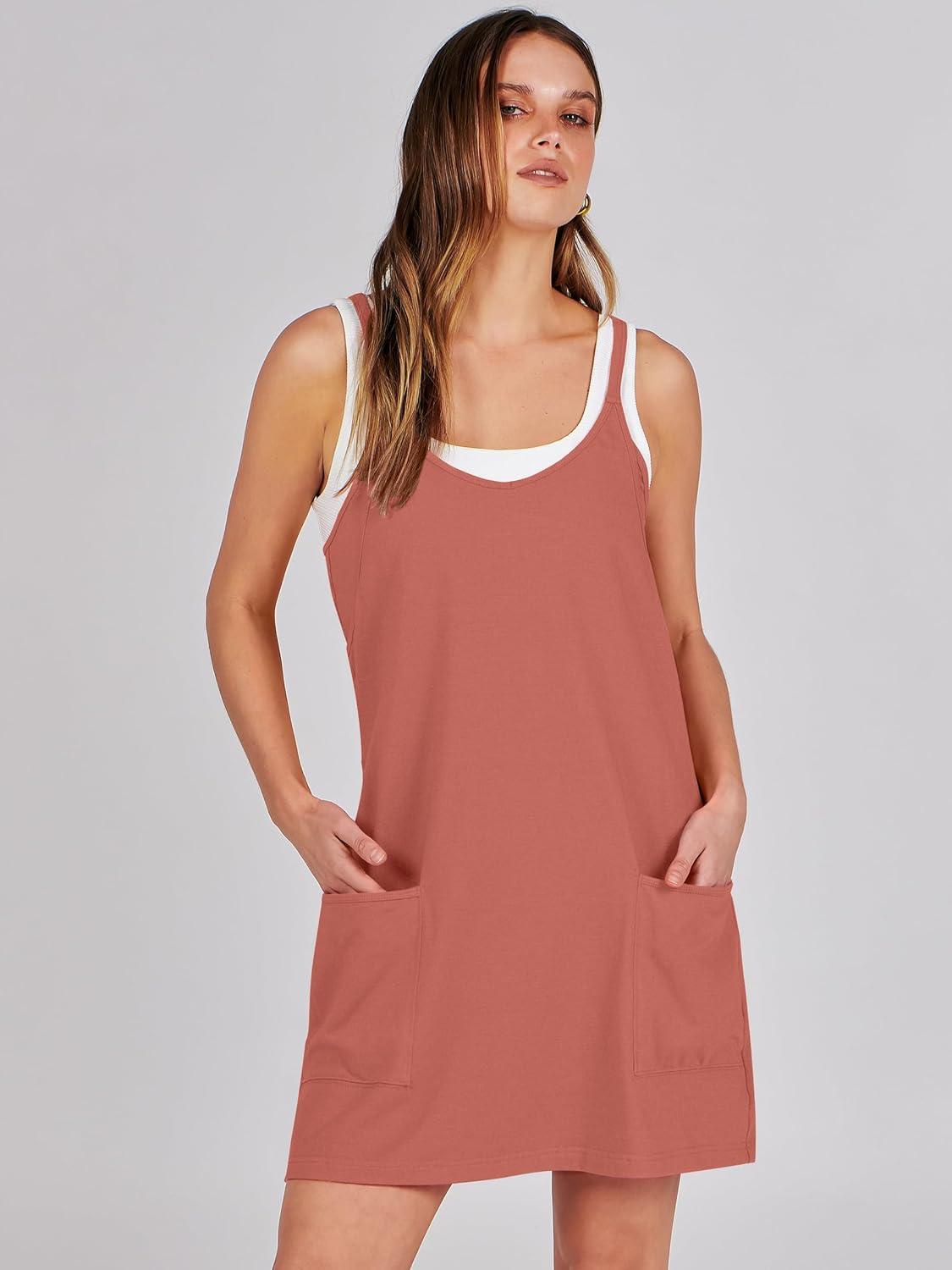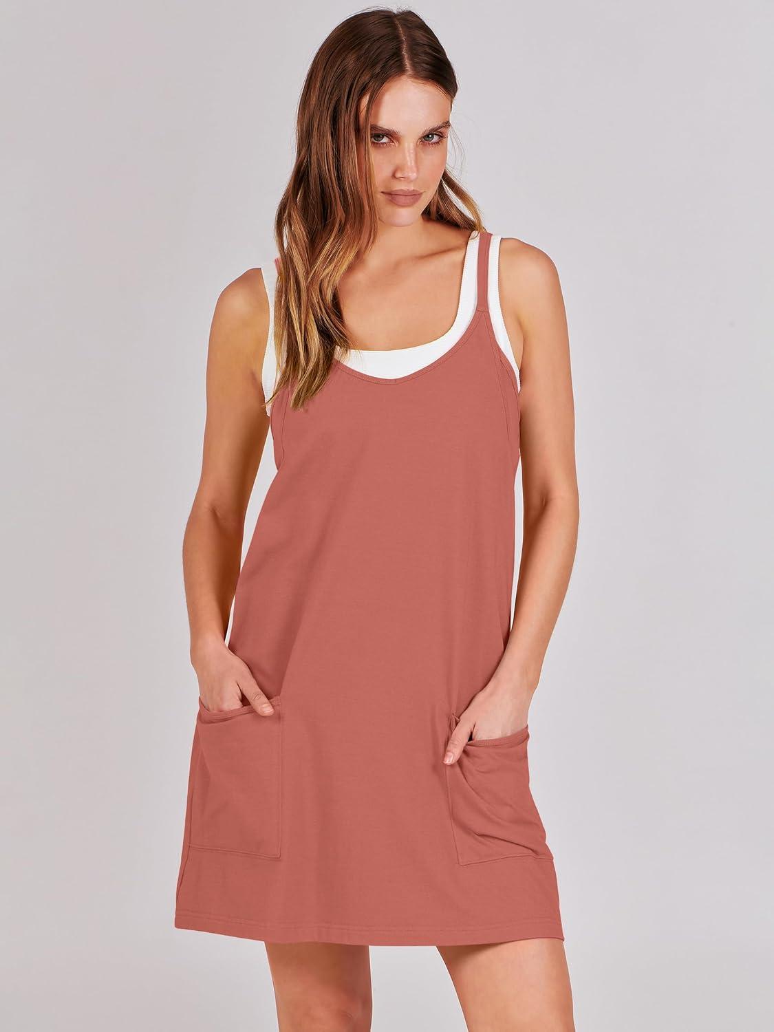 ANRABESS Women Athletic Dress Summer Tennis Workout Active Sports Mini Romper Dress Built in Shorts Travel Vacation Clothes(Rust)