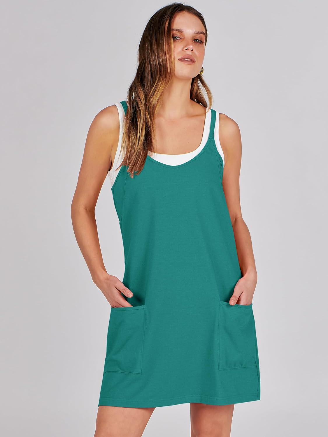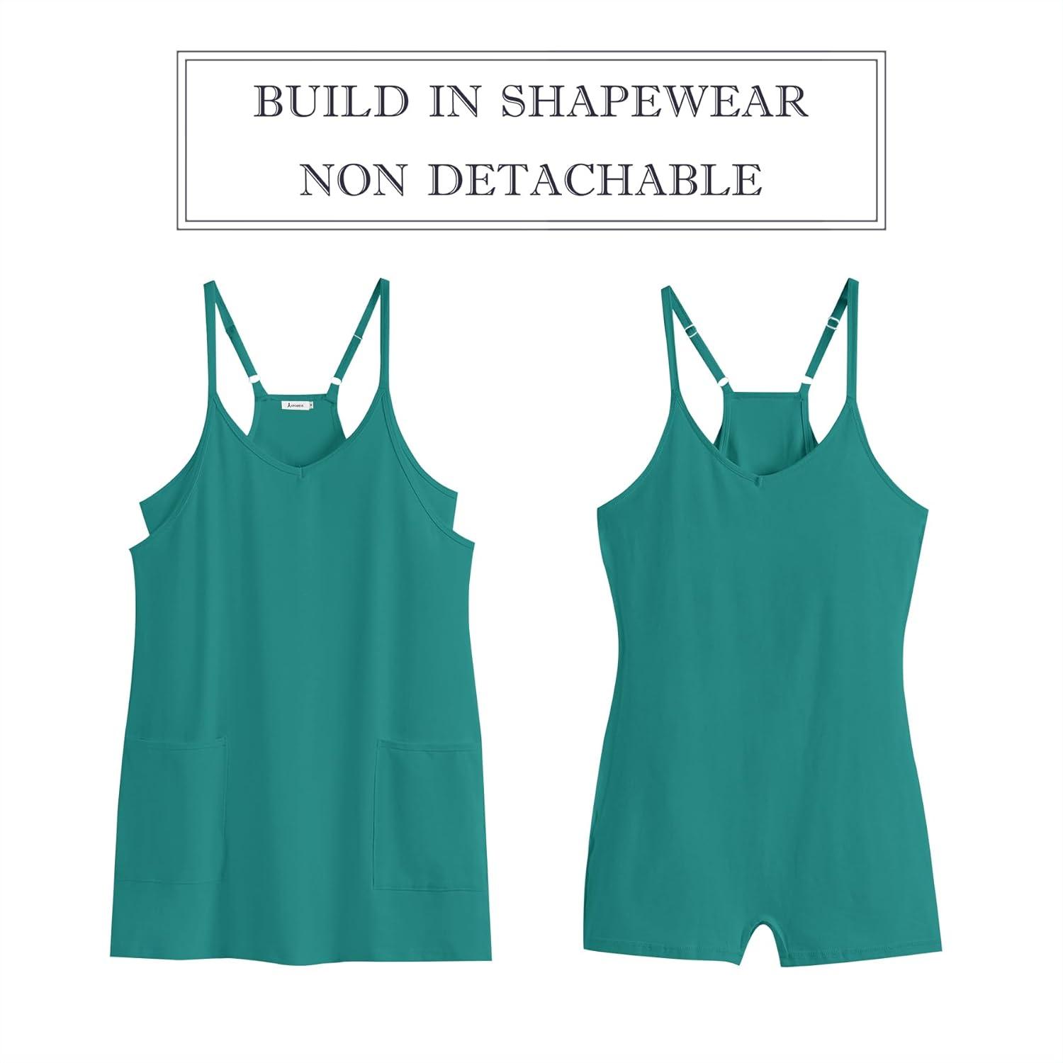 ANRABESS Women Athletic Dress Summer Tennis Workout Active Sports Mini Romper Dress Built in Shorts Travel Vacation Clothes(Teal)