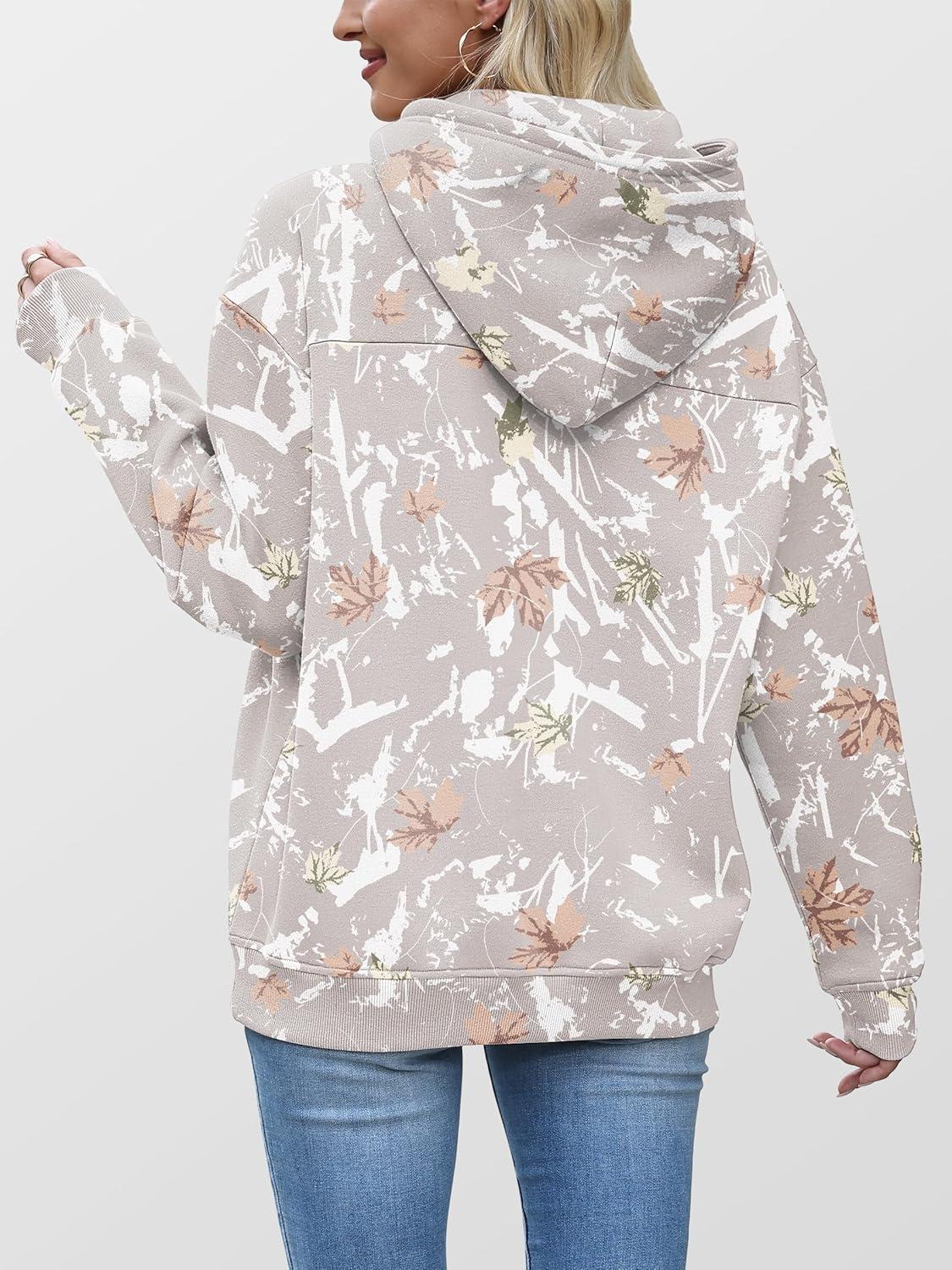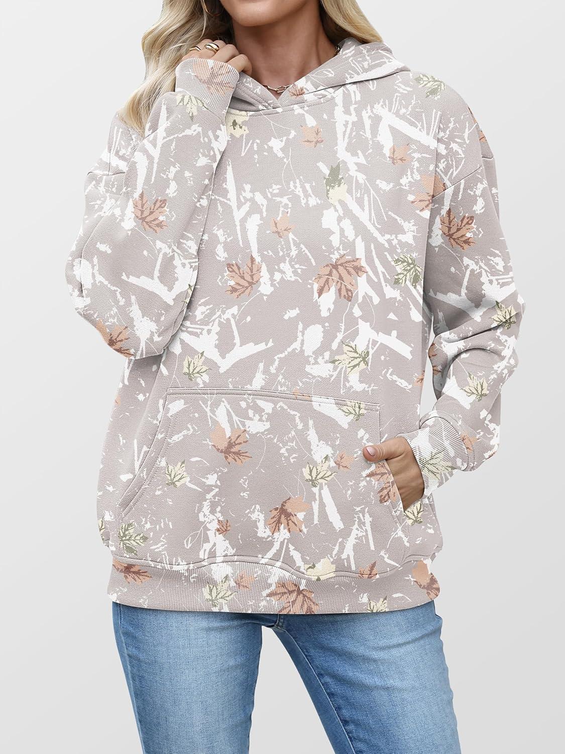 ANRABESS Women Camo Hoodies Long Sleeve Maple Leaf Print Fleece Oversized Casual Pullover Sweatshirt 2025 Fall Preppy Clothes(Khaki)