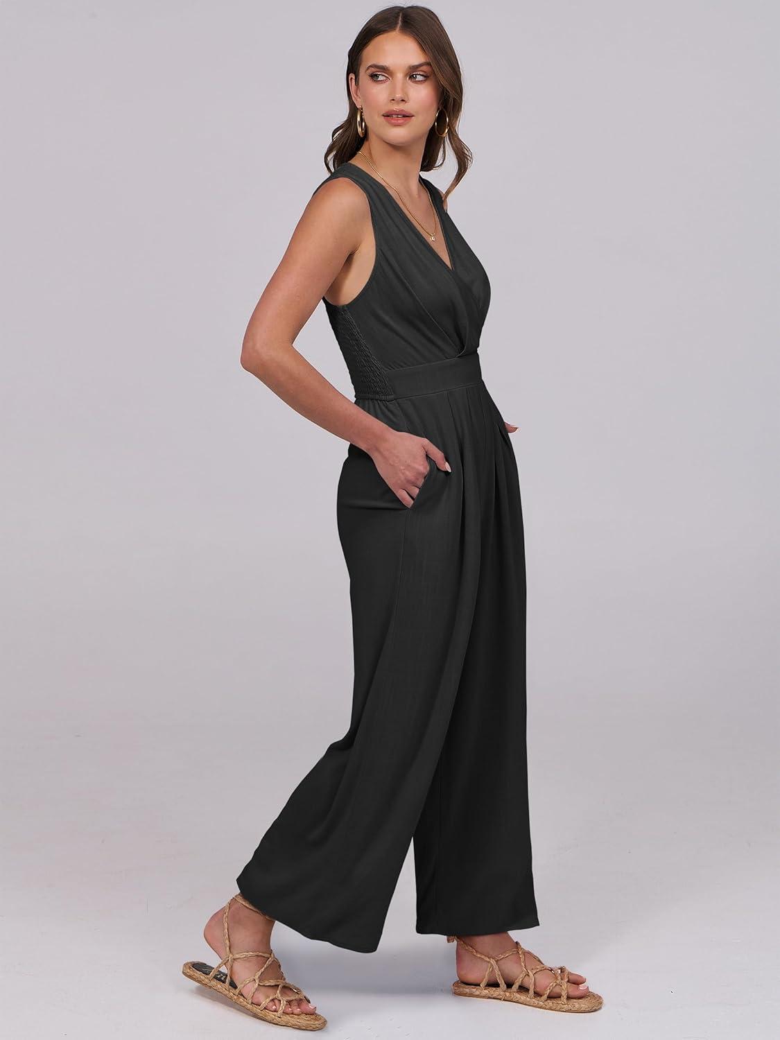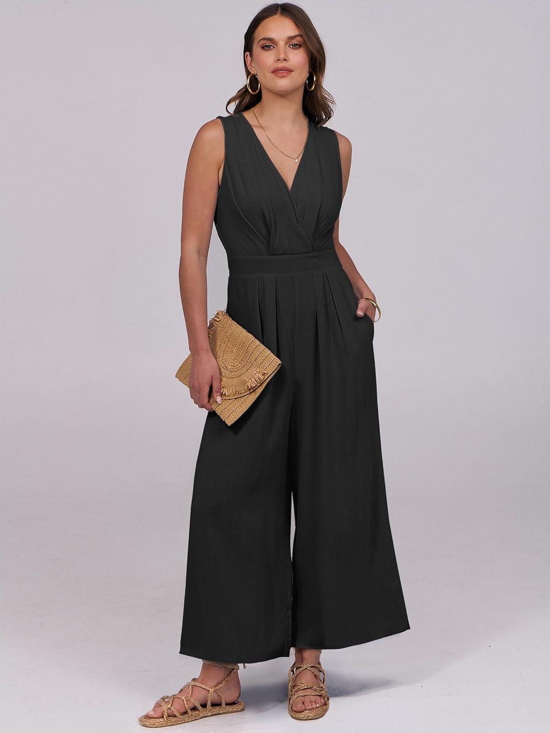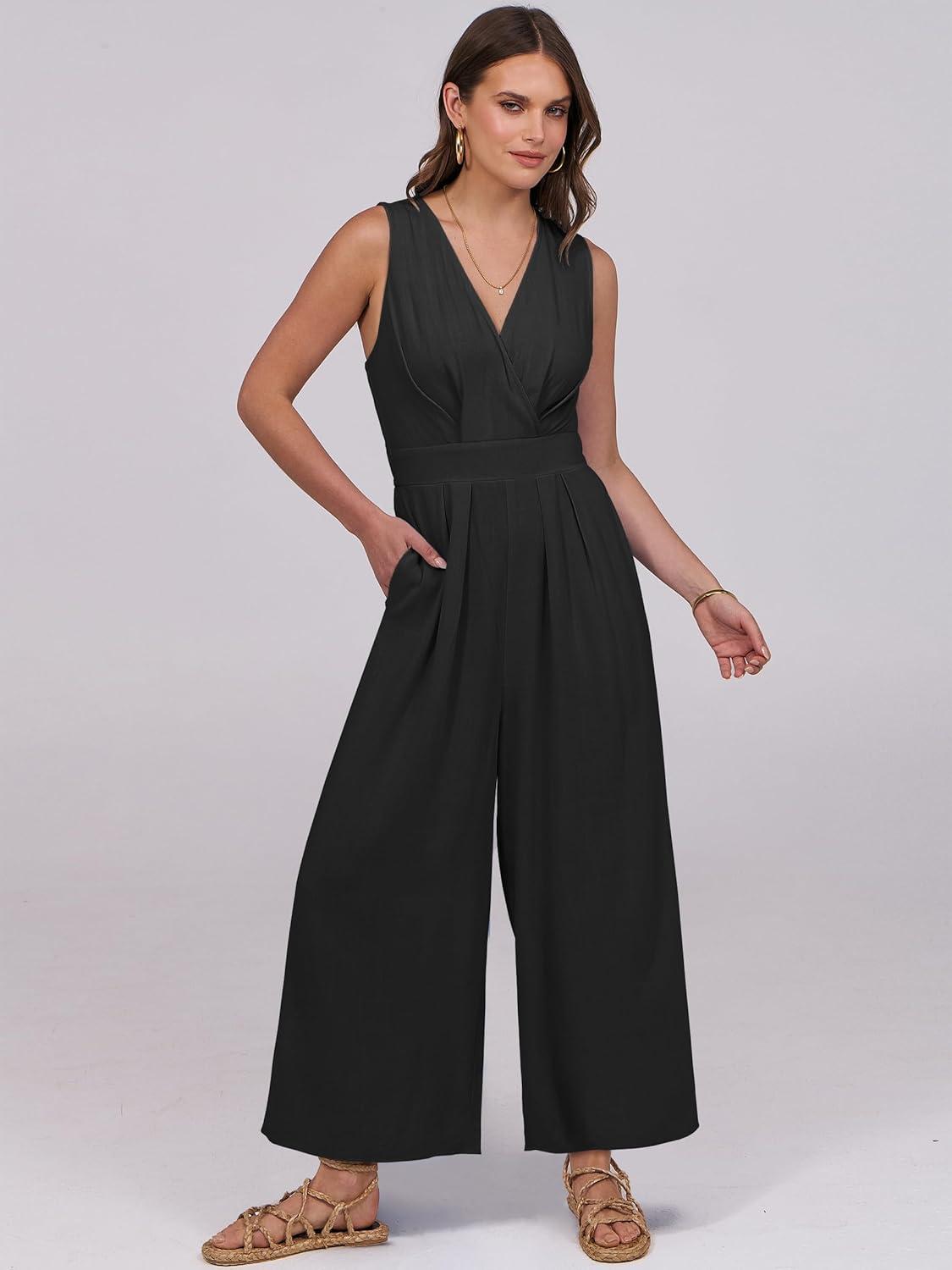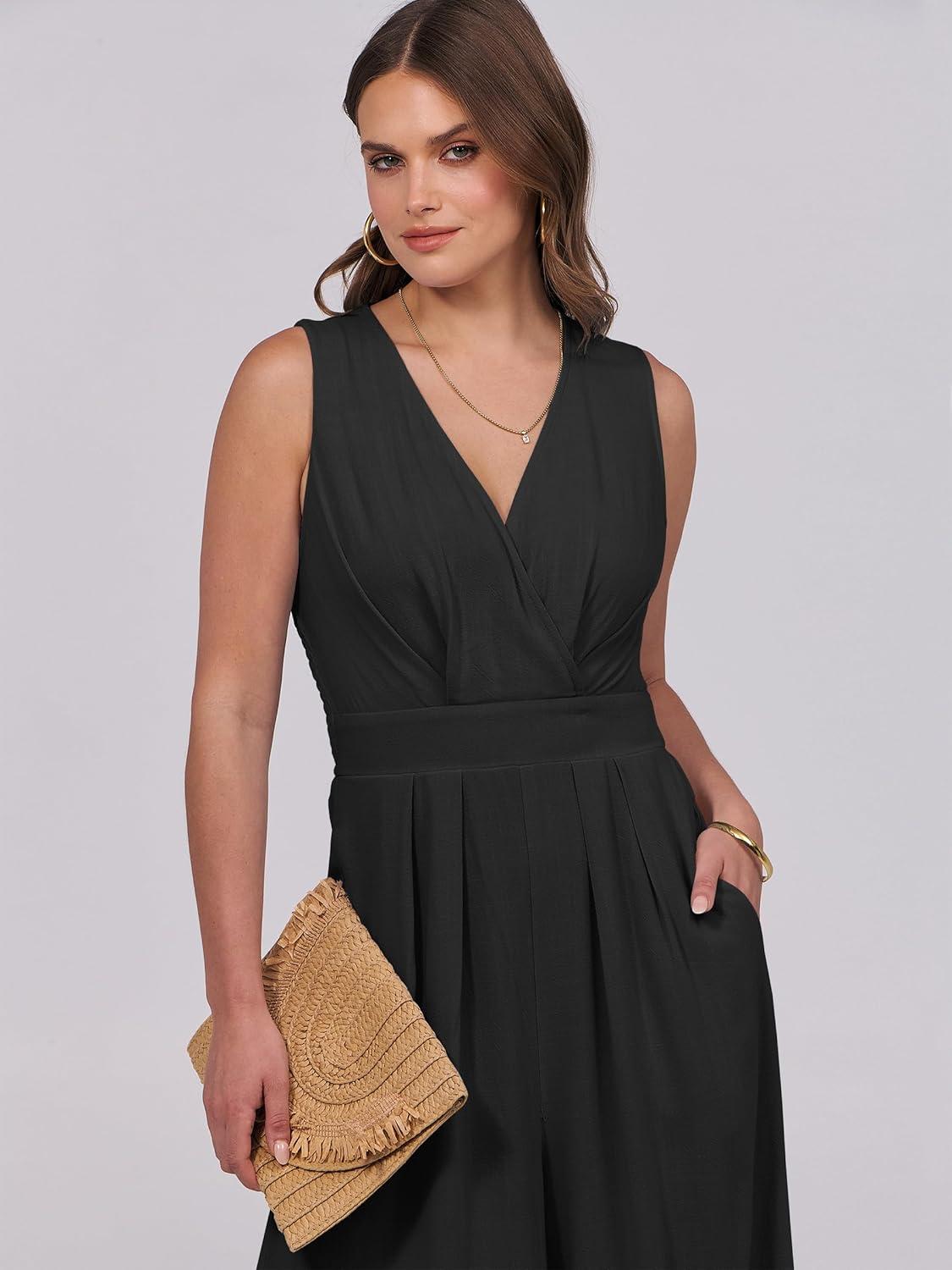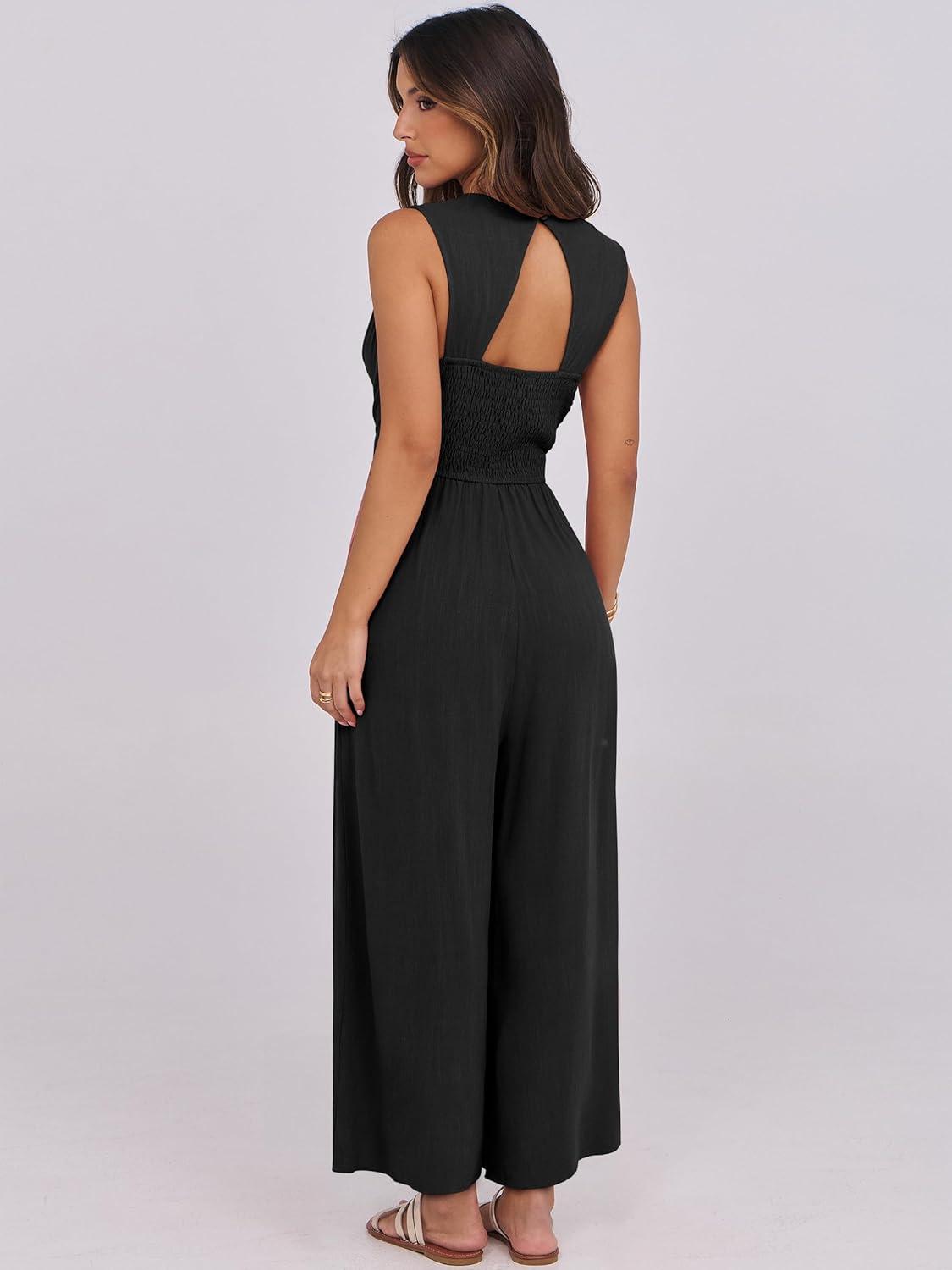 ANRABESS Women Jumpsuits Sleeveless V Neck Elegant Dressy Casual Backless One Piece Pants Romper 2025 Summer Outfits(Black)