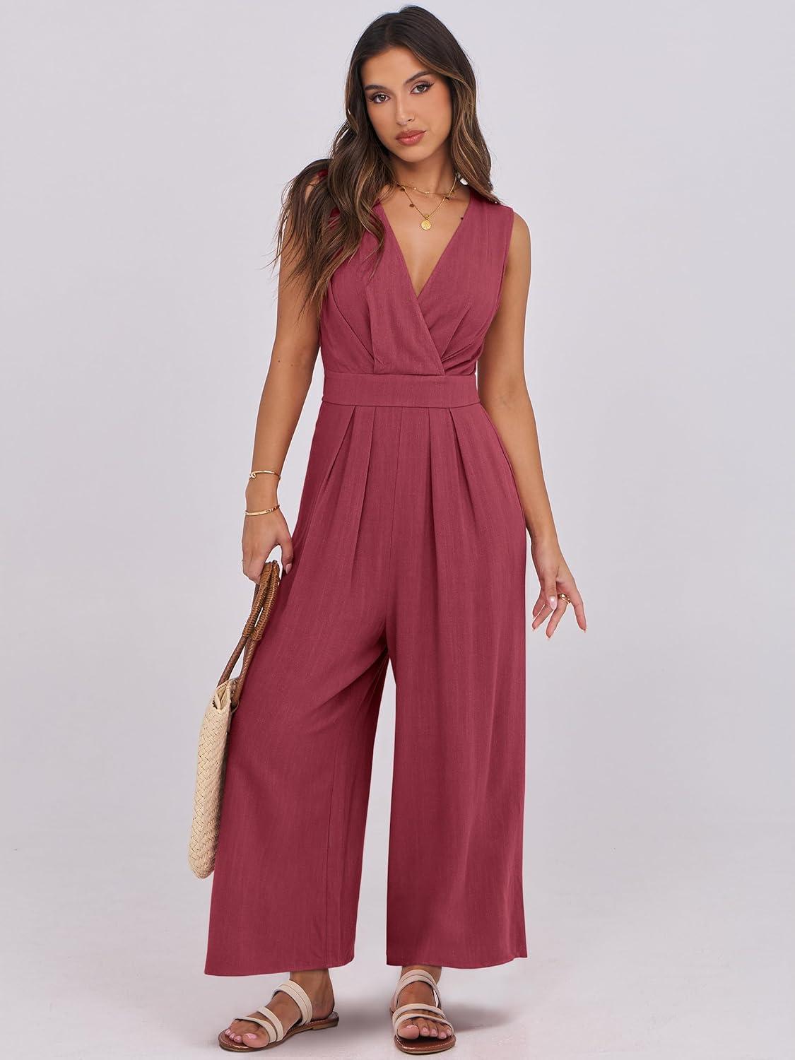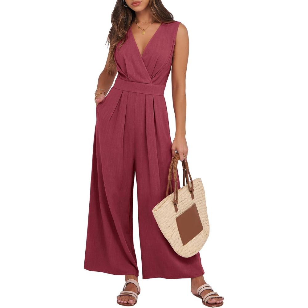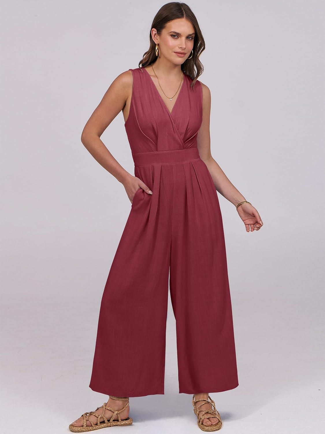 ANRABESS Women Jumpsuits Sleeveless V Neck Elegant Dressy Casual Backless One Piece Pants Romper 2025 Summer Outfits(Burgundy)