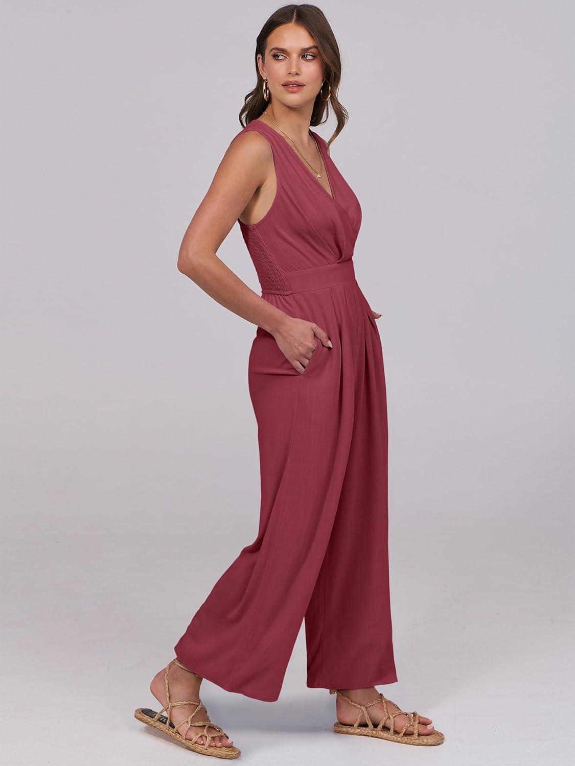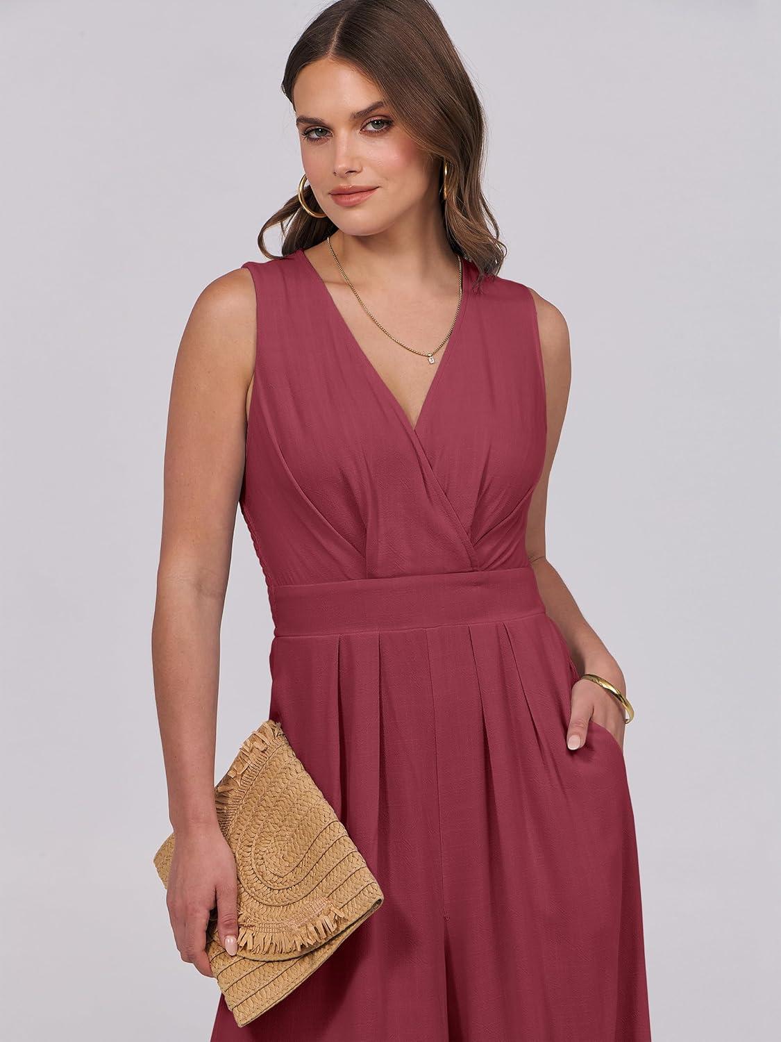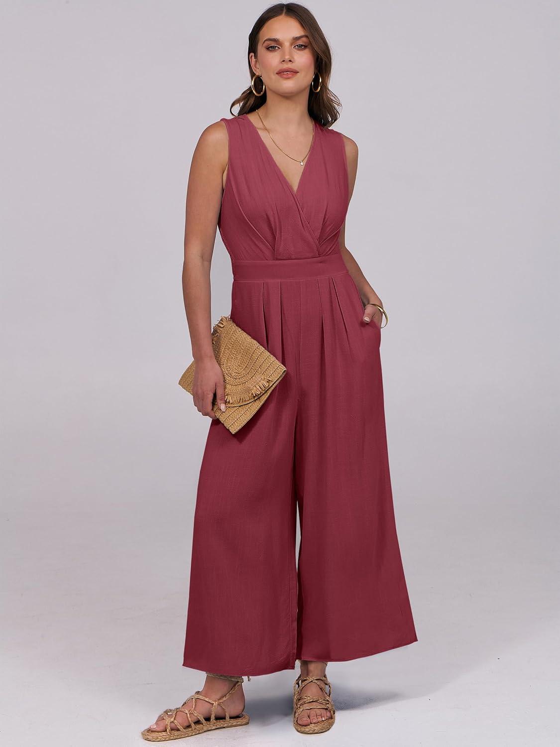 ANRABESS Women Jumpsuits Sleeveless V Neck Elegant Dressy Casual Backless One Piece Pants Romper 2025 Summer Outfits(Burgundy)