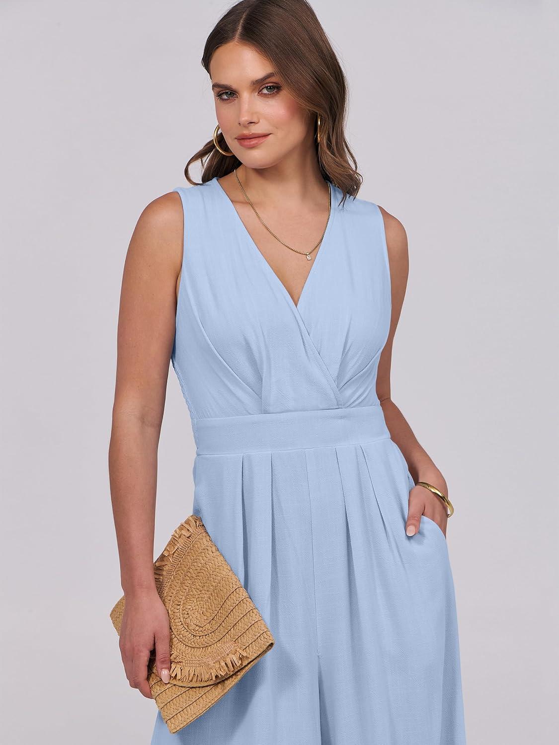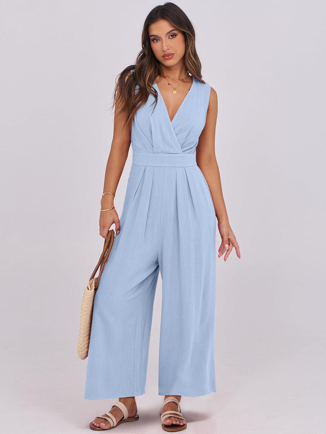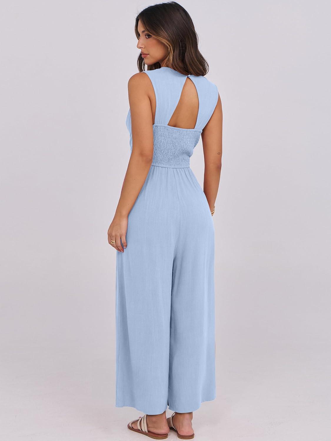 ANRABESS Women Jumpsuits Sleeveless V Neck Elegant Dressy Casual Backless One Piece Pants Romper 2025 Summer Outfits(Sky)