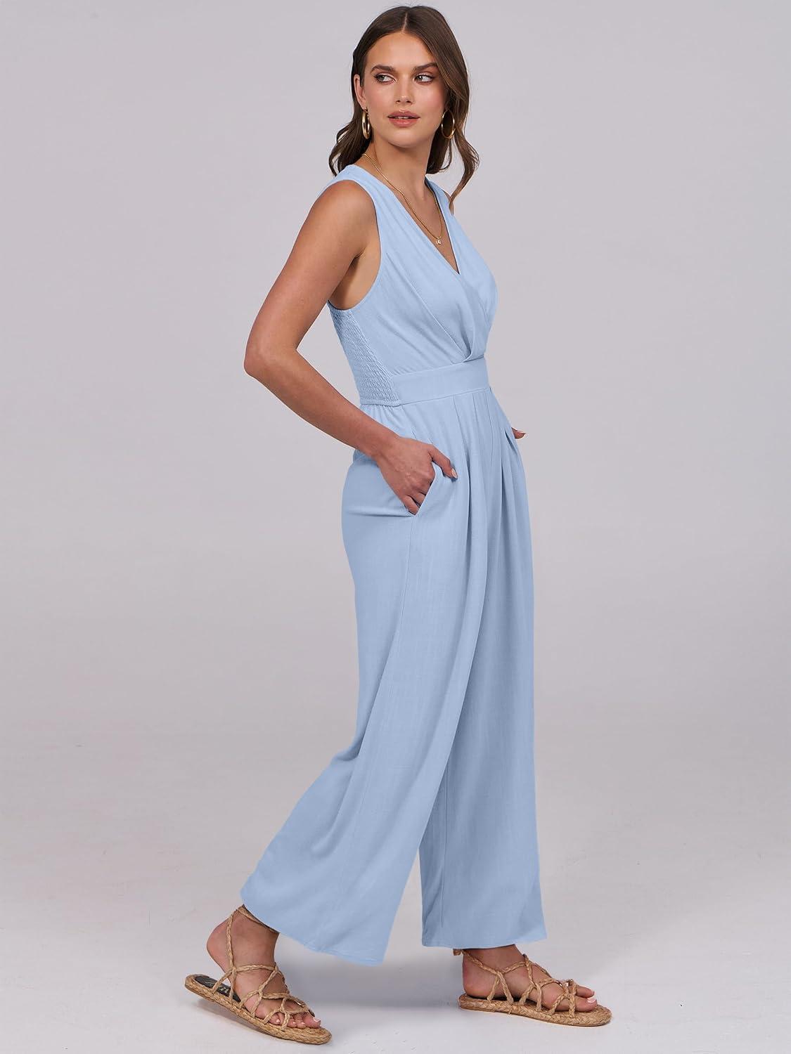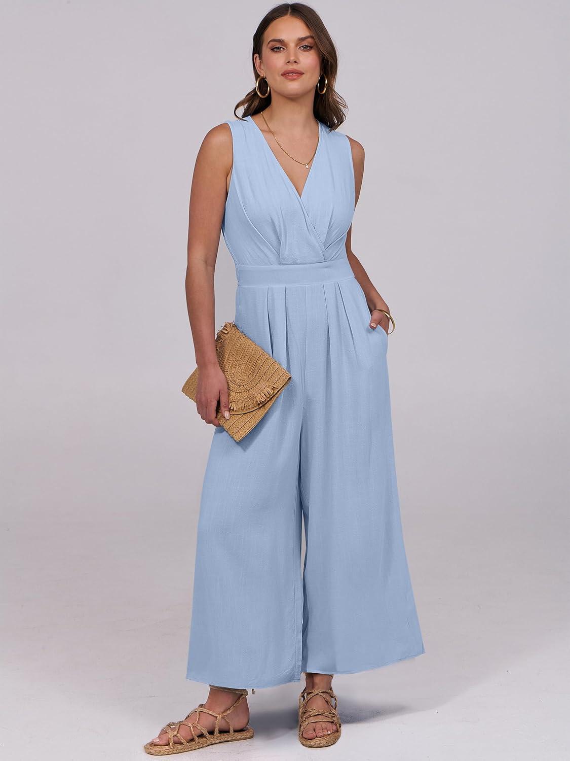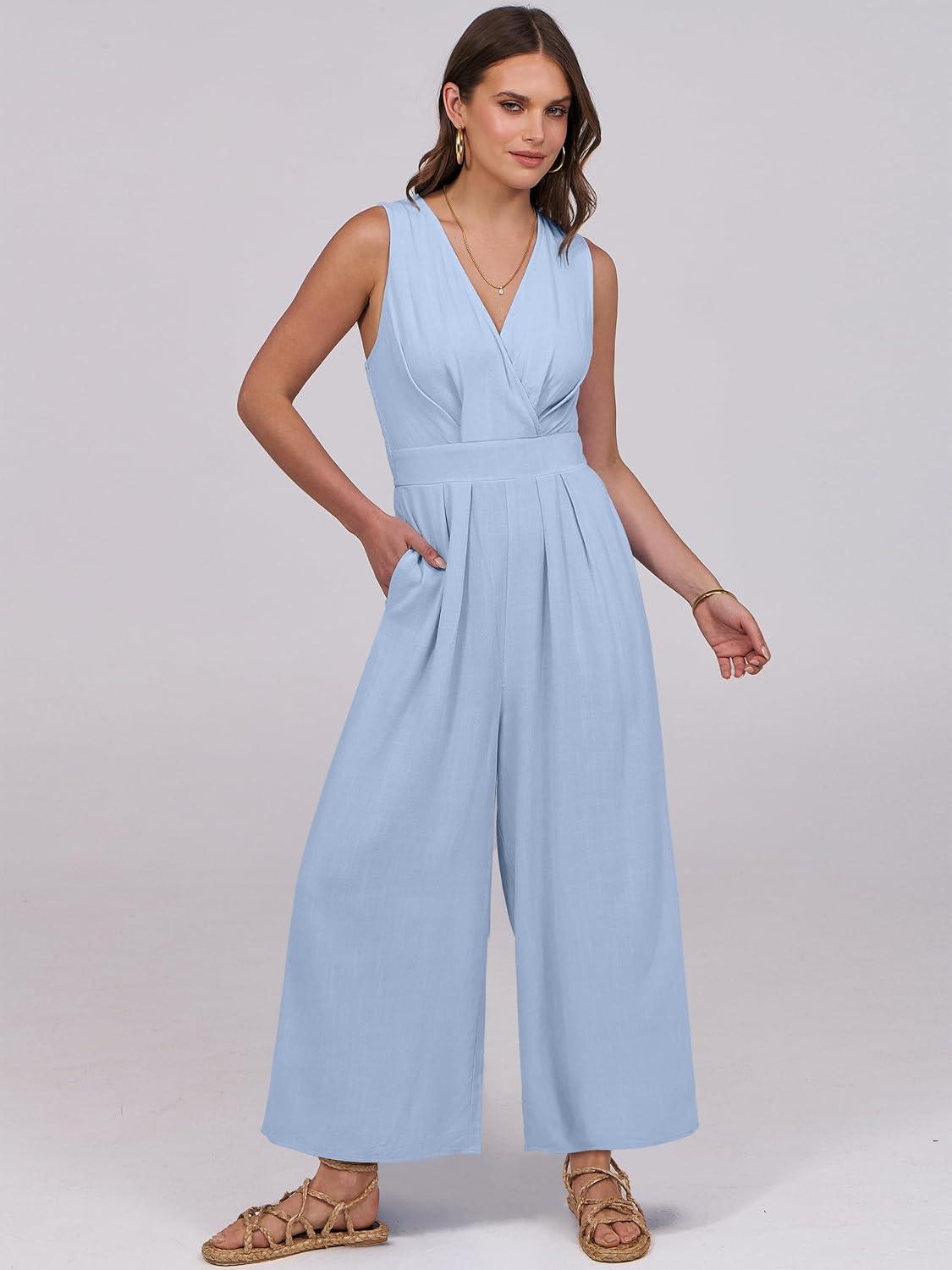 ANRABESS Women Jumpsuits Sleeveless V Neck Elegant Dressy Casual Backless One Piece Pants Romper 2025 Summer Outfits(Sky)