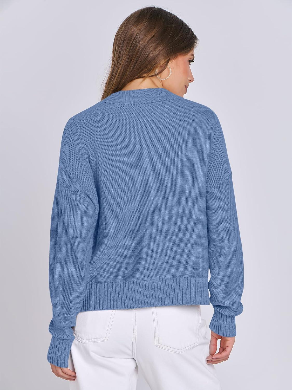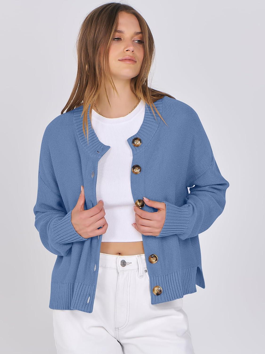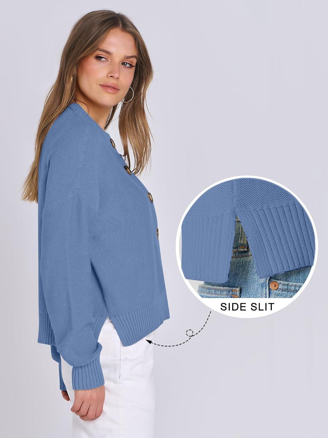 ANRABESS Women Knit Cardigans Sweater Open Front Button Down Long Sleeve Cropped Lady Jacket Outwear 2025 Fall Outfits(Denim Blue)