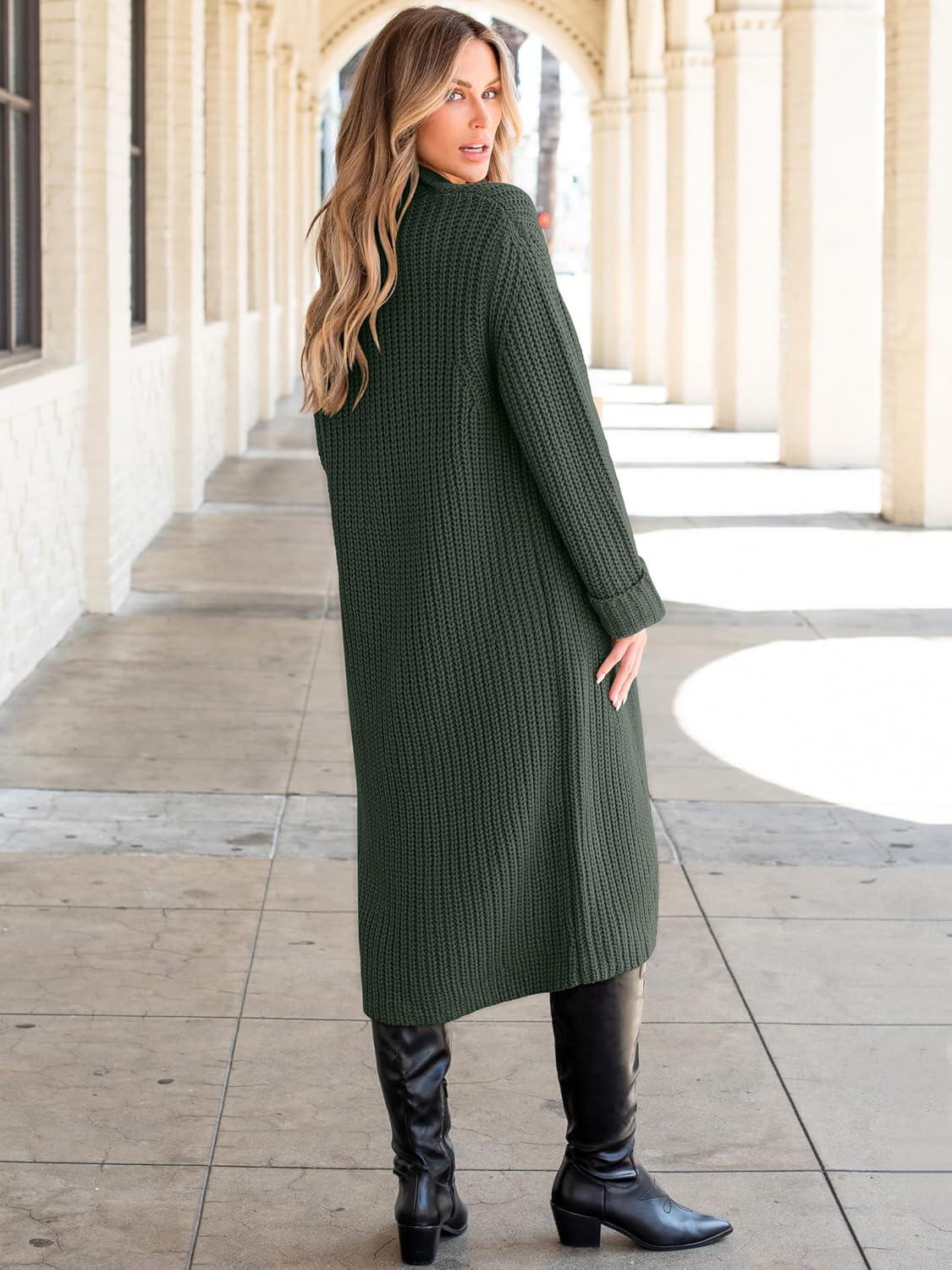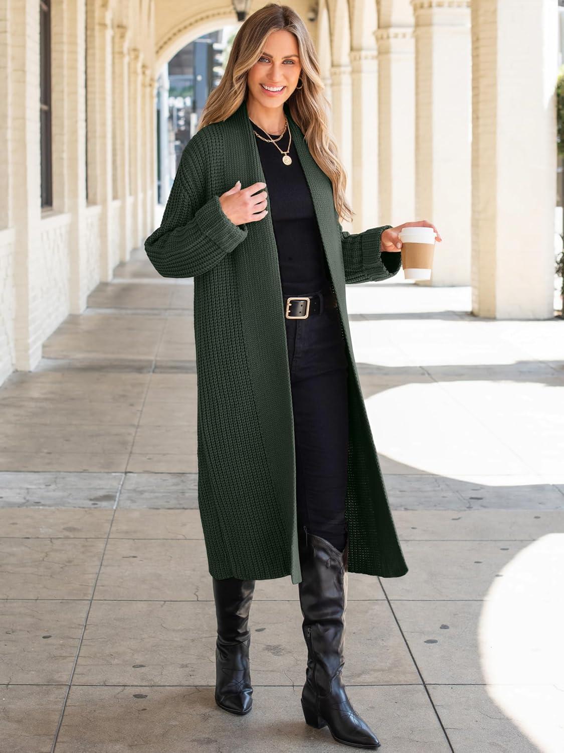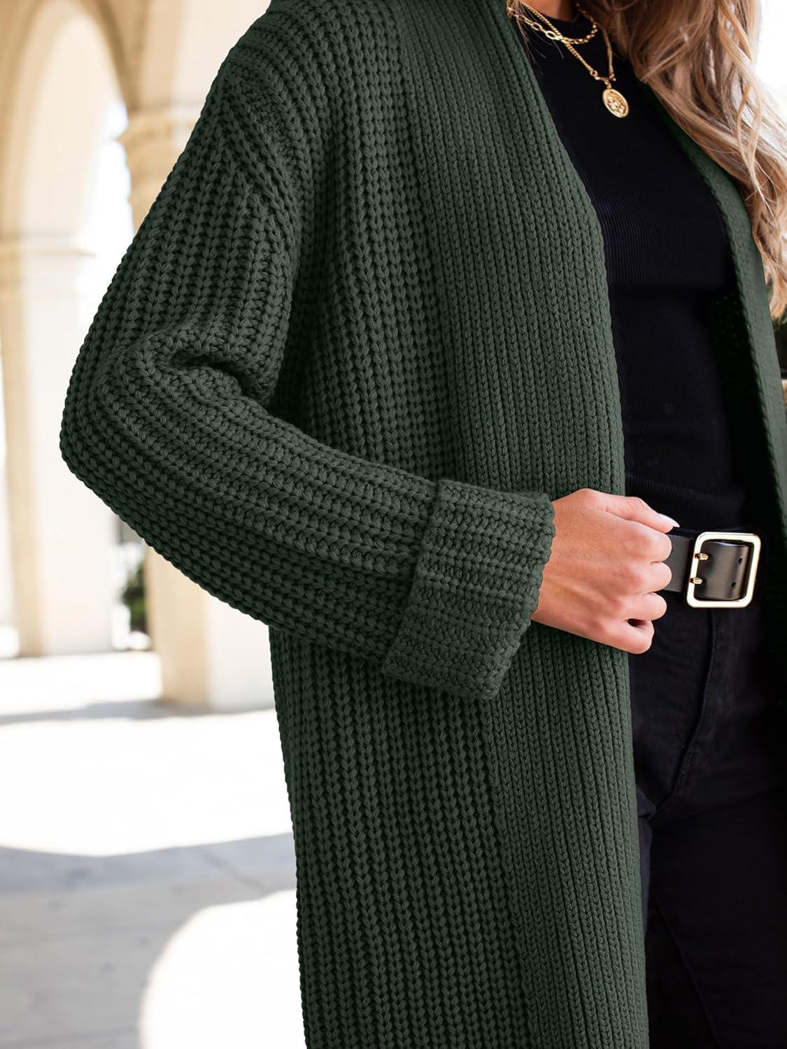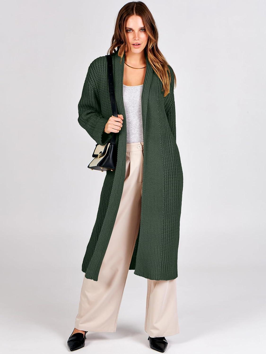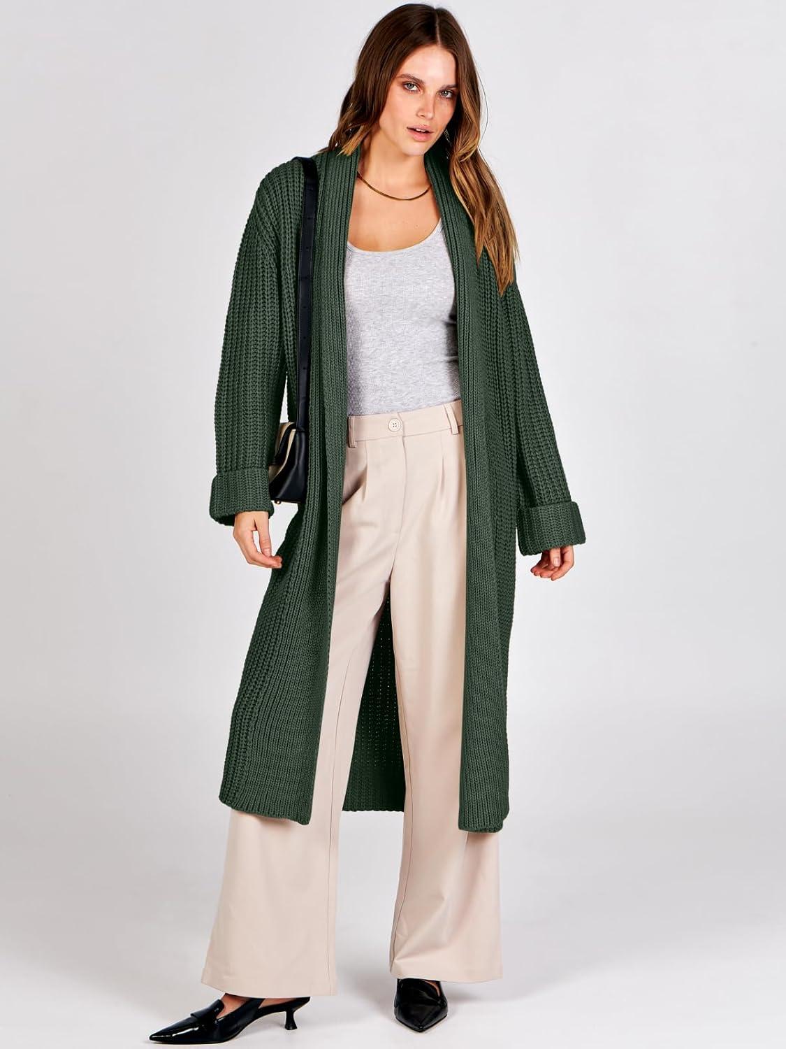 ANRABESS Women Knit Long Cardigan Long Sleeve Open Front Lapel Oversized Sweater Coat 2025 Fall Duster Outerwear Clothes(Army Green)
