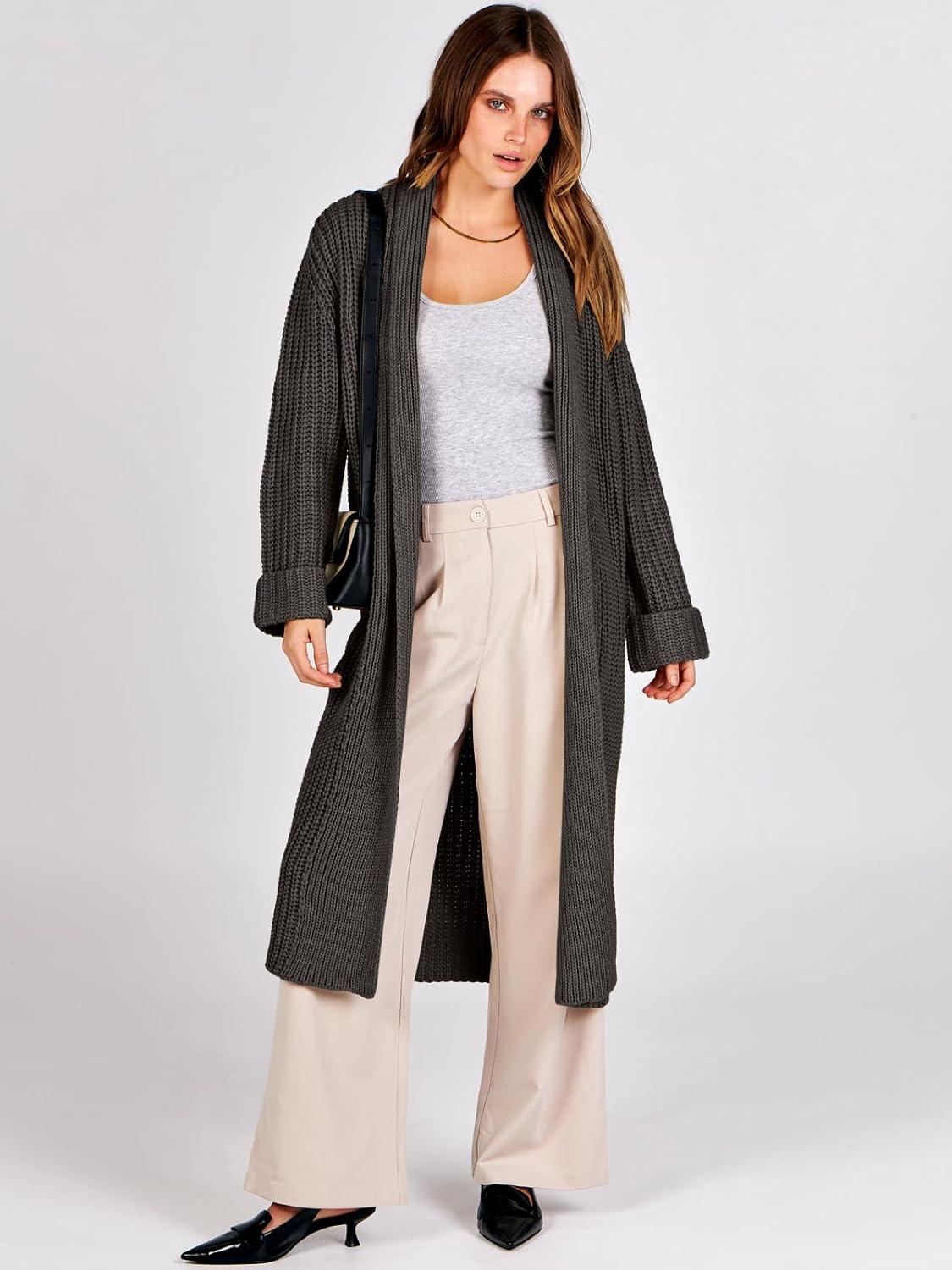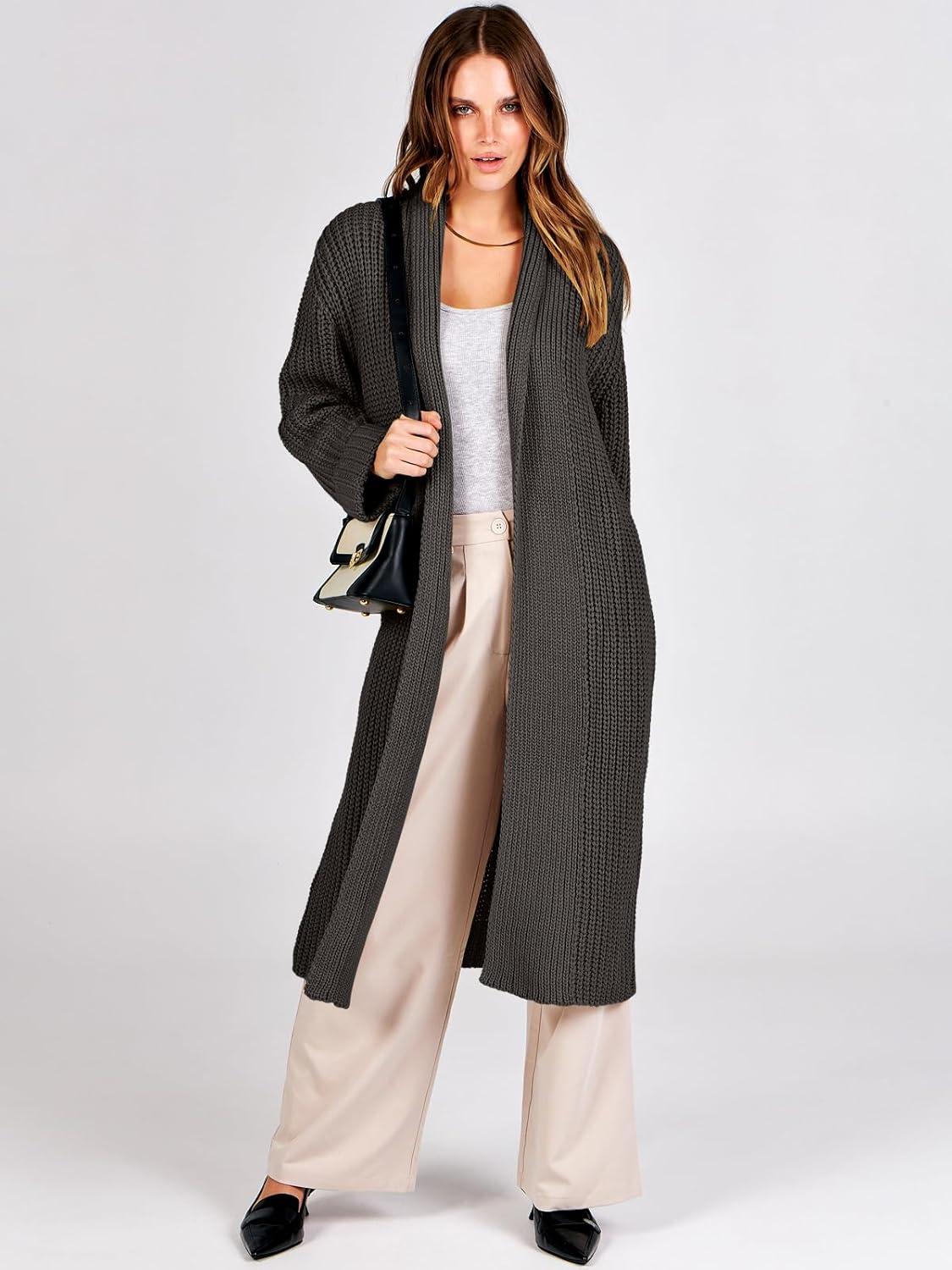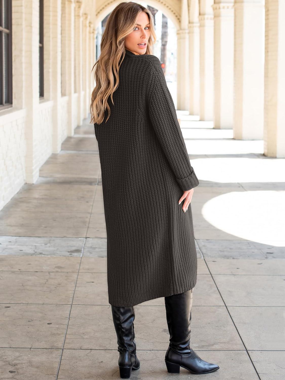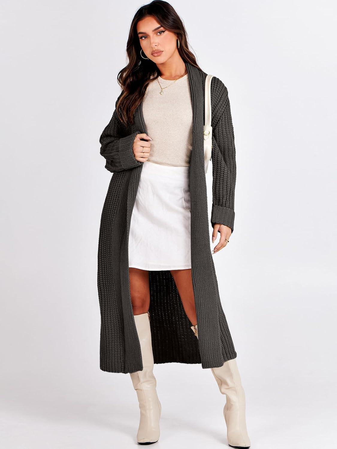ANRABESS Women Knit Long Cardigan Long Sleeve Open Front Lapel Oversized Sweater Coat 2025 Fall Duster Outerwear Clothes(Deep Coffee)