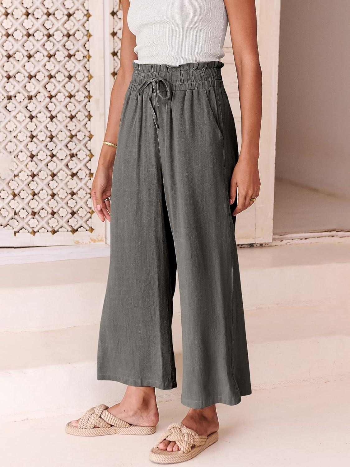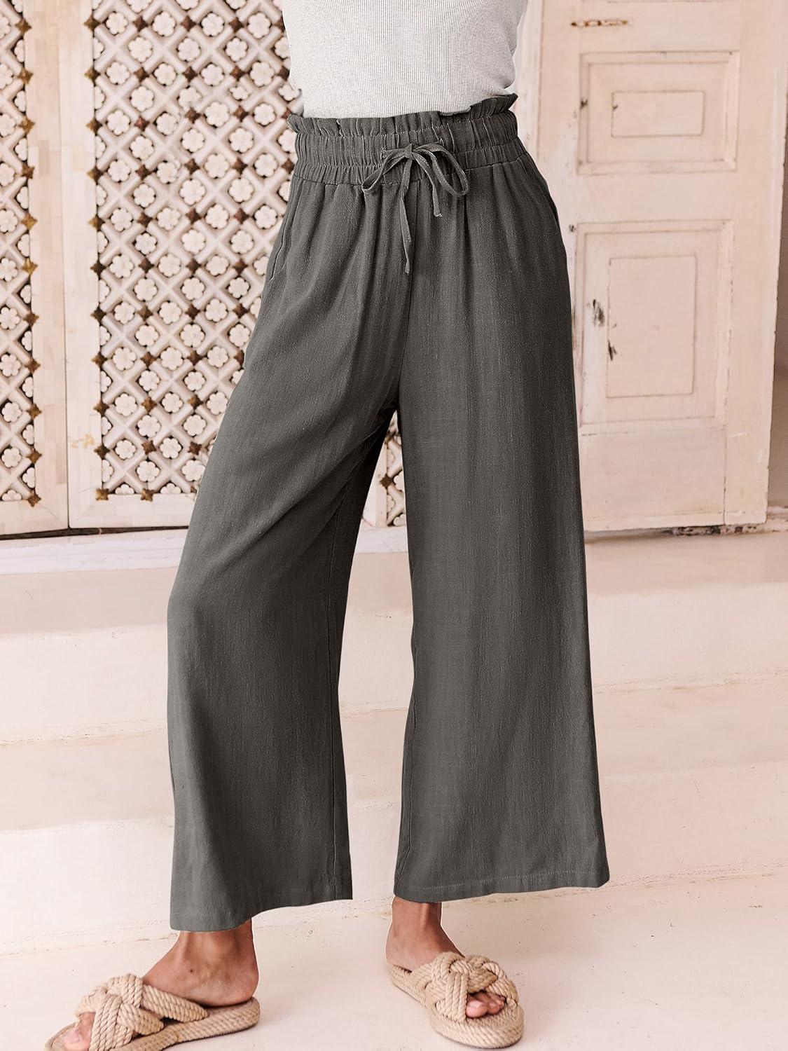 ANRABESS Women Linen Pants Casual Loose High Waist Boho Wide Leg Cropped Palazzo Beach Pants Summer Outfits 2025 Trendy(Dark Gray)